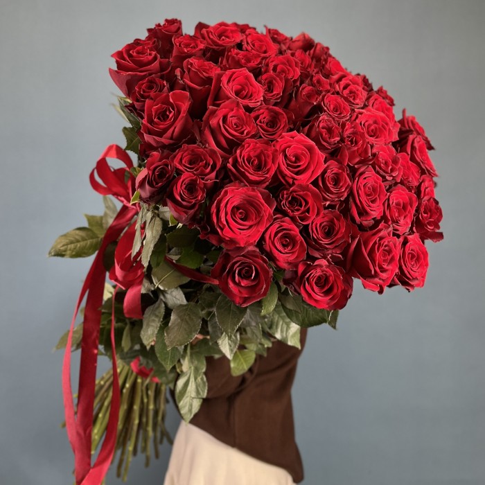Букет из 51 красной розы — это воплощение страсти, силы и красоты. Каждая из этих роз сияет ярким, притягательным, насыщенным красным цветом, который символизирует воистину сильные и глубокие чувства. Букет из 51 розы станет выражением любви и нежности, которое невозможно проигнорировать.