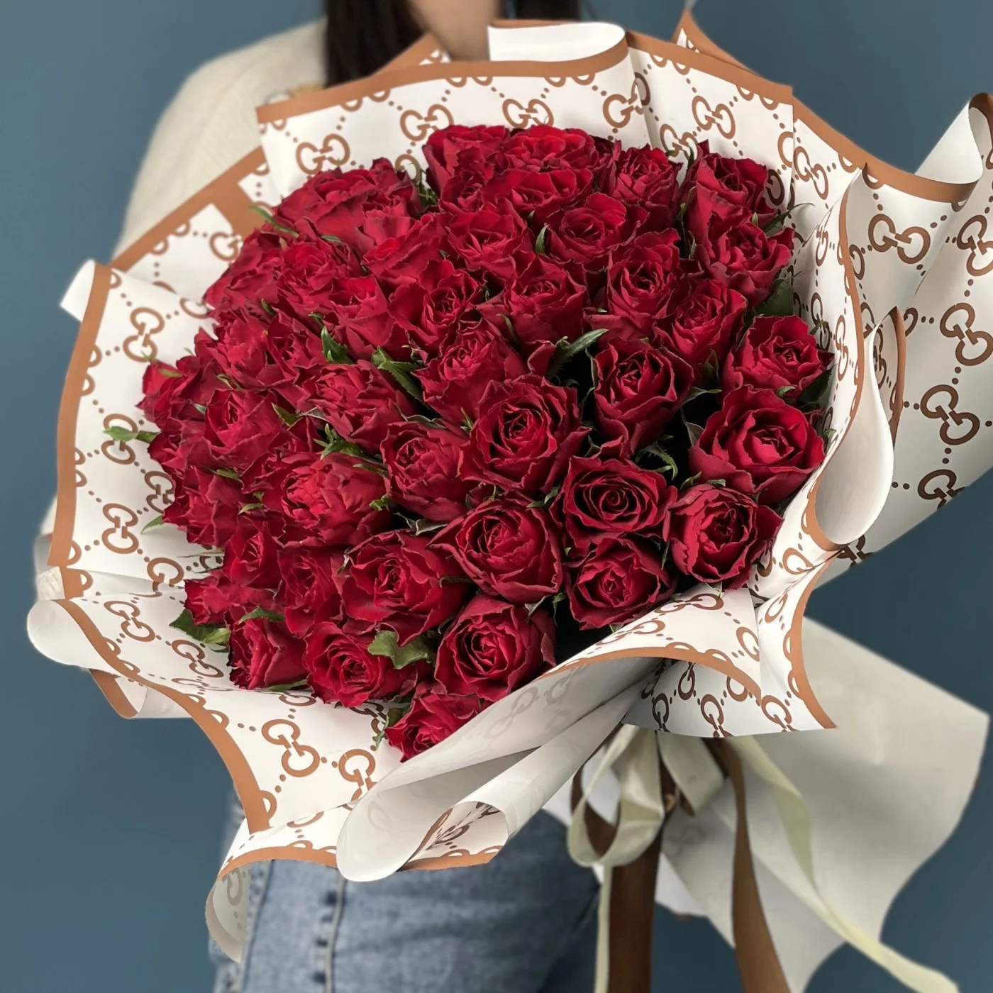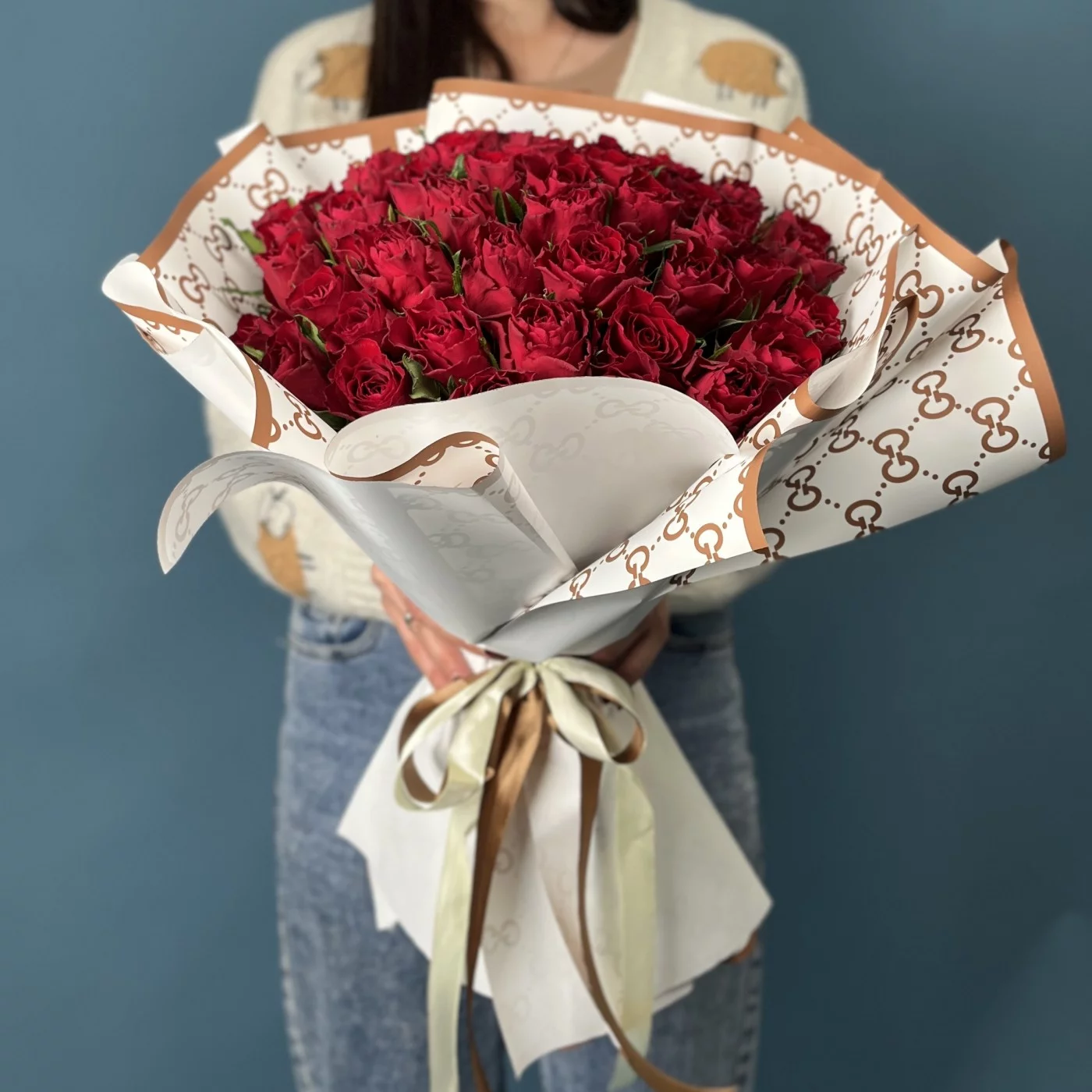 Букет из 51 красной розы на Золотую свадьбу — это очень выразительный и трогательный подарок, сочетающий в себе страсть и глубокое уважение.