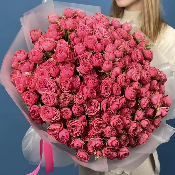 Элегантный и роскошный букет из 51 кустовой пионовидной малиновой розы Гранд Трендсеттер высотой 50 см. Каждая роза отличается богатой пышностью, насыщенным цветом и грациозной формой, создавая изумительный визуальный эффект. Такой букет станет достойным выражением искренних чувств, подчеркнет важность повода и произведет незабываемое впечатление. Идеальный подарок для торжественных мероприятий, признаний и памятных случаев.