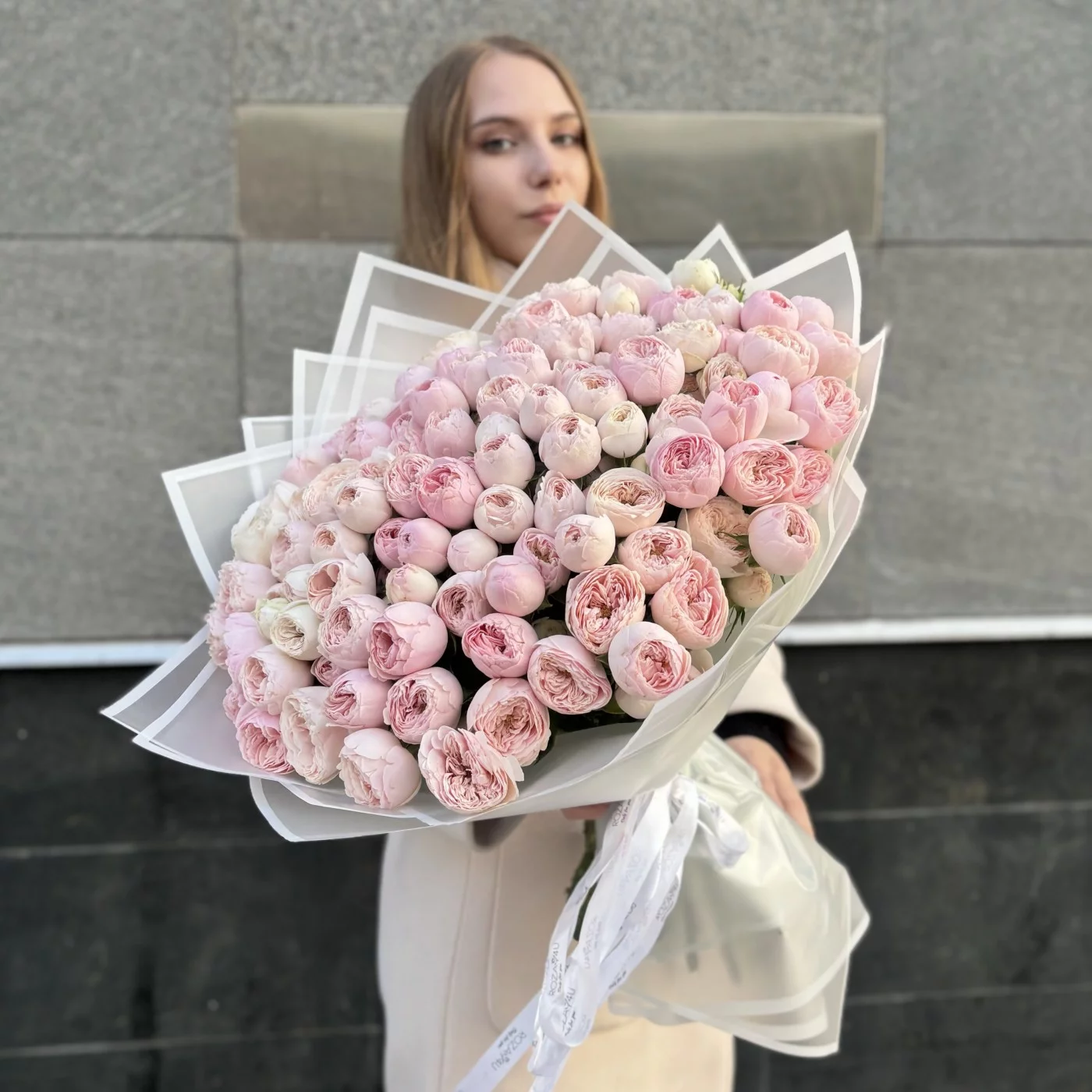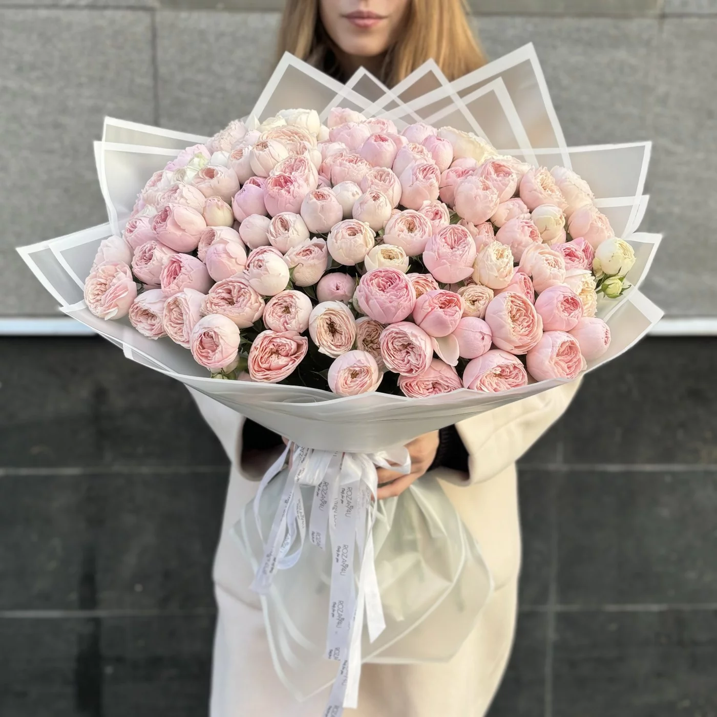 Букет из 51 кустовой пионовидной розы Мансфилд парк — это прекрасный выбор для любого торжества, свадьбы или подарка. Его яркость и необычная форма создадут незабываемое впечатление и принесут радость как получателю, так и тем, кто будет любоваться этим великолепием!
