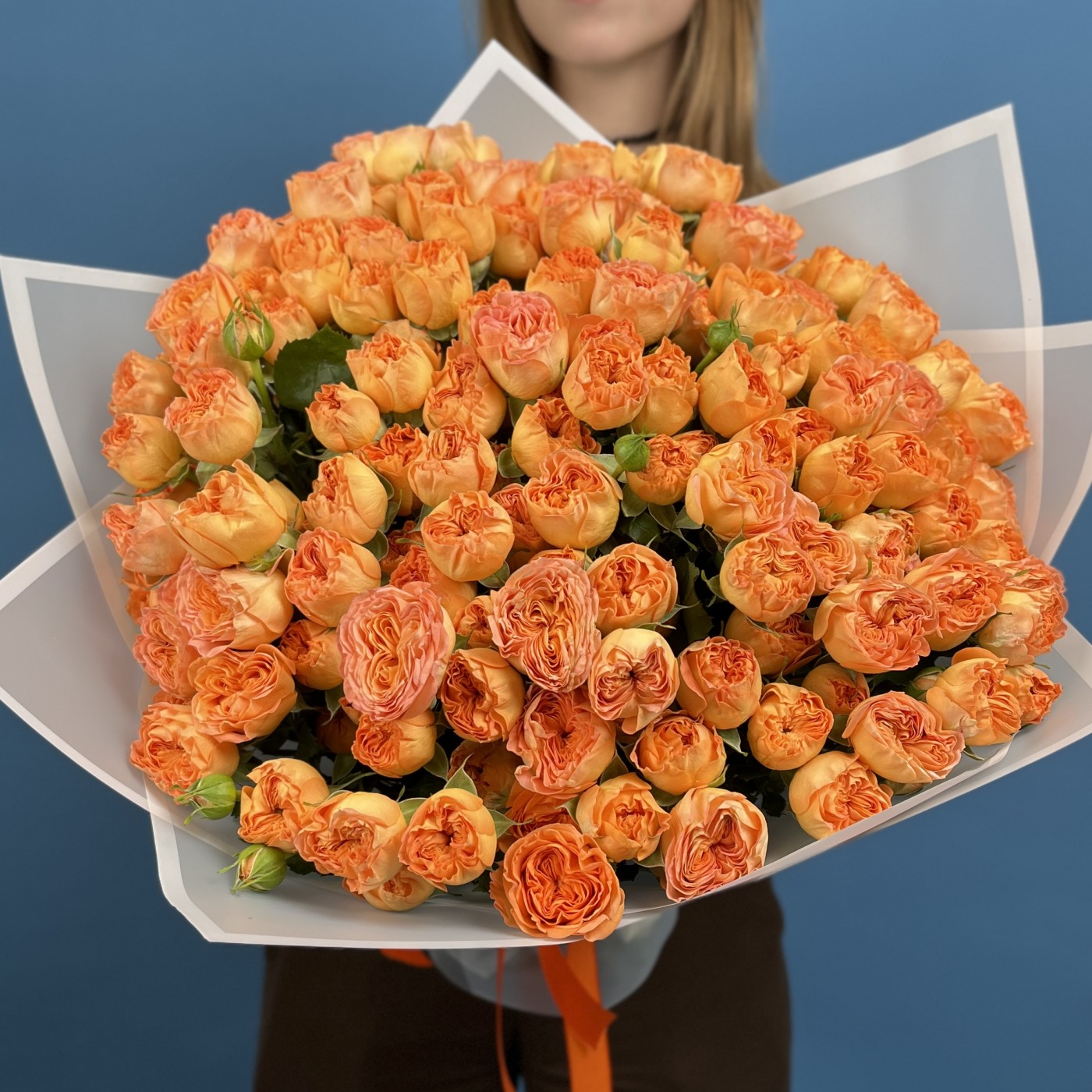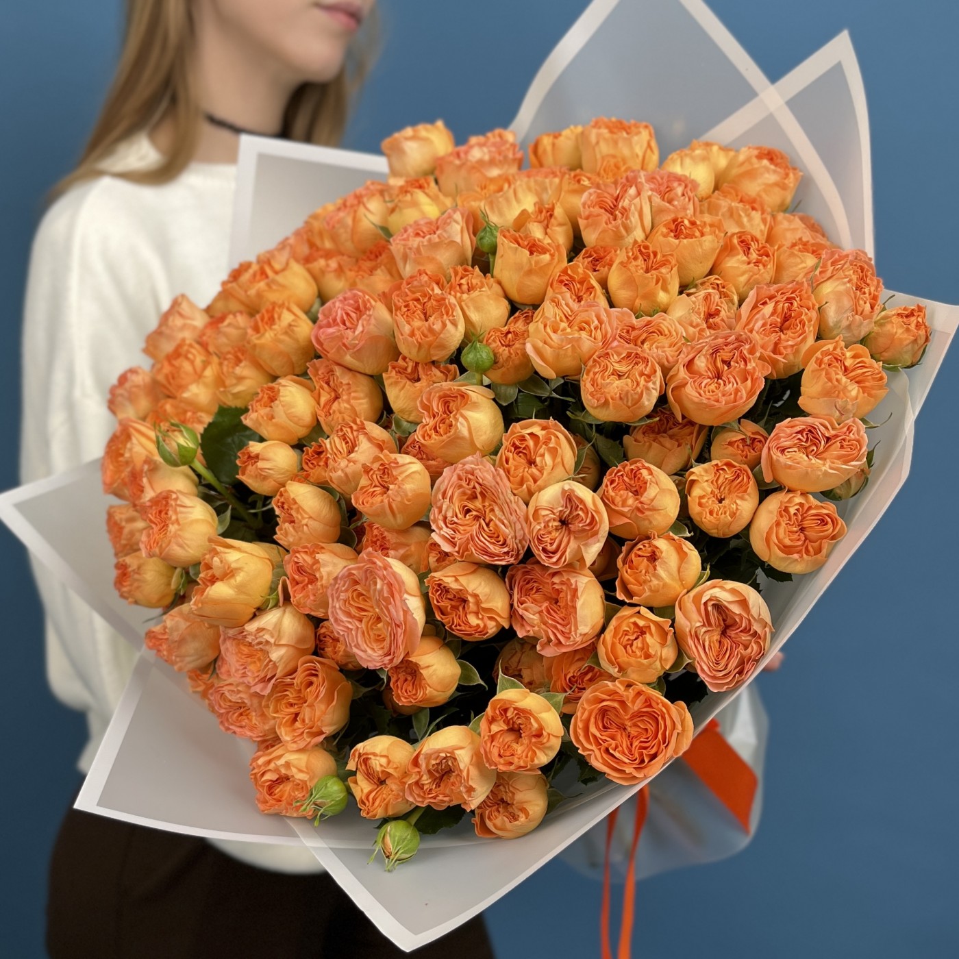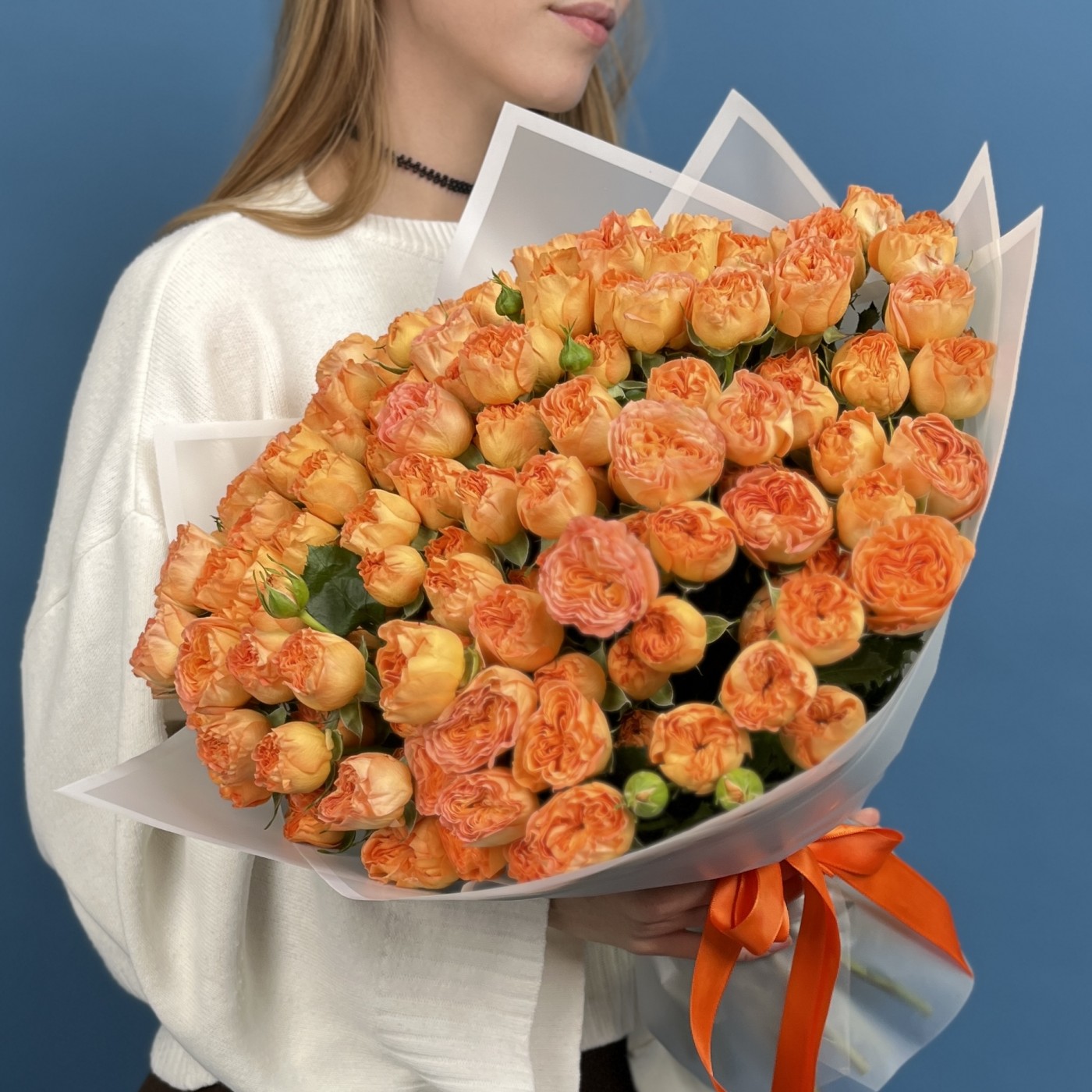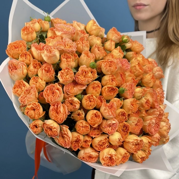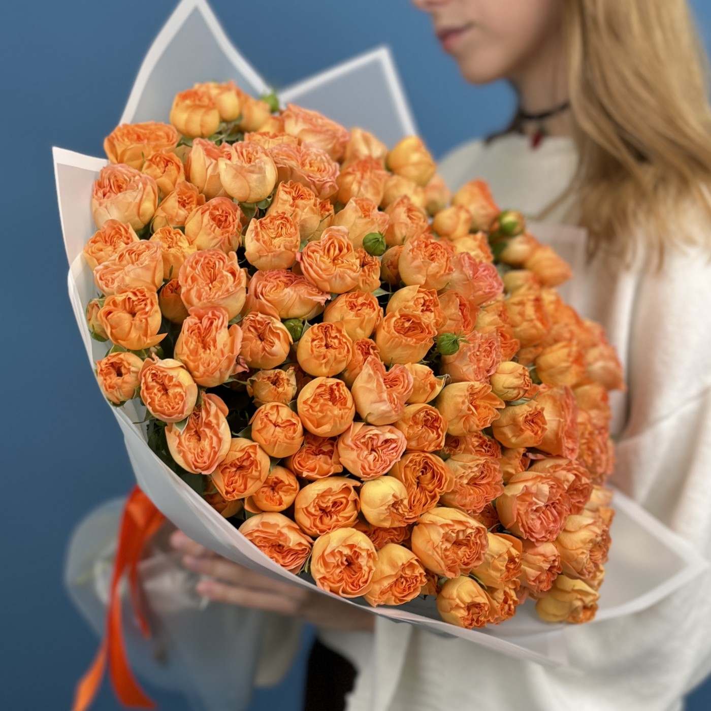 51 кустовая пионовидная Роза Оранж Трендсеттер 40 см - пышный и насыщенный букет станет символом энергии, радости и тепла.