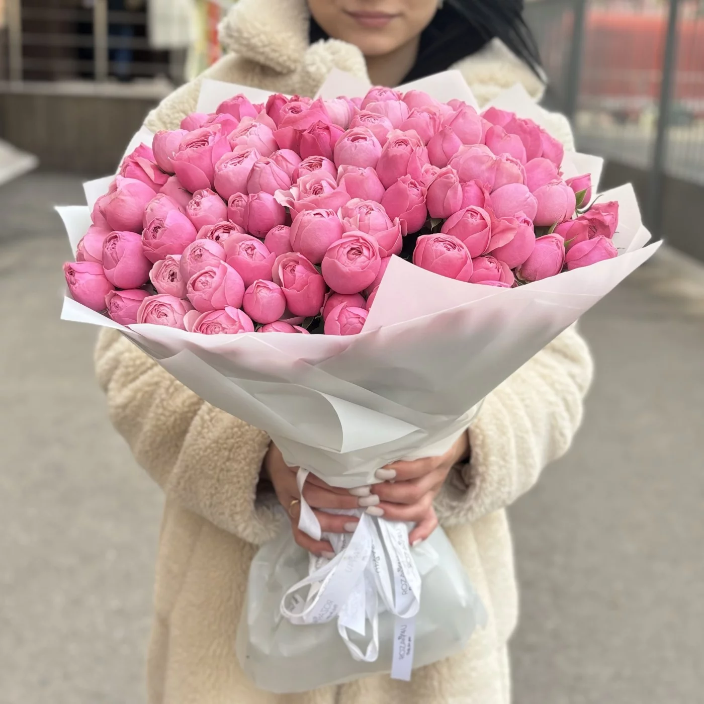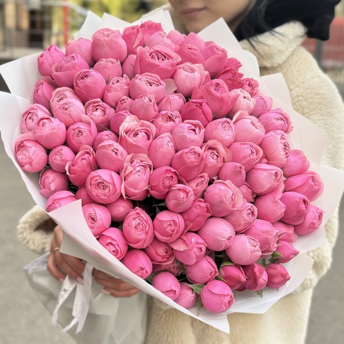 Роскошный букет из 51 пионовидной кустовой розы Сильва Пинк порадует свою получательницу и подарит незабываемые впечатления.