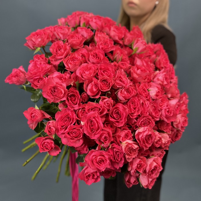 Ее насыщенный малиновый оттенок символизирует страсть, энергию и тепло, а пышная кустовая форма создает эффектный объем и выразительность.