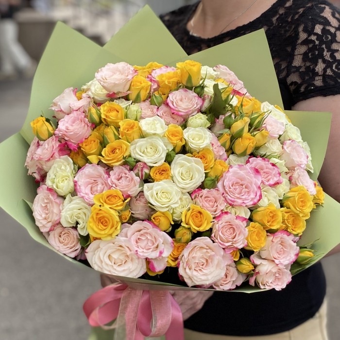 Элегантный, изысканный букет из нежнейших кустовых роз - для самых прекрасных девушек.