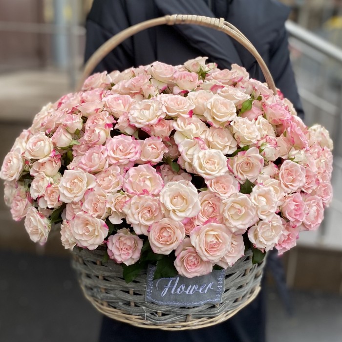 51 пышная кустовая роза сорта Рефлекс в корзине - прекрасный подарок на любое событие.