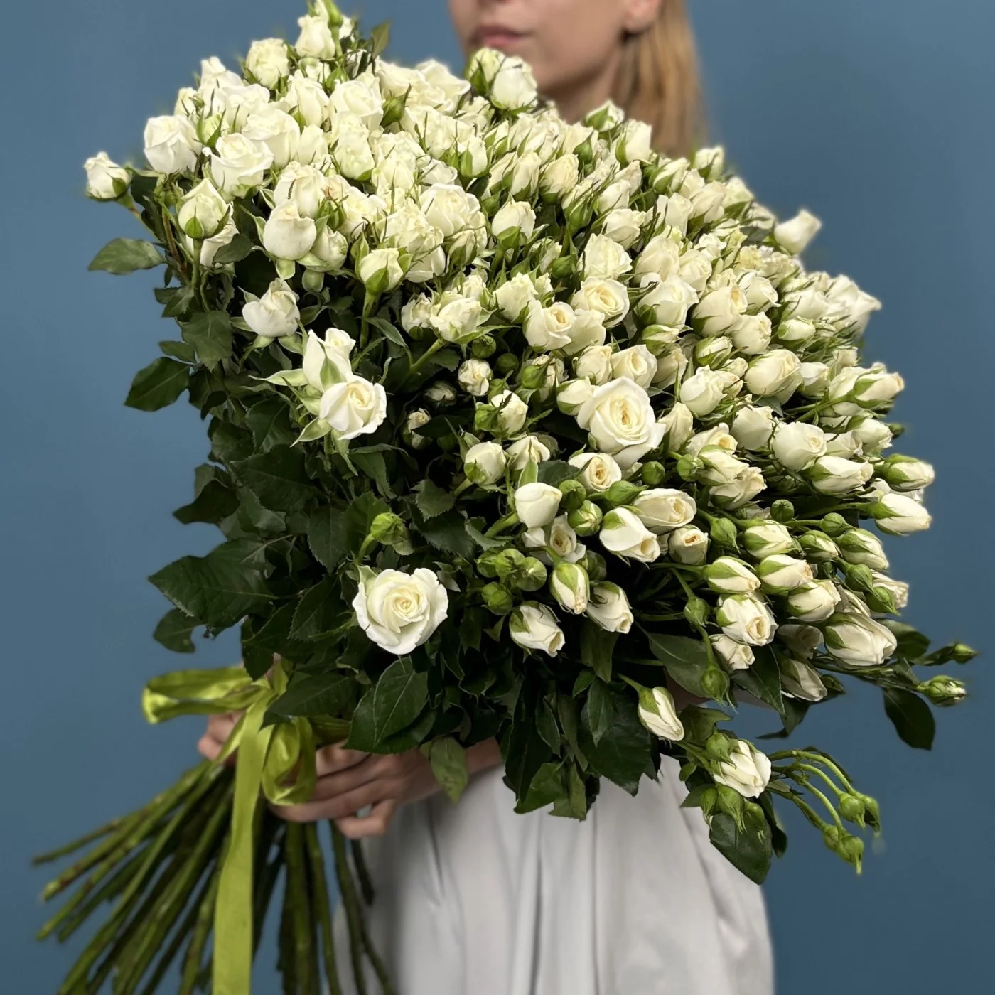 51 кустовая роза Сноу Бабл 70 см — это истинное воплощение роскоши и изысканности.