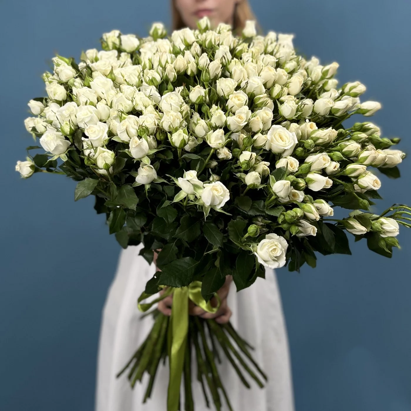 Такой грандиозный букет станет идеальным подарком для самых значимых событий и особенных людей, выражая глубину чувств, чистоту и искренность эмоций.