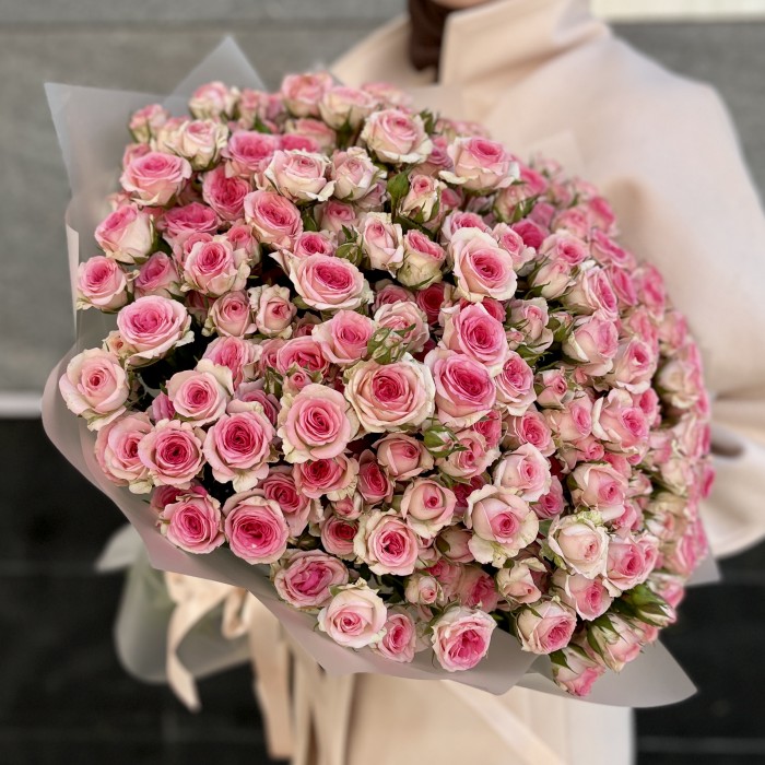 Букет из 51 кустовой розы Тралала высотой 40 см — это символ любви и восхищения, который обязательно произведет впечатление на получателя!
