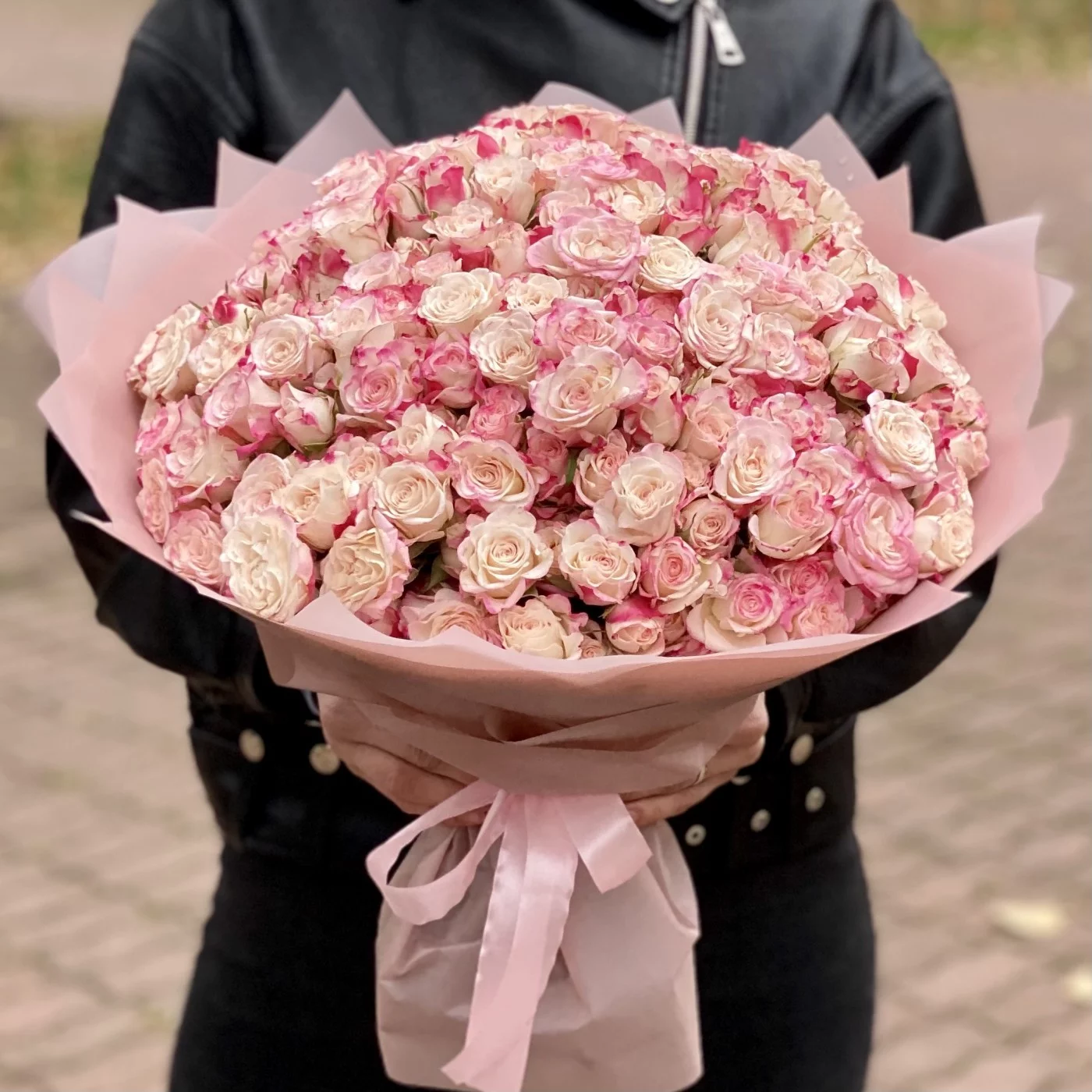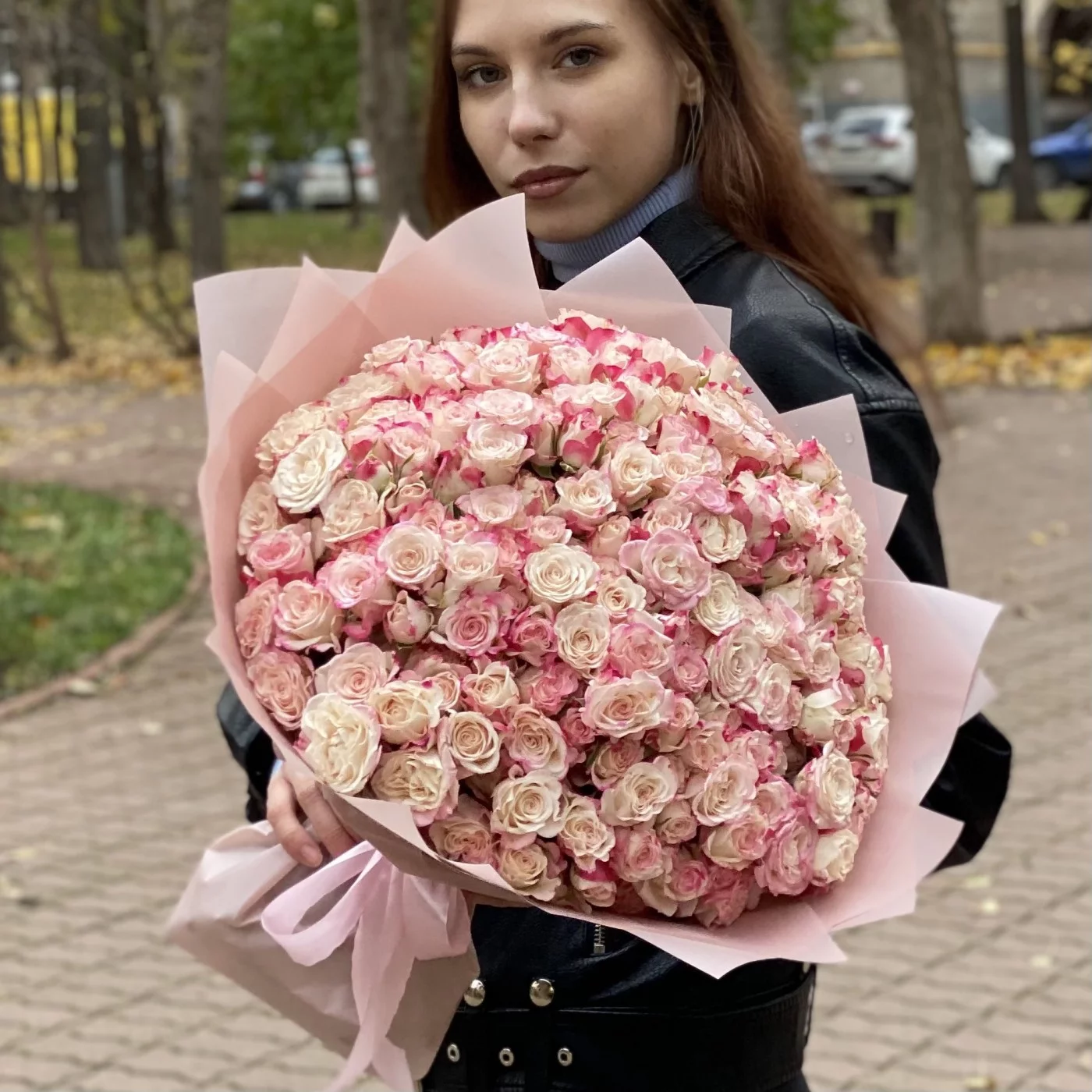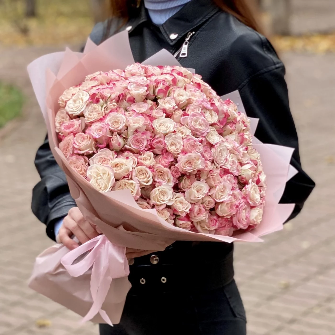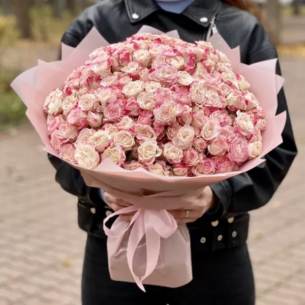 Букет розовых роз – универсальный, может быть подарен девушке, жене, маме, дочке, коллеге по работе. Плотные небольшие бутоны свежих кустовых роз будут постепенно раскрываться и наполнять комнату прекрасным ароматом.