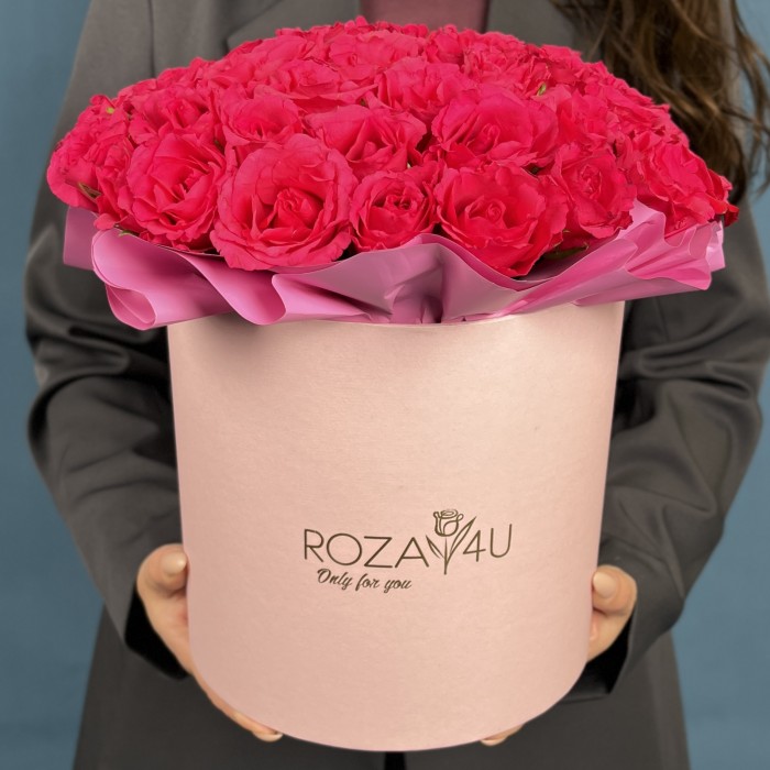 Композиция из 51 малиновой розы сорта Такаци длиной 40 см, оформленная в стильную коробку, — это эффектный и выразительный подарок, который сразу привлекает внимание. Глубокий малиновый оттенок роз символизирует страсть, восхищение и яркие эмоции, а плотные бутоны сорта Такаци придают композиции благородство и насыщенность.