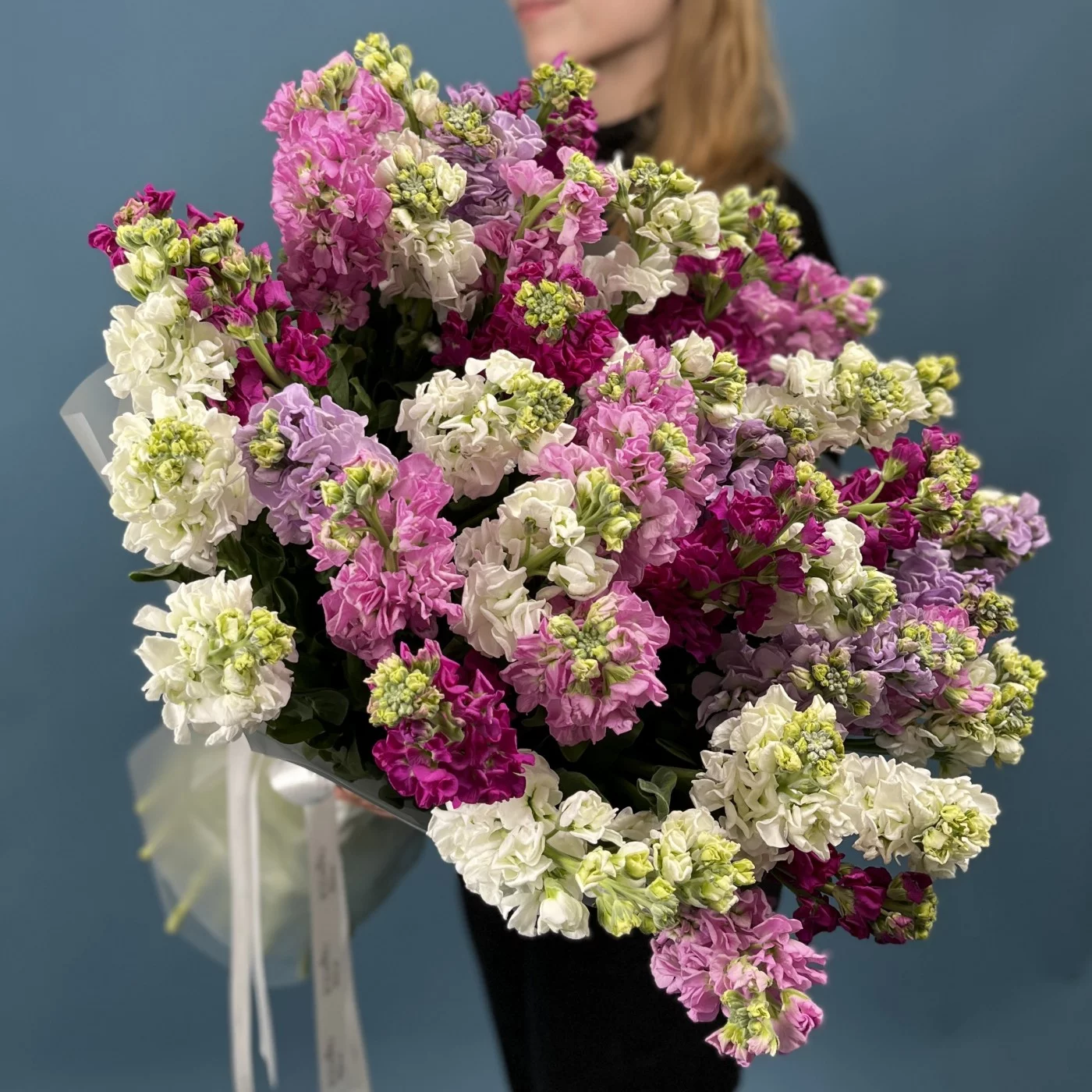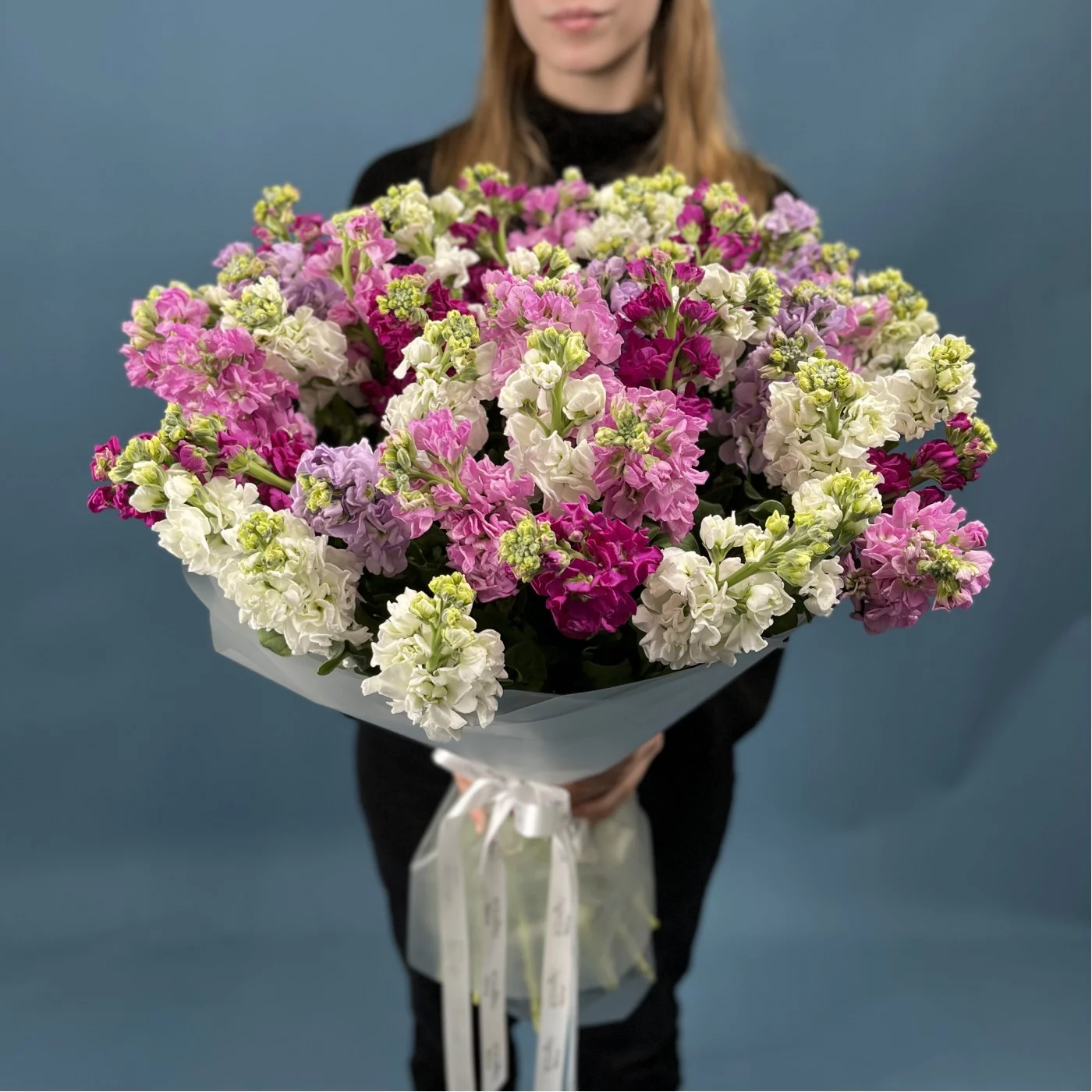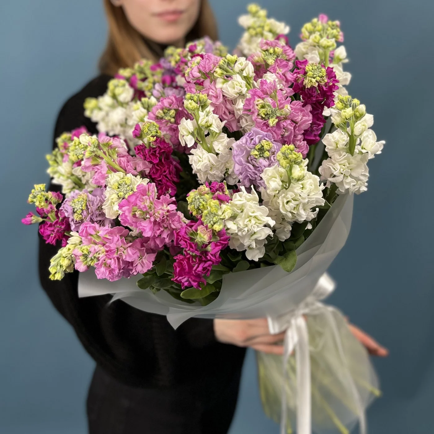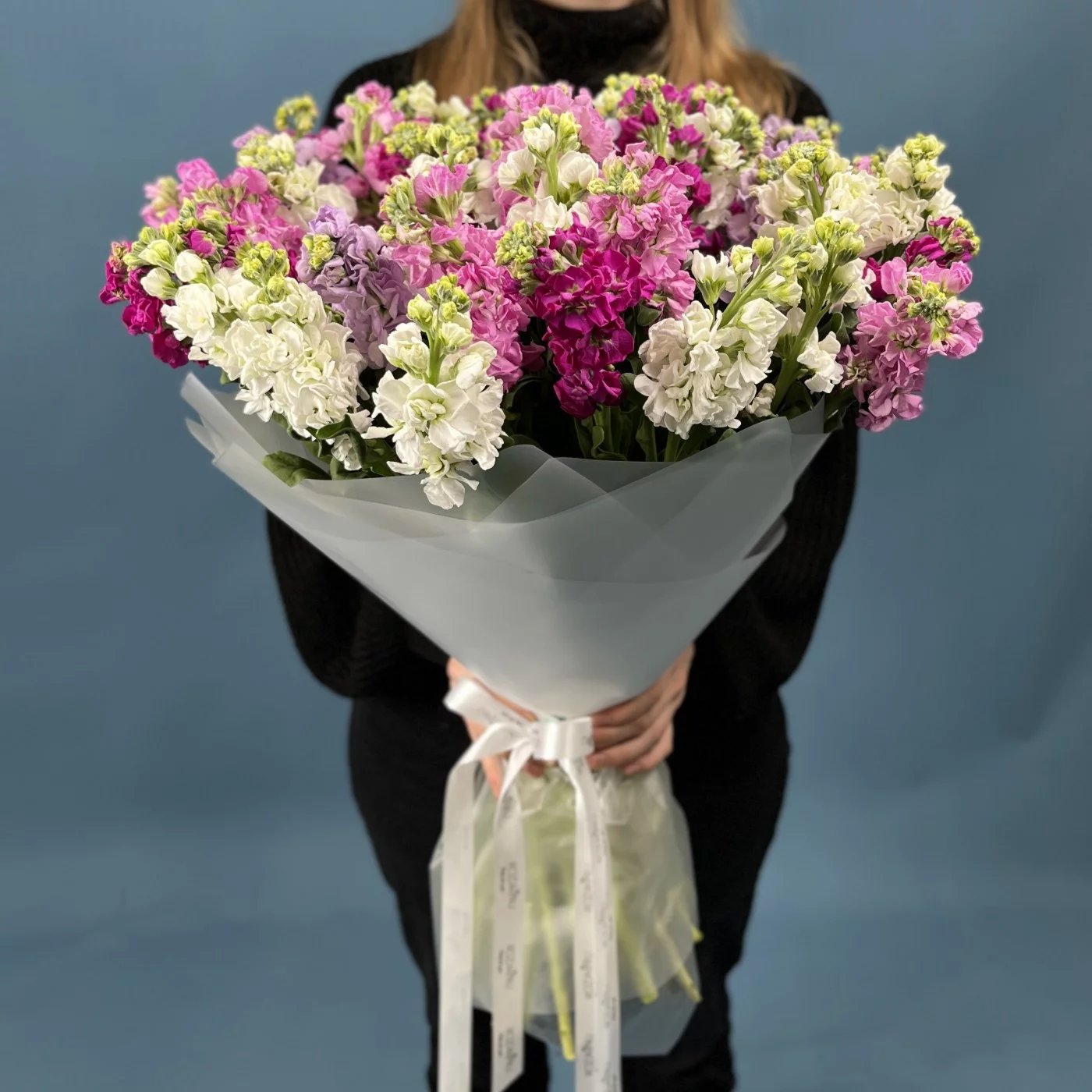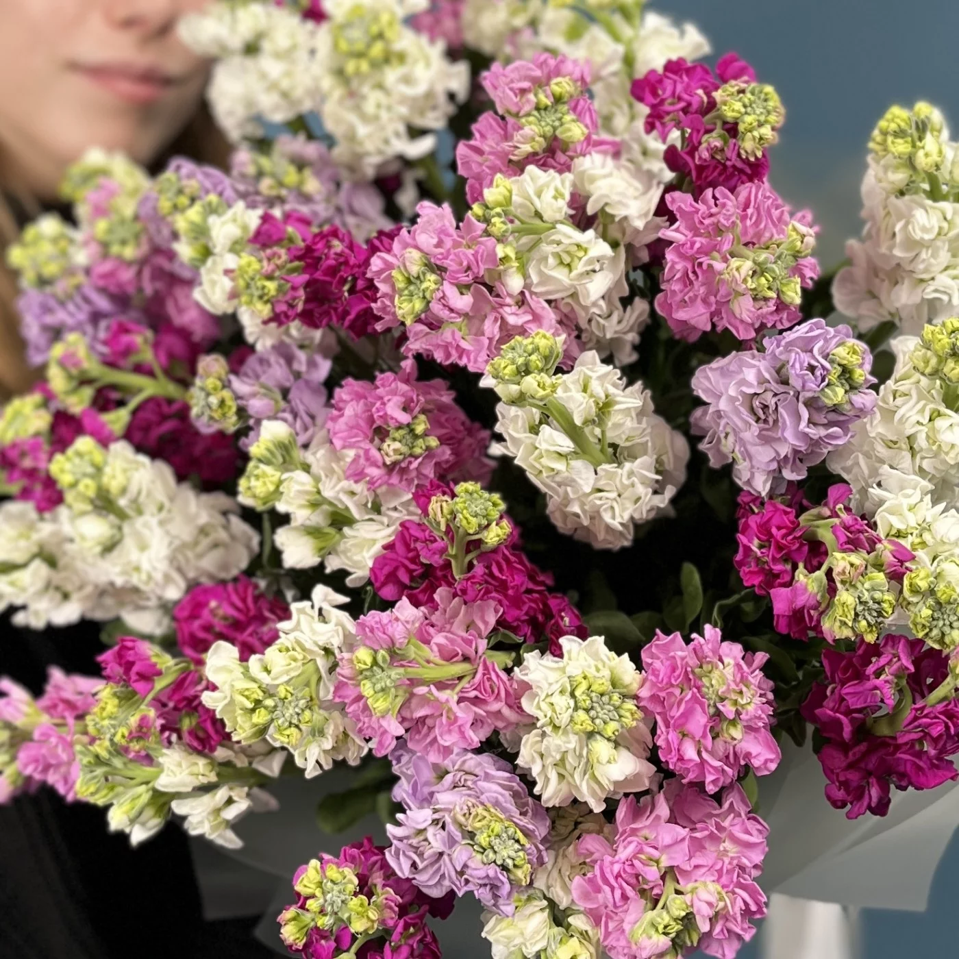 Букет из 51 Маттиолы MIX — это изысканная и ароматная композиция, состоящая из 51 стебля маттиолы, представленной в миксе различных оттенков и сортов. Маттиола известна своим нежным, сладковатым ароматом, который придаёт букету особую утонченность и романтичность.