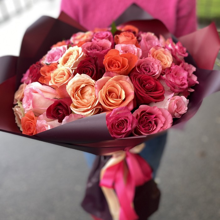 Возможна незначительная замена сортов роз с сохранением цветовой гаммы букета.