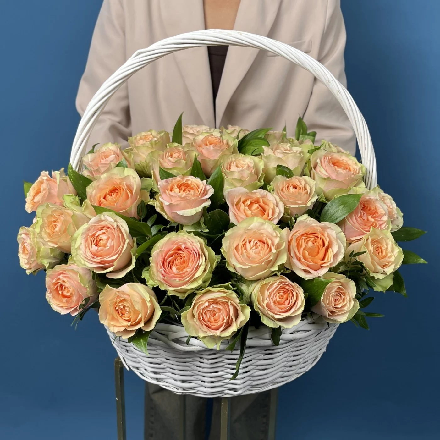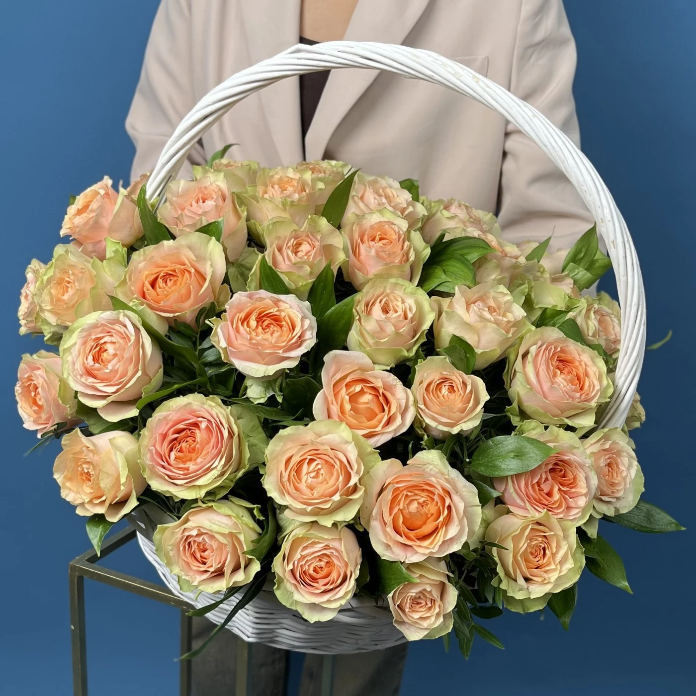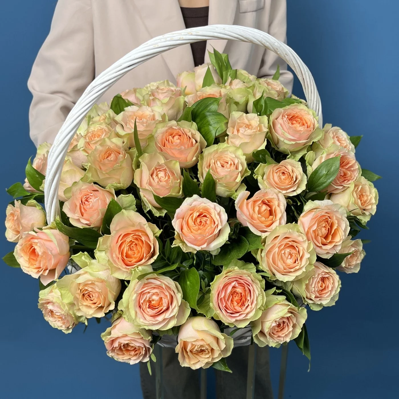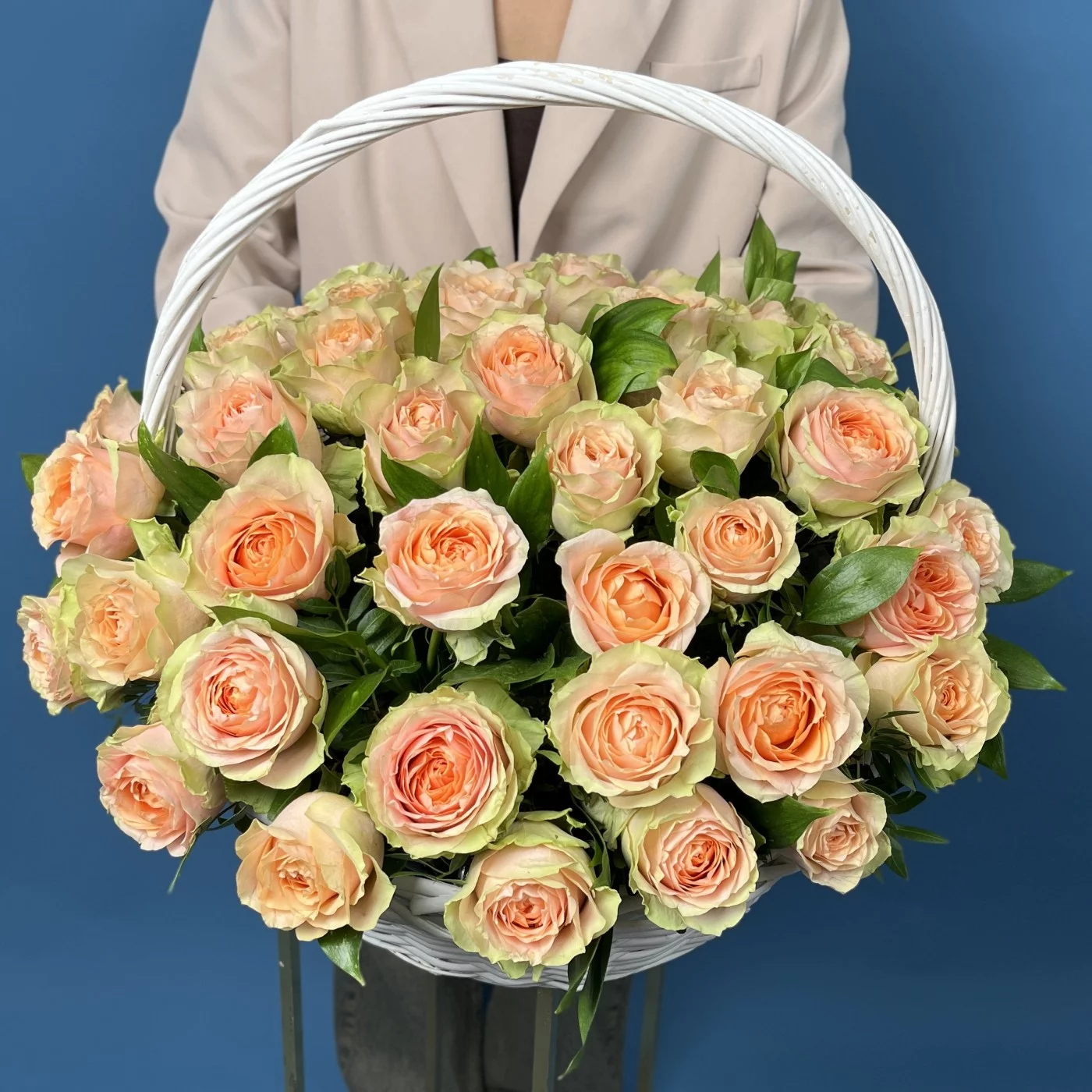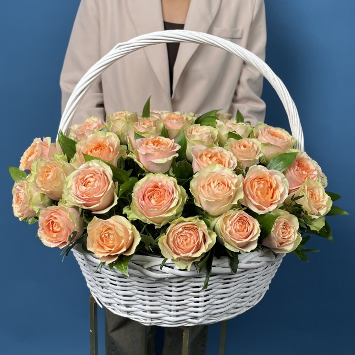 51 пионовидная кремовая роза Гравити в корзине