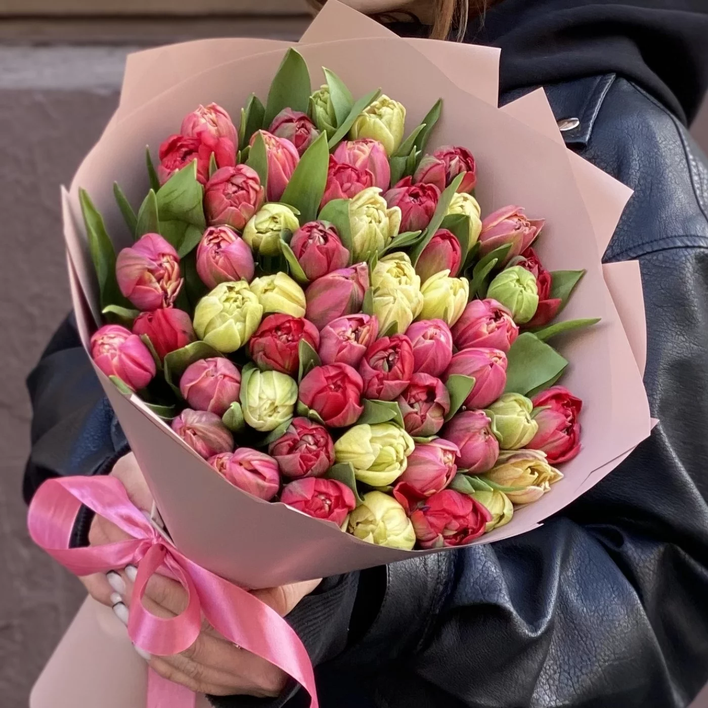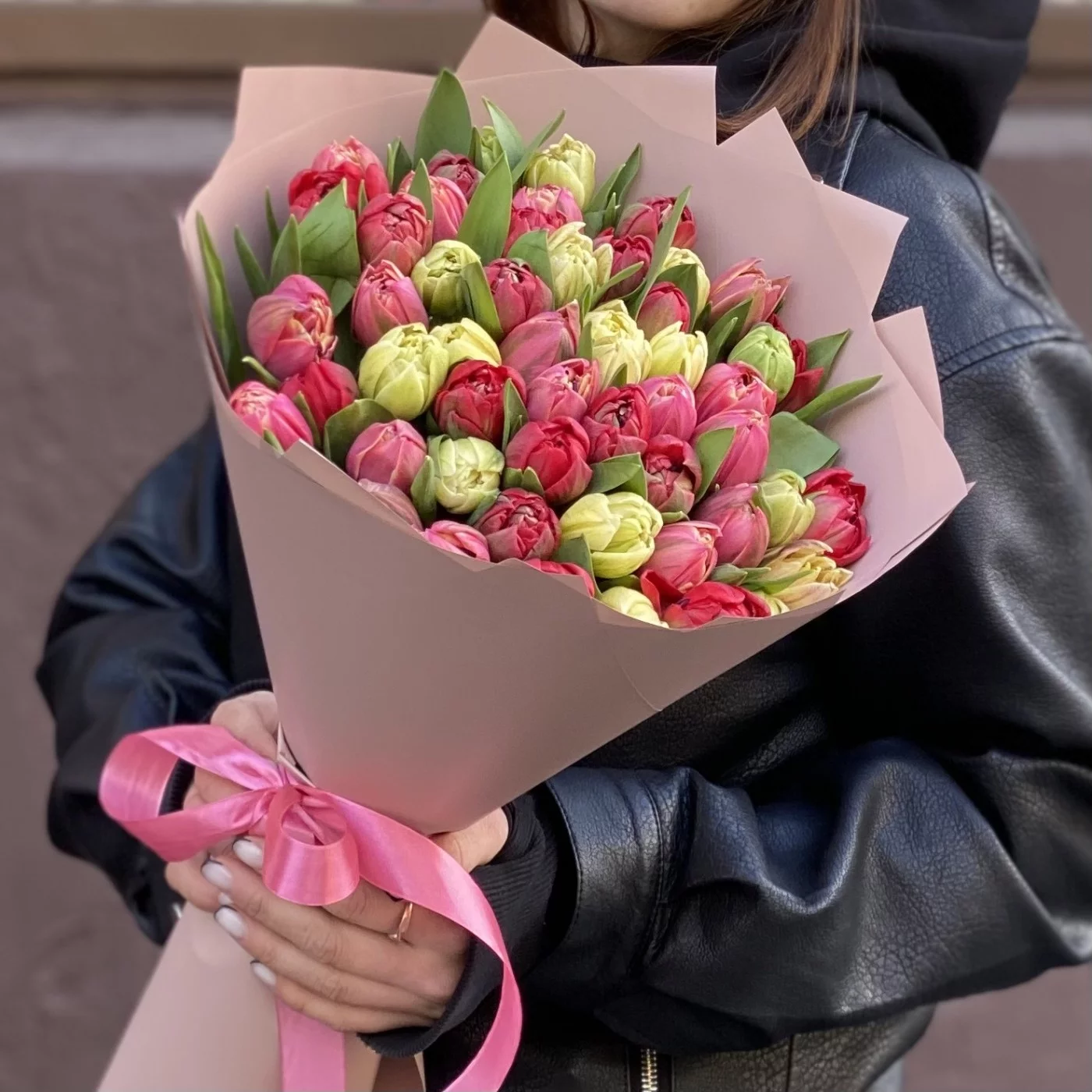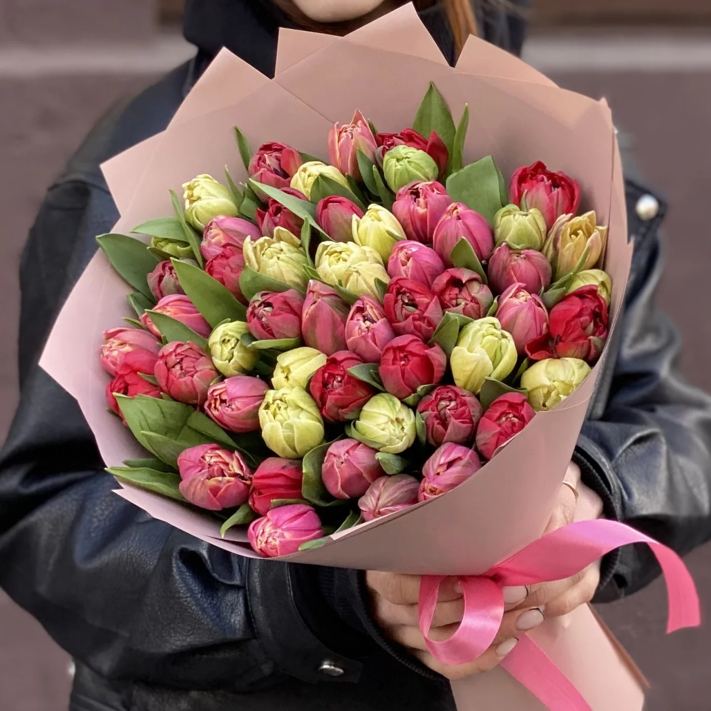 На нашем сайте можно заказать доставку свежих пионовидных тюльпанов в букете Яркий микс по Москве и области. Работаем круглосуточно! Перед отправкой пришлем фото композиции. Привезем вовремя и точно по указанному адресу.