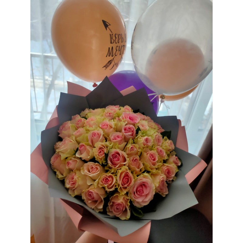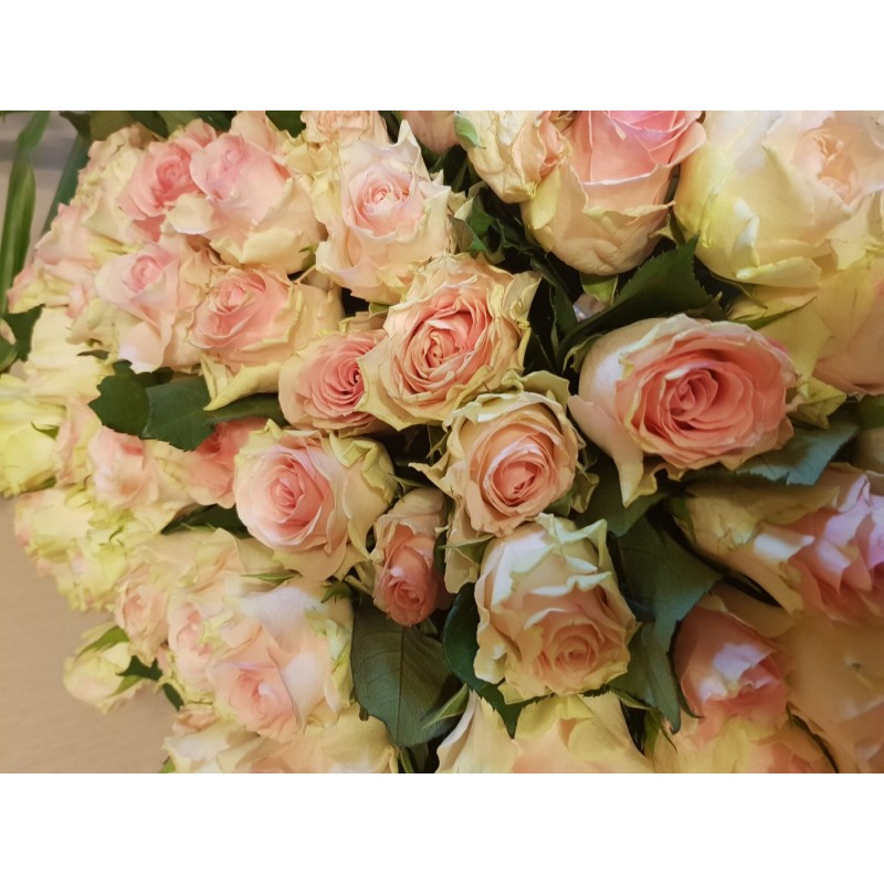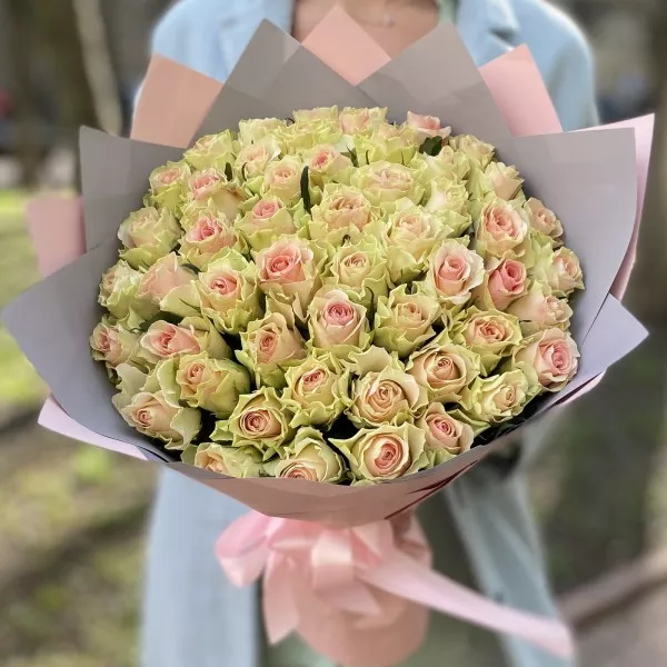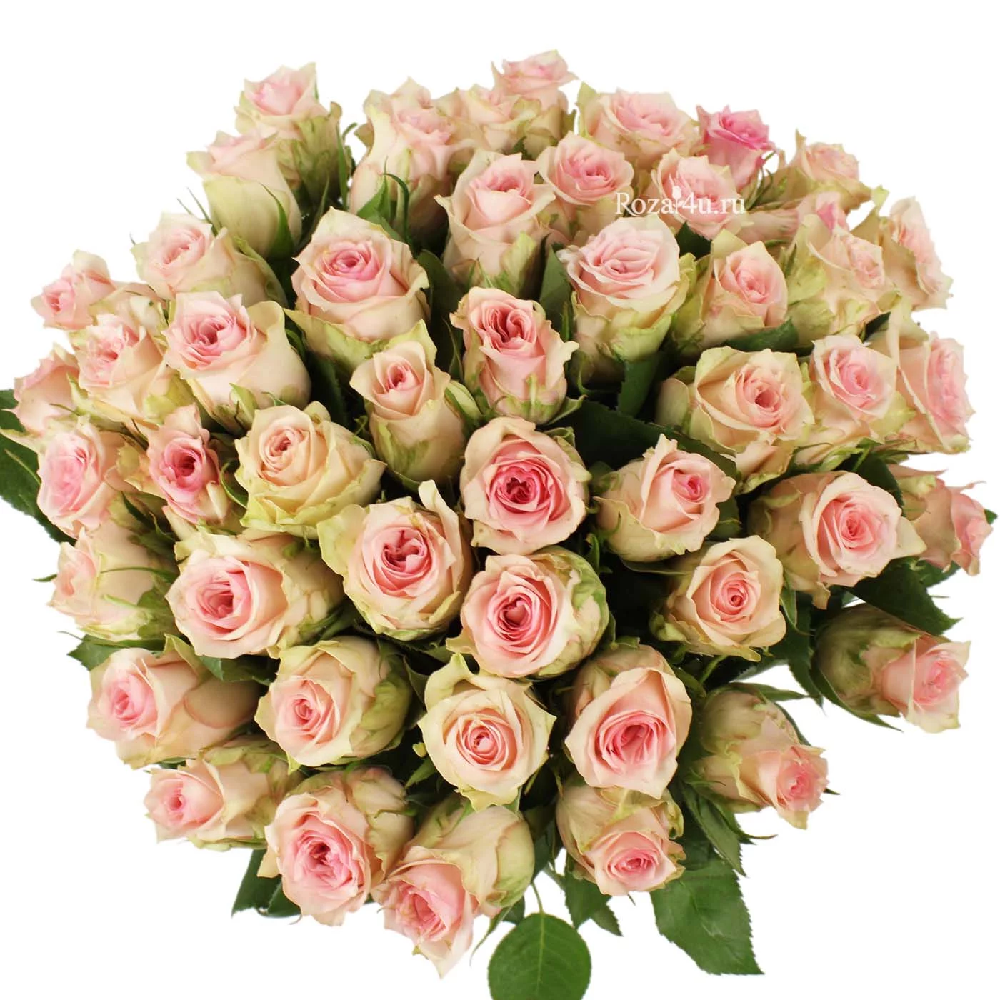 Свежая, ароматная роза нежно-розового оттенка прекрасно смотрится в составе букета из 51 шт. А какое раскрытие у этой двуцветной розы, вы только представьте! Нежный градиентный переход от белого к розовому. Хотите удивить получателя не только количеством, но и качеством розы, тогда этот букет для Вас! Профессиональные флористы ROZA4U с любовью соберут для Вас цветы, а пунктуальные курьеры доставят заказ точно в срок.