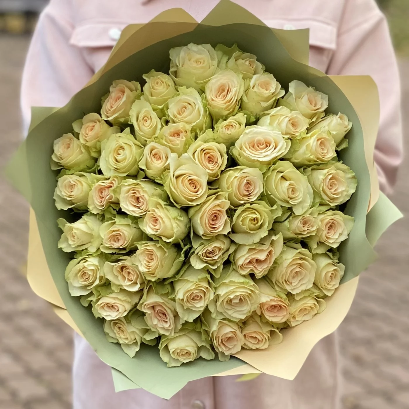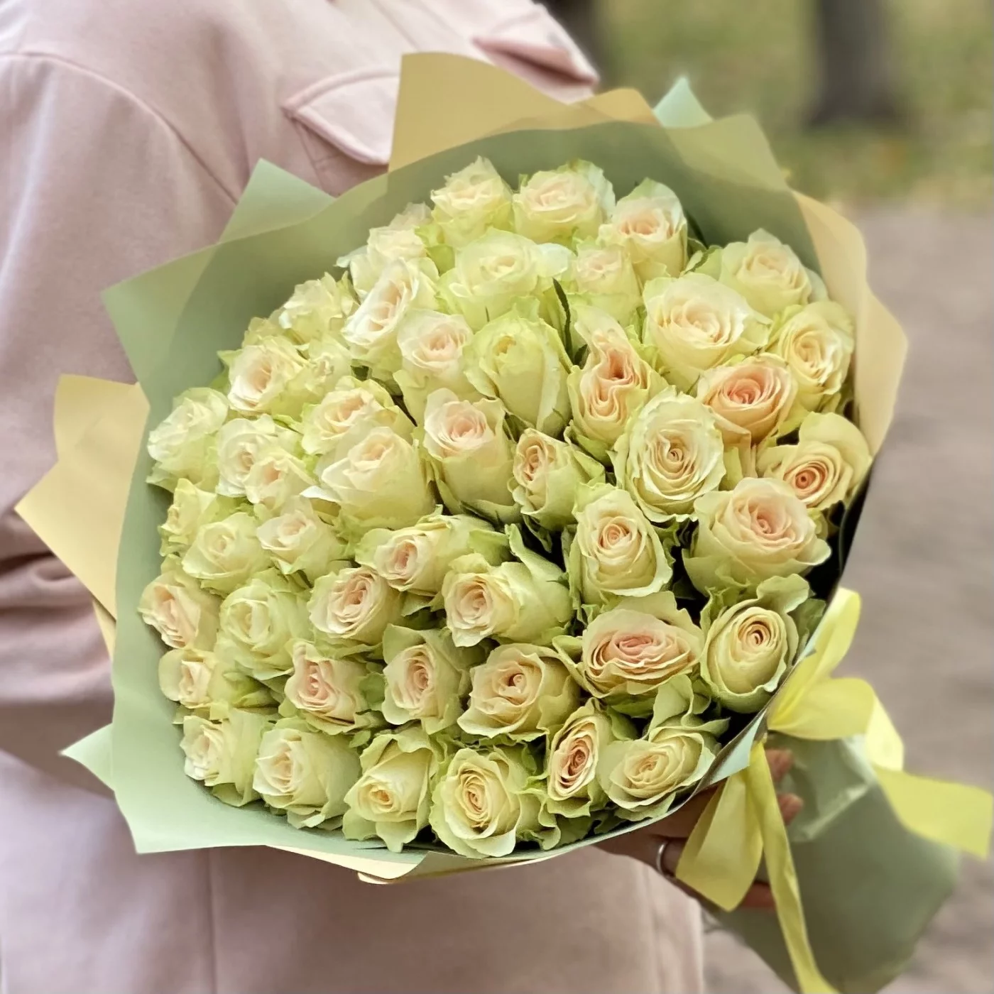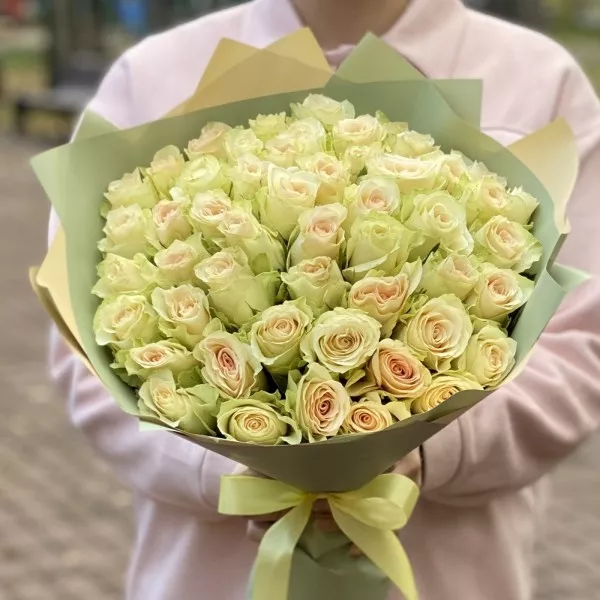 Свежая, ароматная роза Киви прекрасно смотрится в составе букета из 51 цветка. Нежный градиентный переход от салатового к розовому делает эту необычную розу особенно любимой среди девушек. Хотите удивить получателя не только количеством, но и качеством розы, тогда этот букет для Вас! Профессиональные флористы ROZA4U с любовью соберут для Вас роскошный букет из роз Киви, а наши пунктуальные курьеры доставят заказ точно в срок.