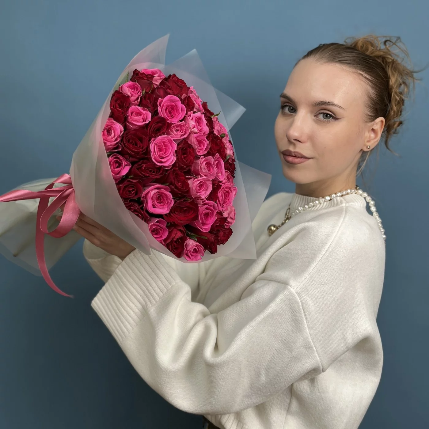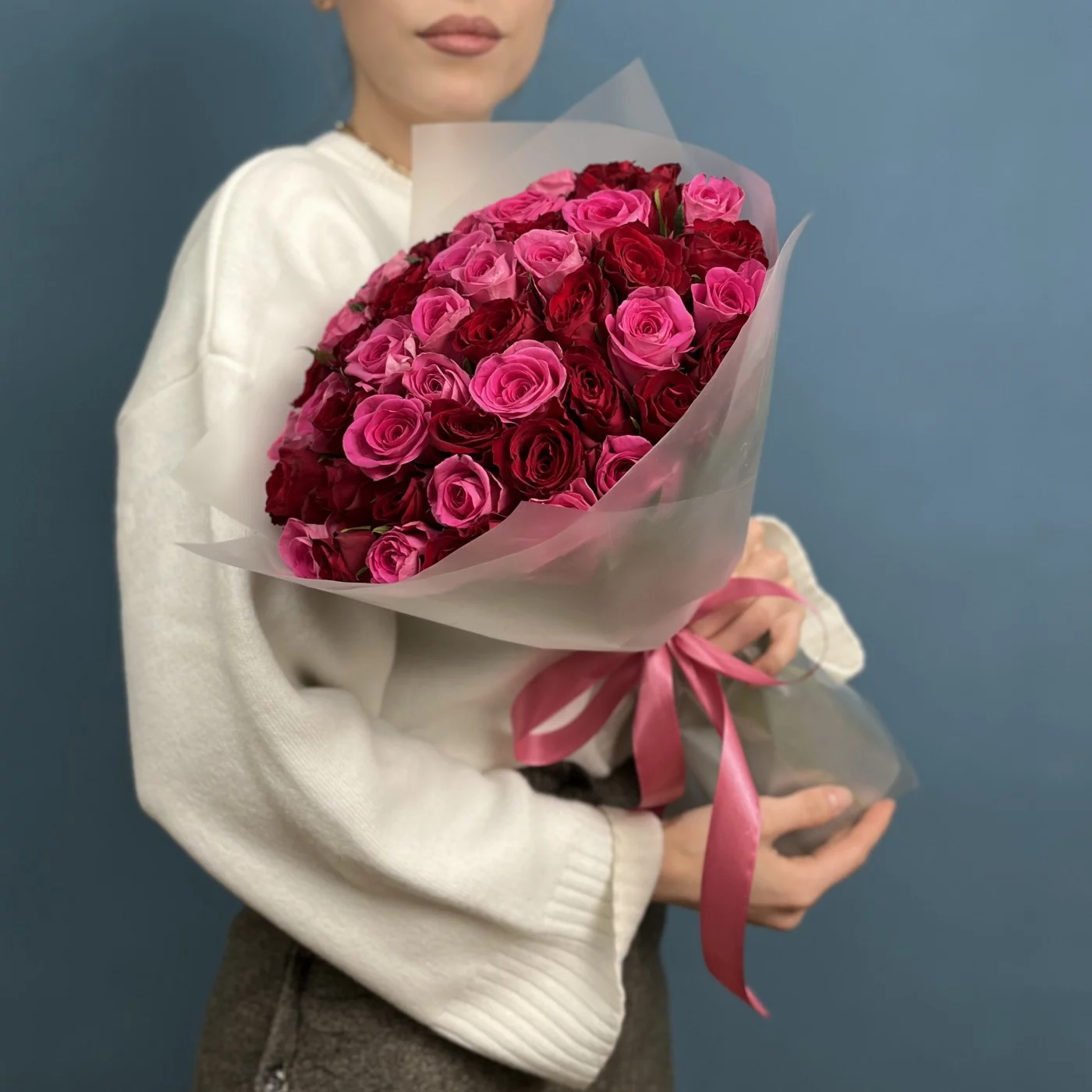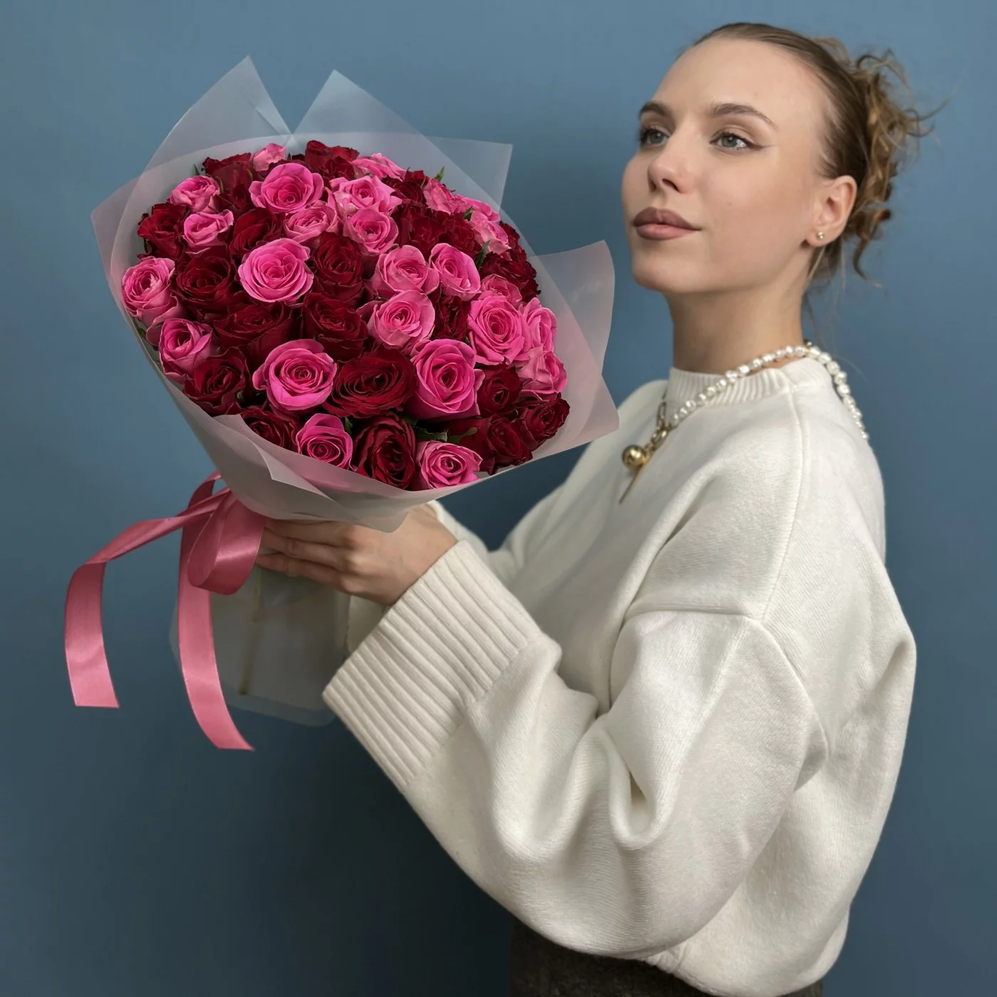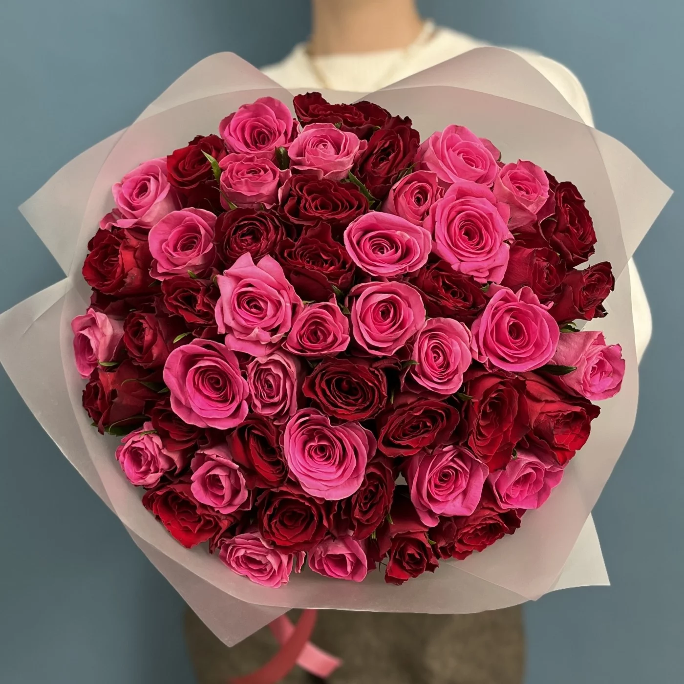 Букет из 51 розы Ягодка Малинка — это яркий и запоминающийся подарок, который поможет создать атмосферу тепла и радости.