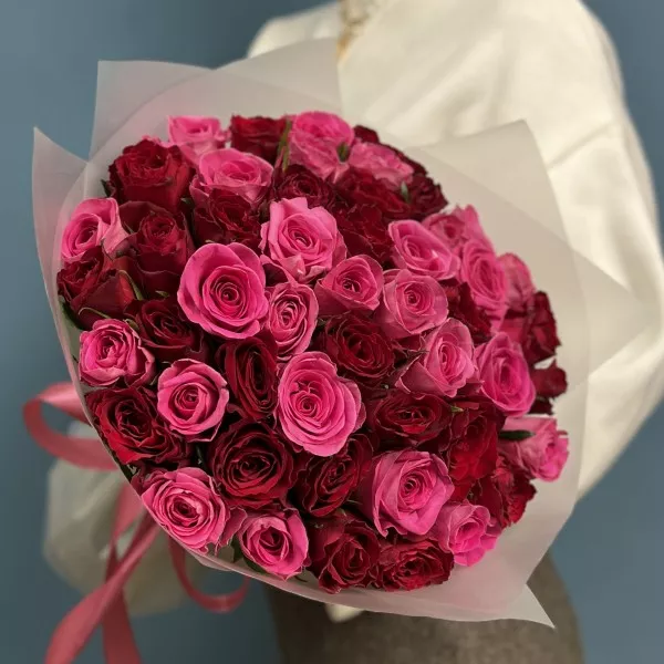 51 роза ягодка малинка — это яркий и насыщенный букет, который сочетает в себе оттенки красного и розового, напоминающие сочные малиновые ягоды. Такой букет станет прекрасным подарком, который передаст тепло и радость ваших чувств.