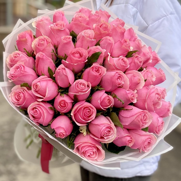 Необычайно нежная розовая роза Селеб, преподнесите такой букет любимой.