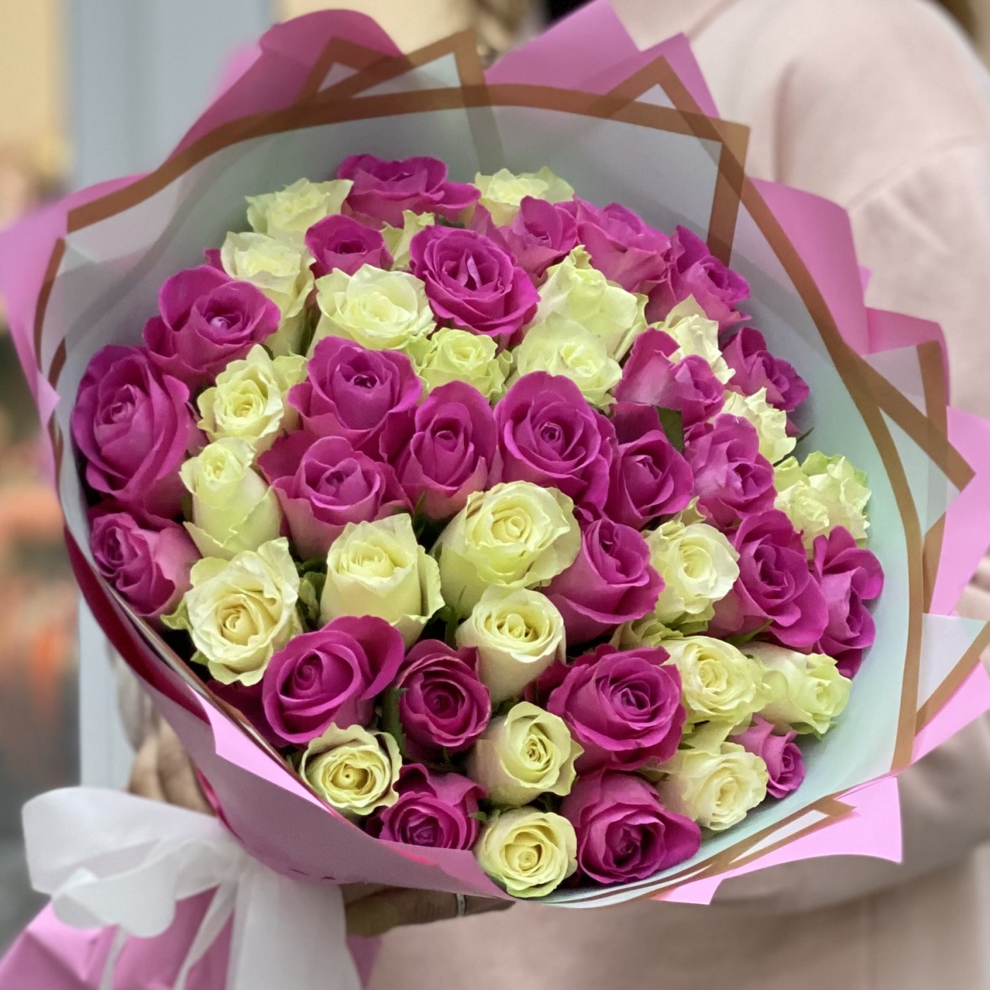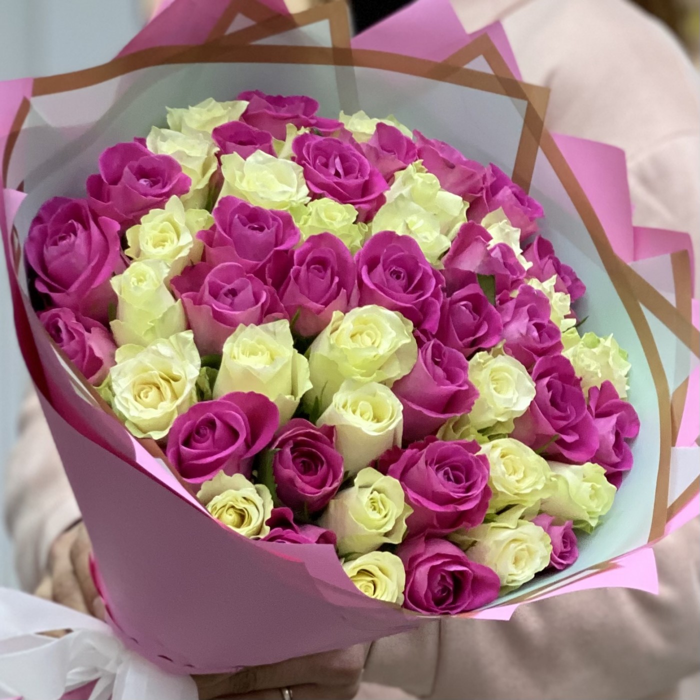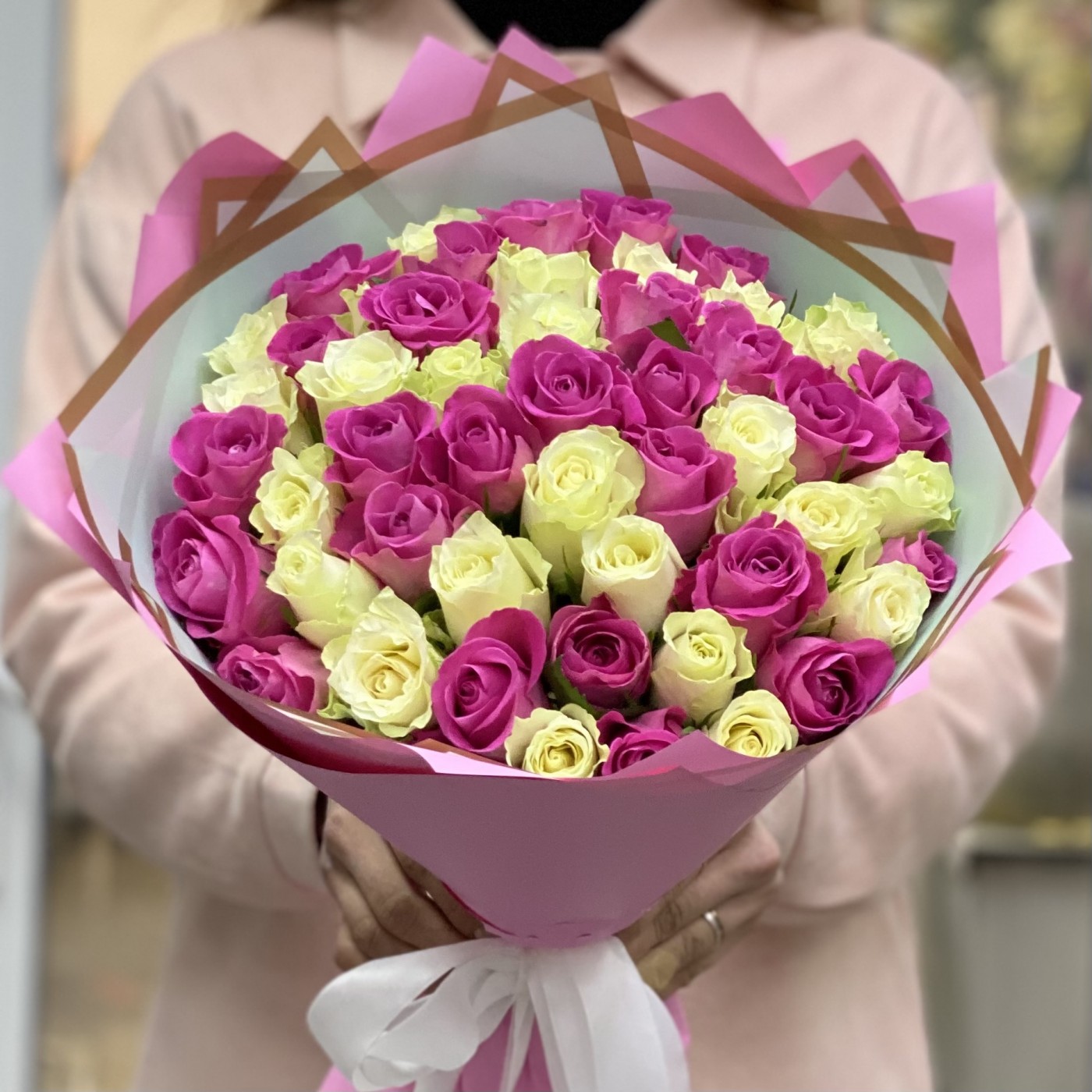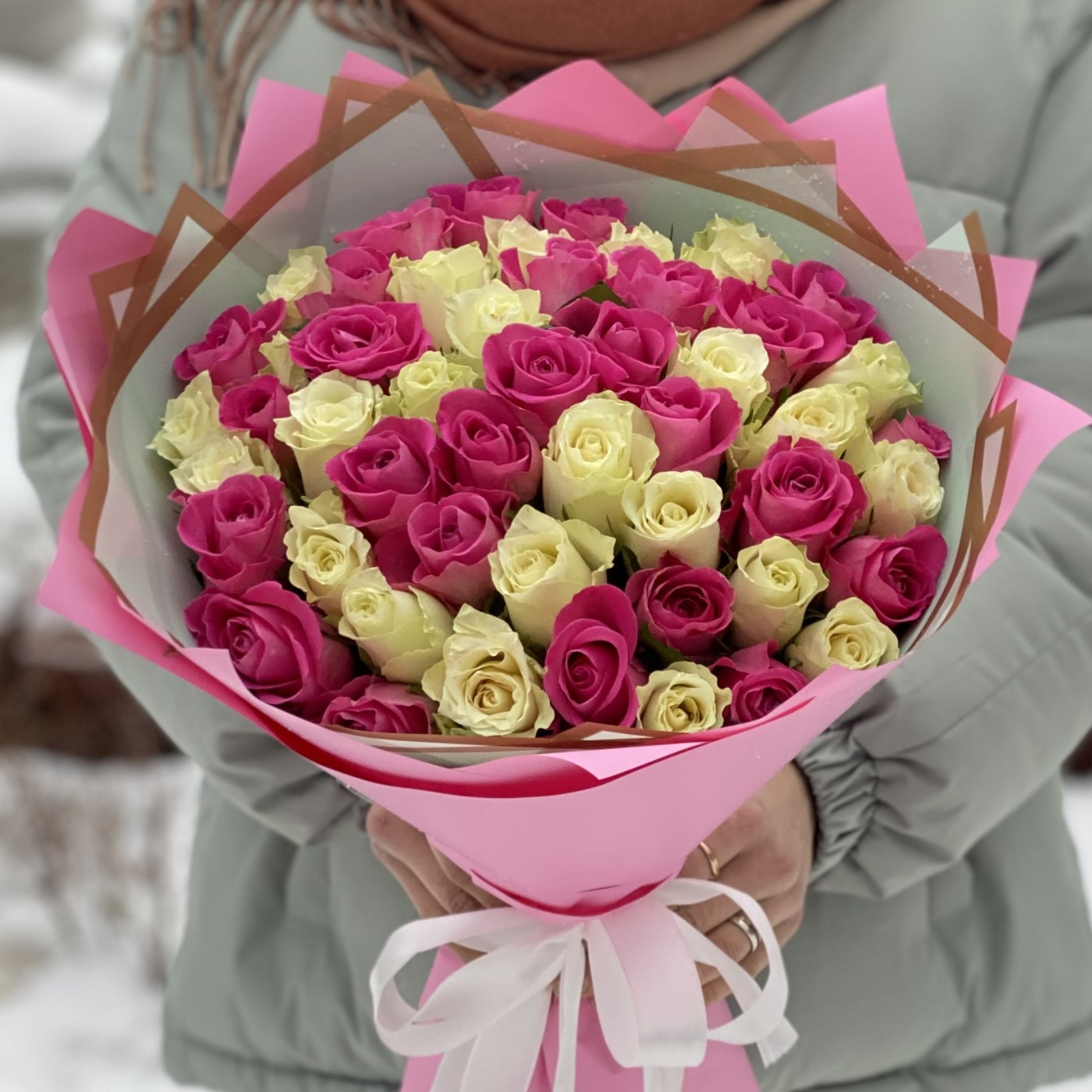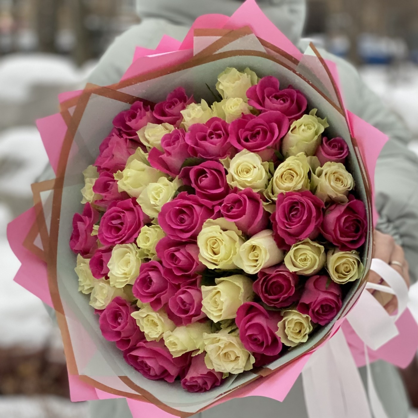 состав: 51 роза белого и розового цветов (розы вживую более насыщенные, чем на фото).