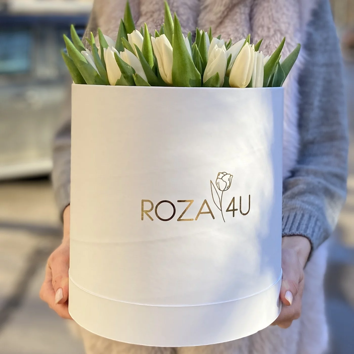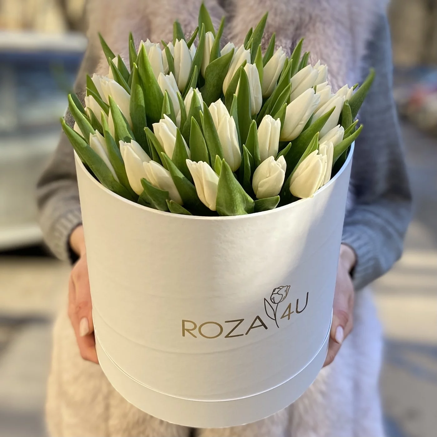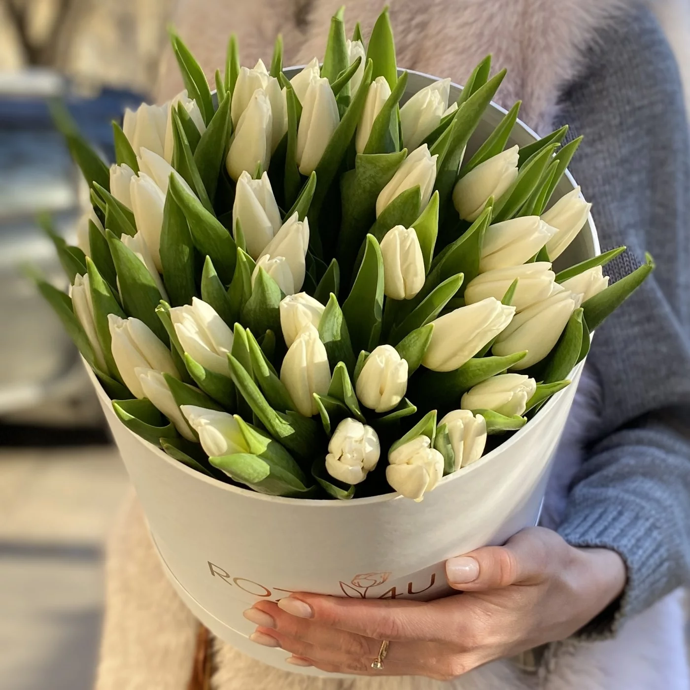 51 белый тюльпан в коробке