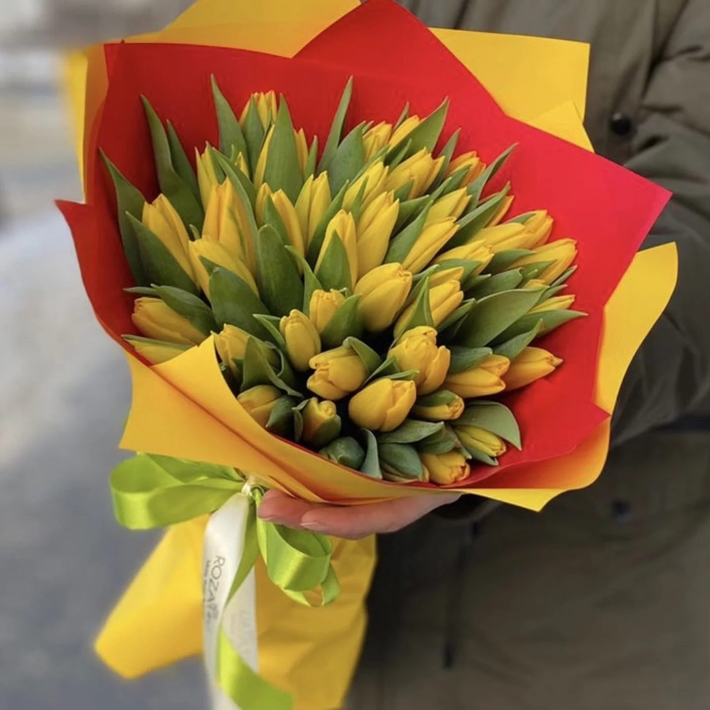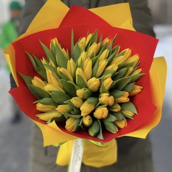 Весенние, яркие и ароматные желтые тюльпаны. Букет из 51 желтого тюльпана прекрасно подойдет в качестве подарка на 8 марта и день рождения. Подарите получателю весеннее настроение.