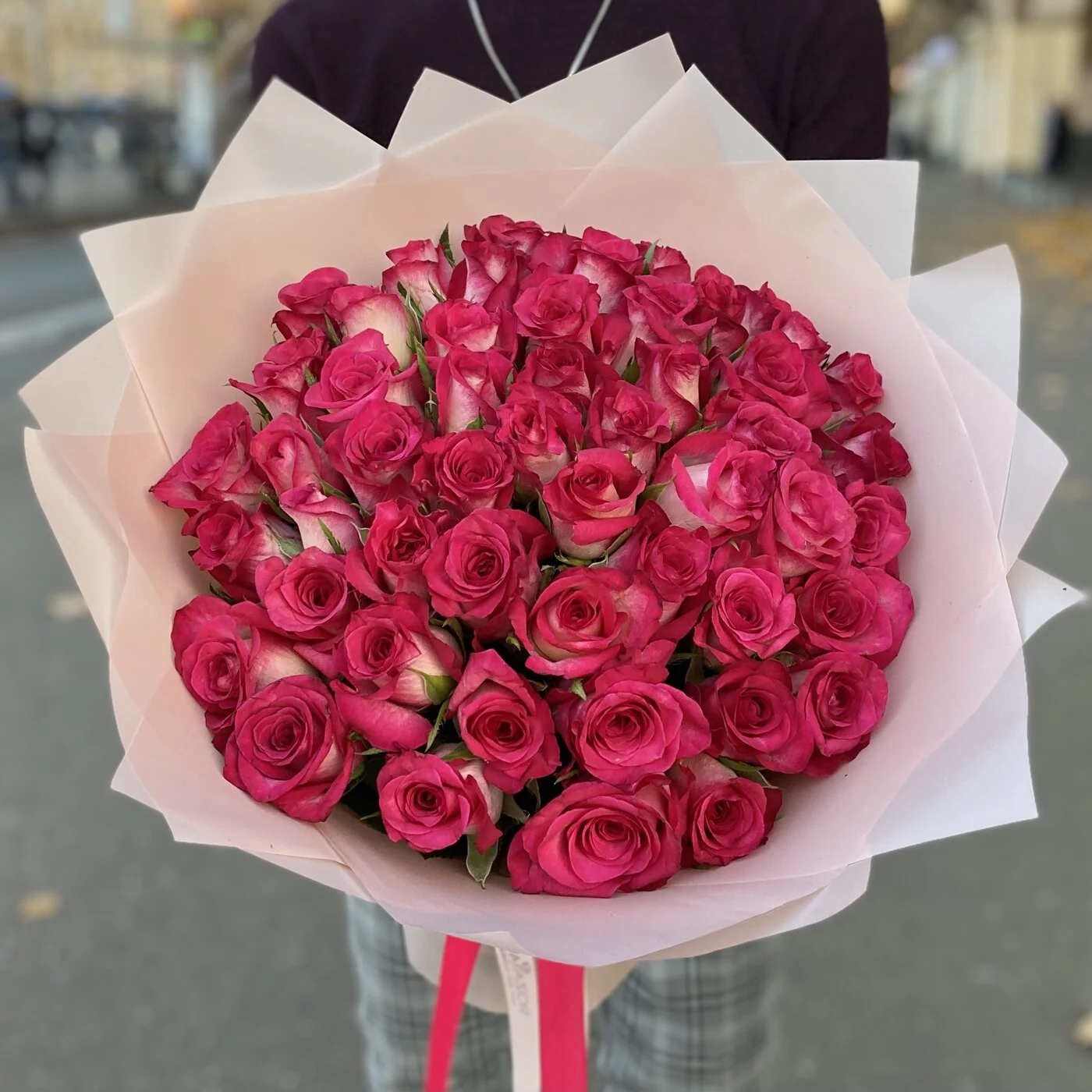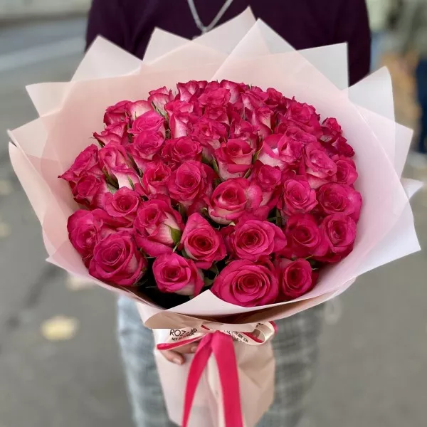 Яркий, сочный букет малиново-белых роз Николетта - прекрасный комплимент красоте вашей девушки. Это изысканный сорт цветов, с ярко-розовым завершением каждого цветочного лепестка. Именно таким букетом можно подчеркнуть исключительность события, встречи, эмоций! Дарите радость и любовь своим близким и пусть ваши добрые чувства воплотятся в великолепном букете из 51 розы "Николетта".