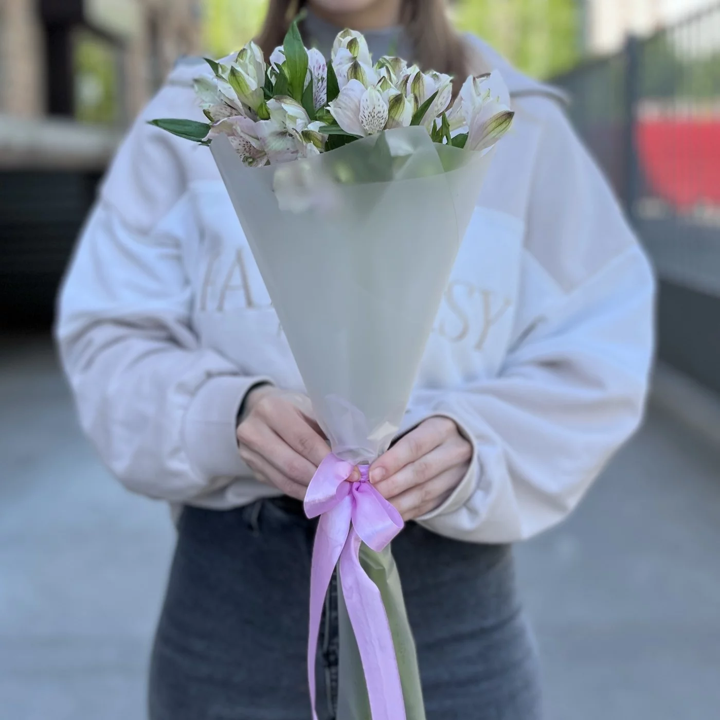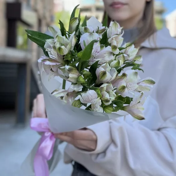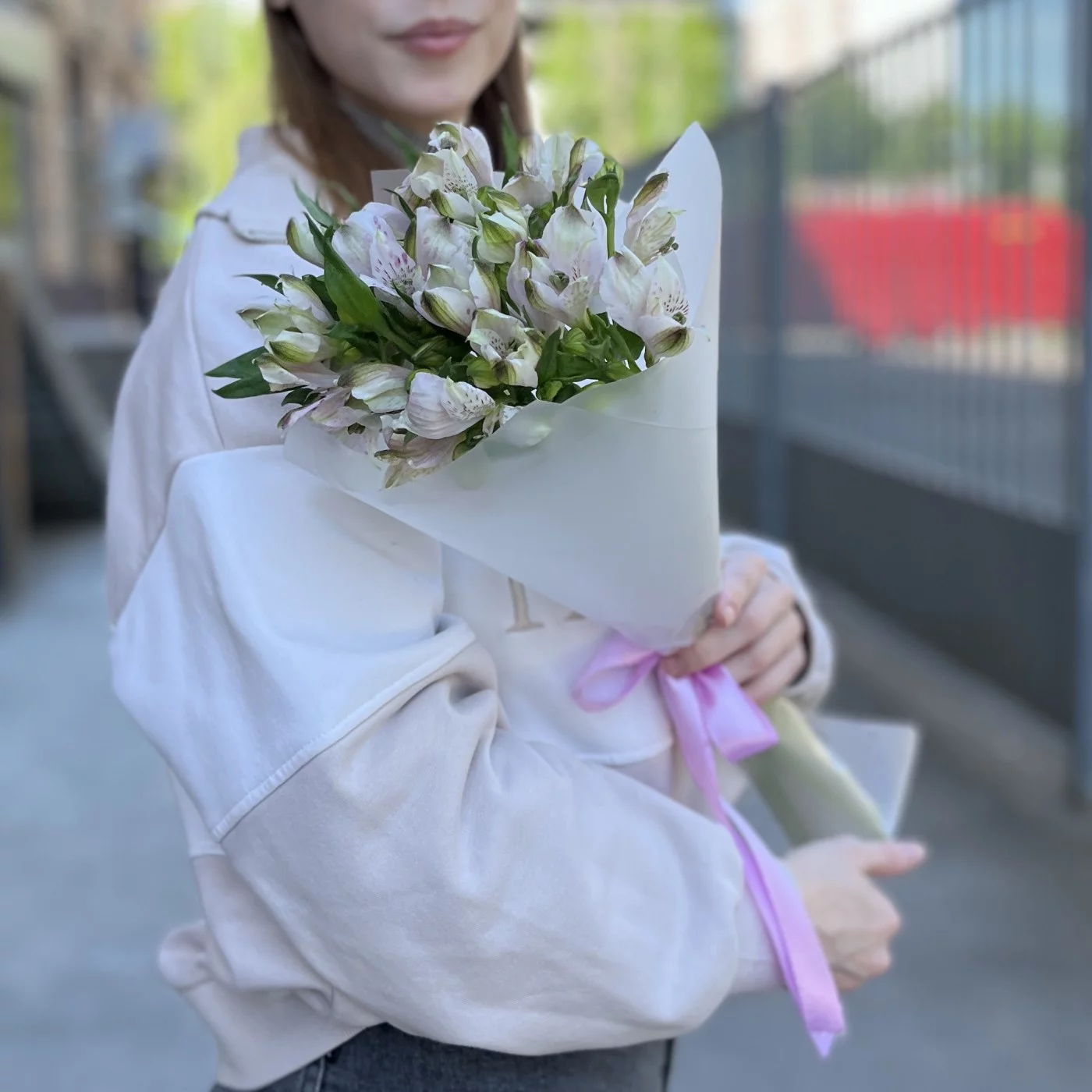 Очаровательный букет из 7 бело-фиолетовых Альстромерий — изящное решение для любого повода. Эти нежные цветы символизируют дружбу и искренние чувства, создавая атмосферу спокойствия и красоты. Идеальный подарок для тех, кто ценит утонченность и элегантность в каждом цветке.