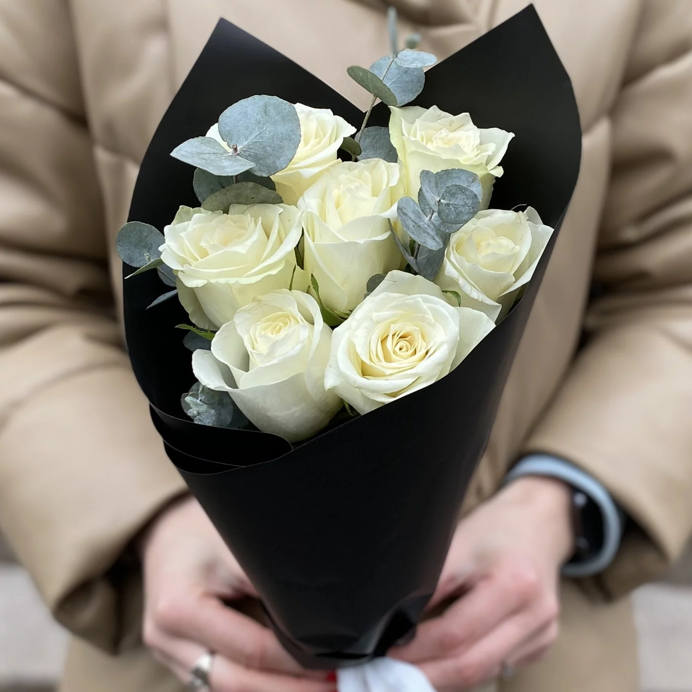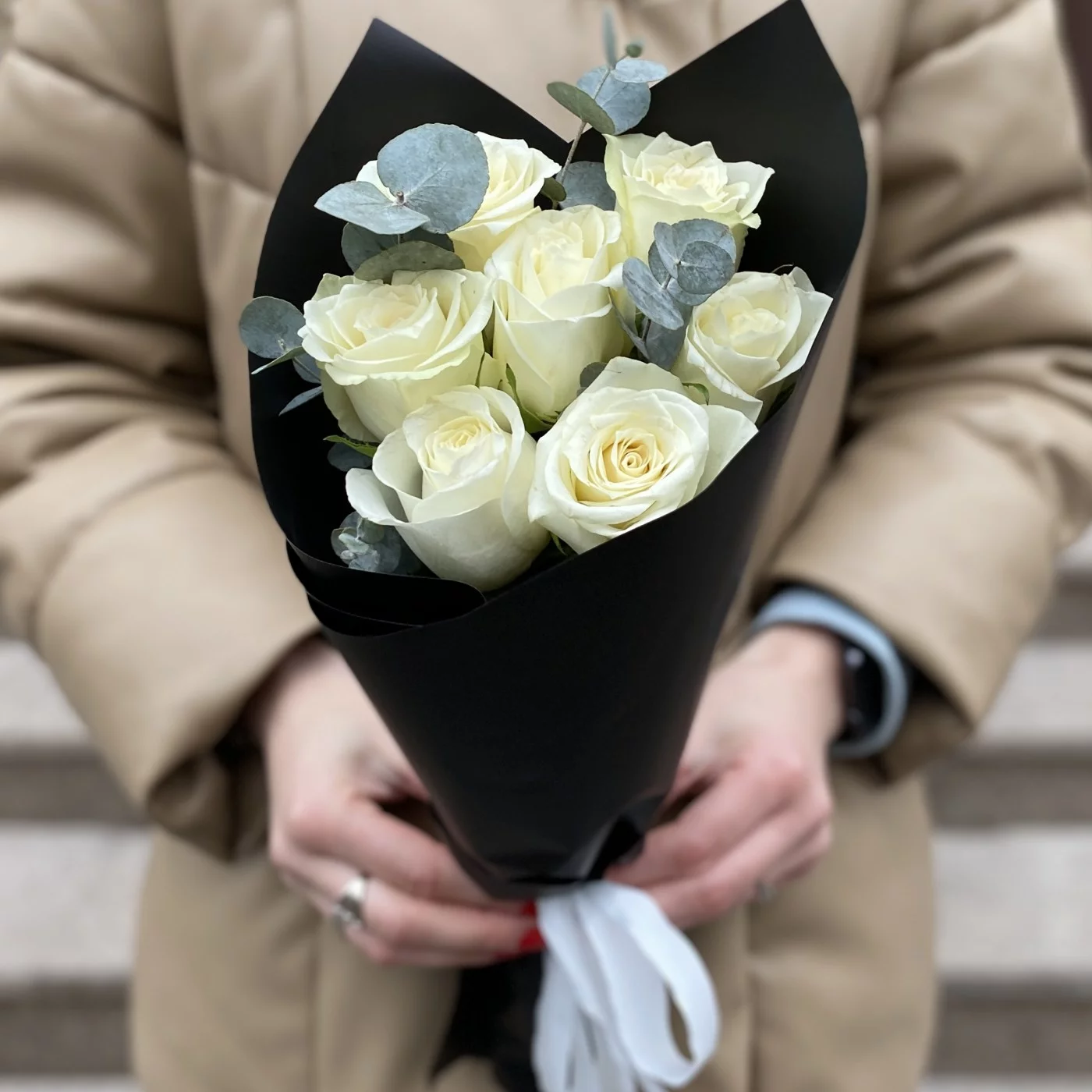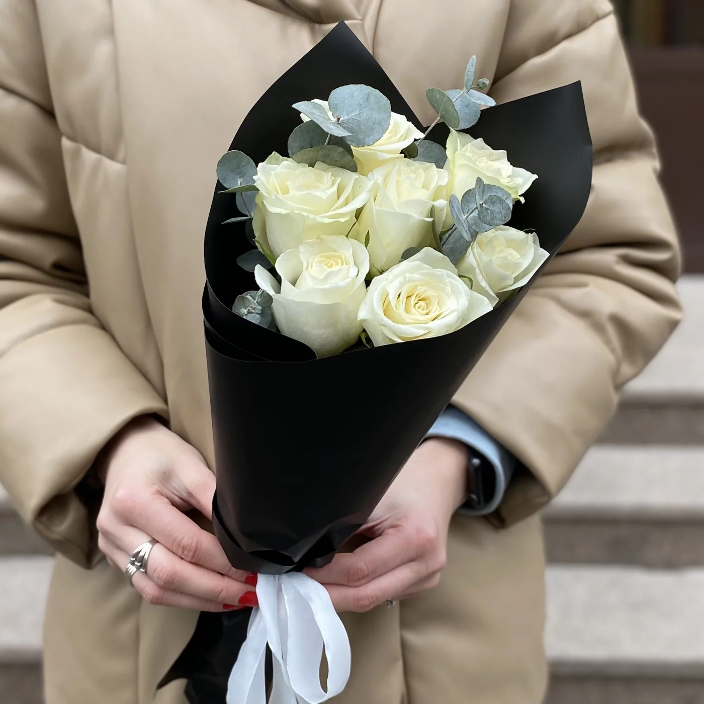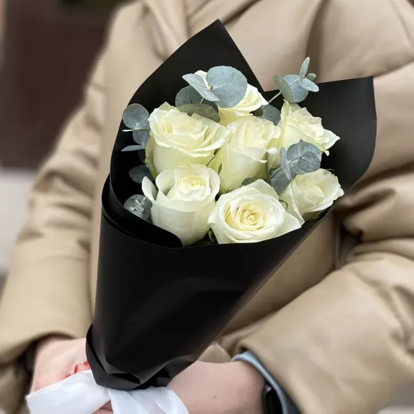 За три месяца мы доставили товар "7 белых роз с эвкалиптом" по следующим локациям: