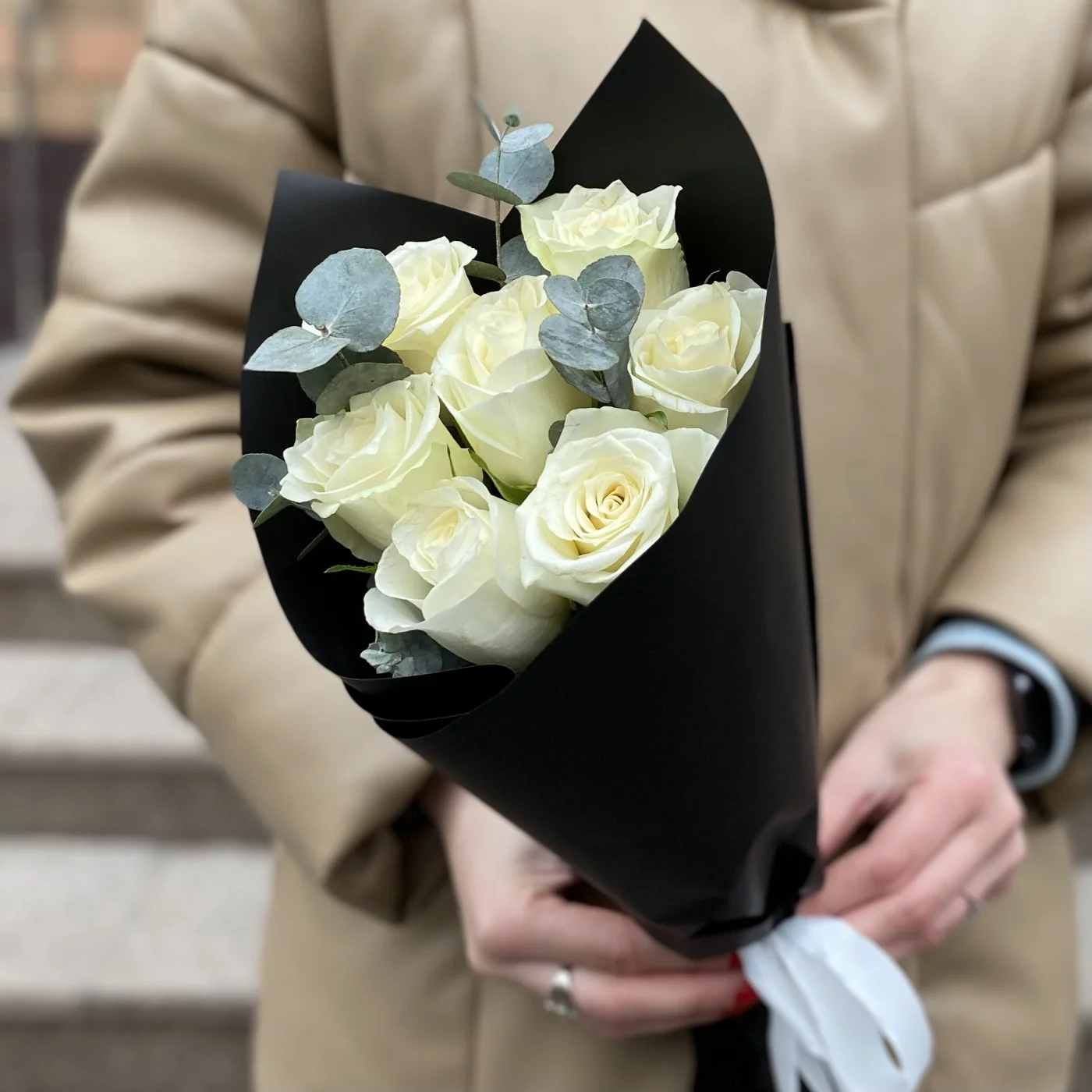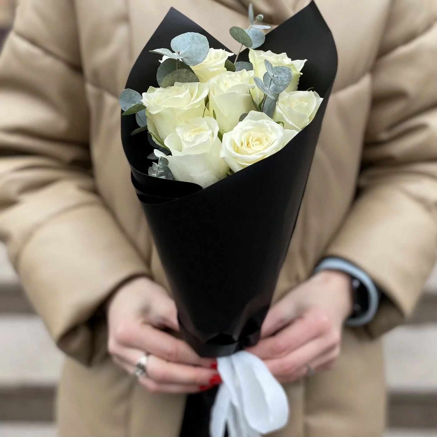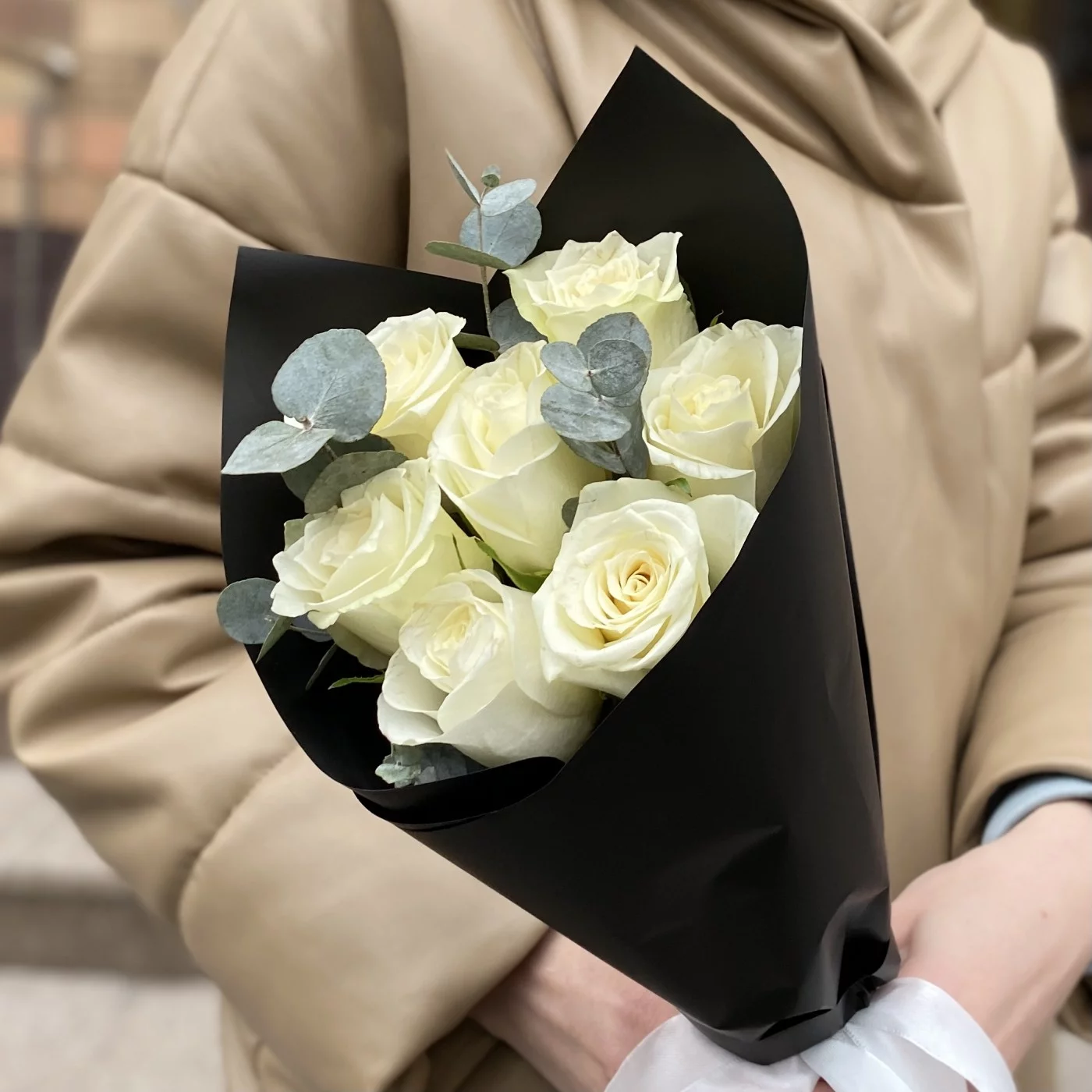 За три месяца мы доставили товар "7 белых роз с эвкалиптом" по следующим локациям: