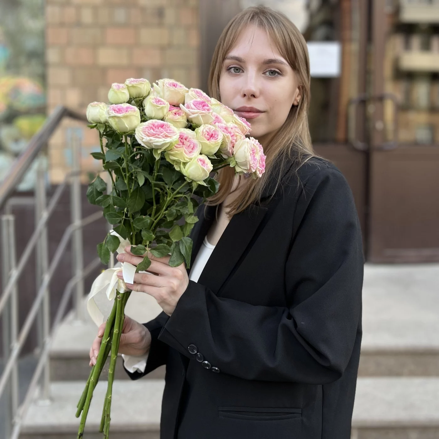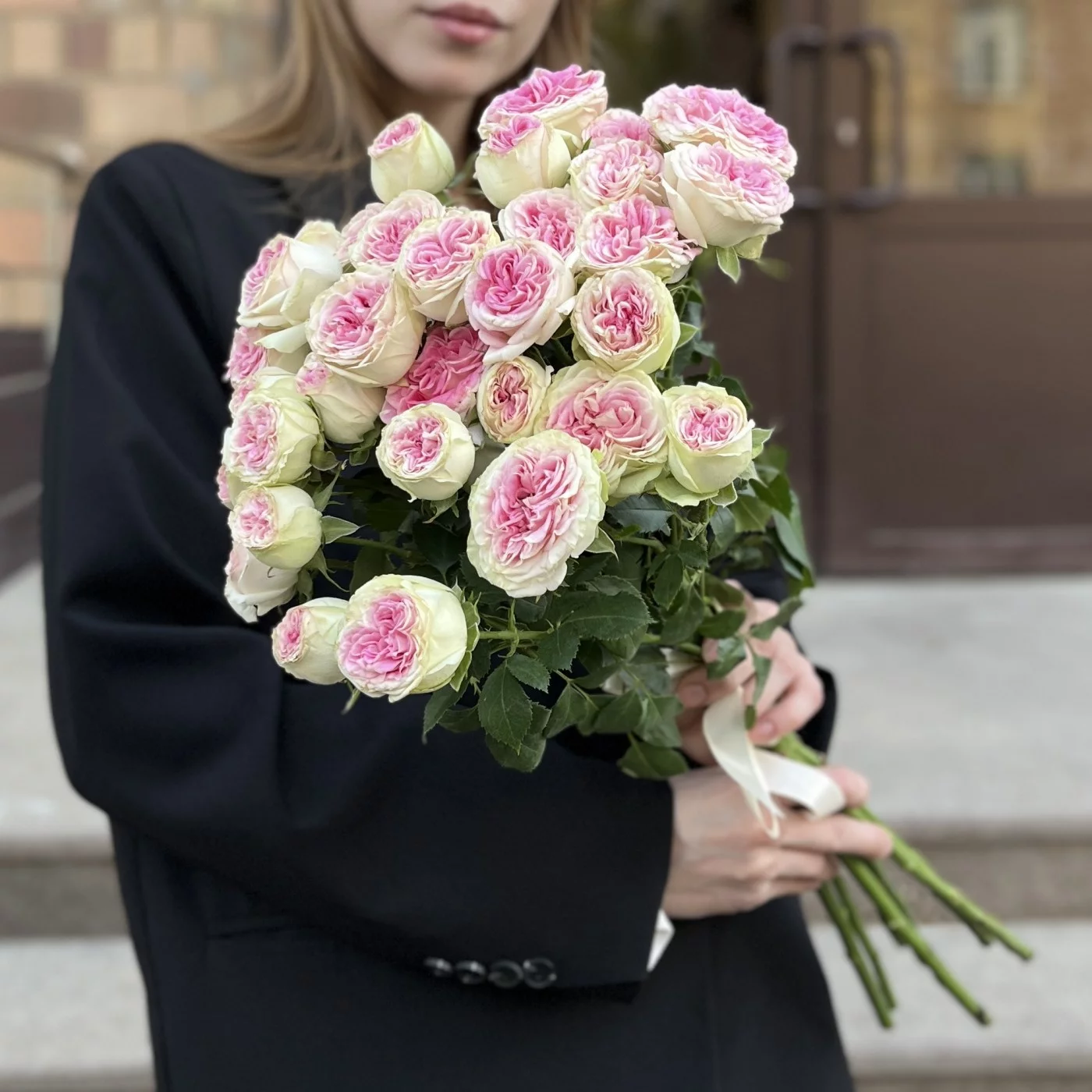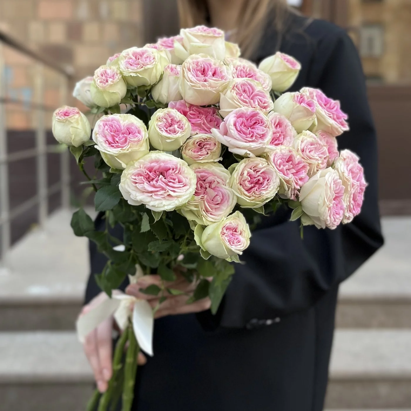 7 кустовых пионовидных роз Джелатто 50 см, символизируют любовь, красоту и восхищение, что делает этот букет прекрасным выбором для свадеб, юбилеев или других значимых событий.
