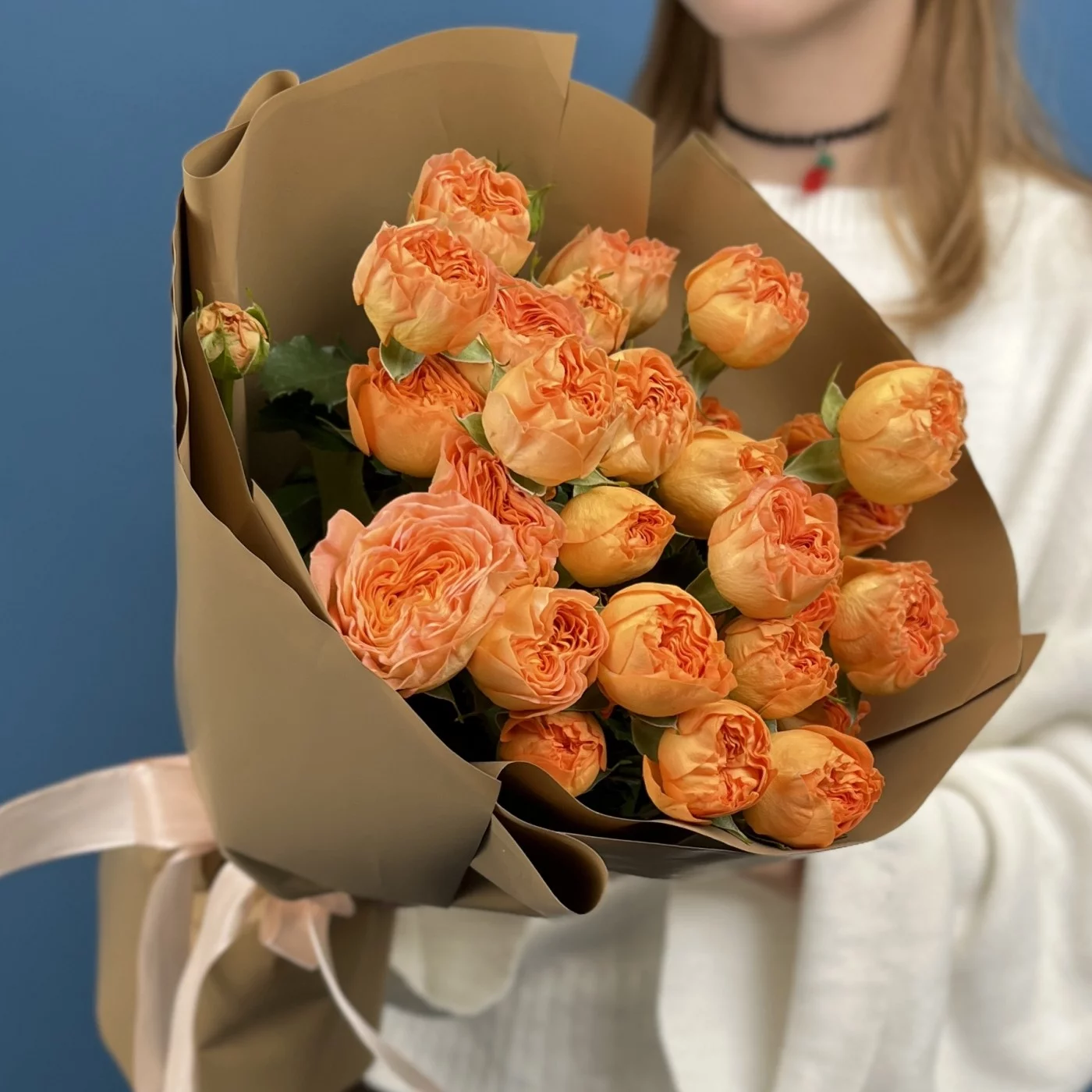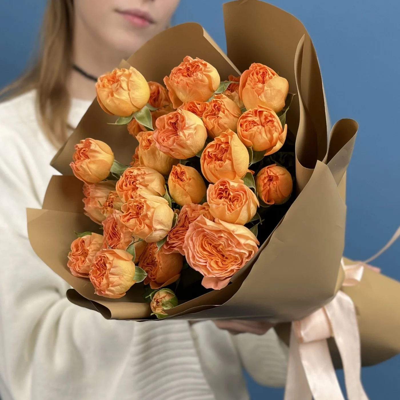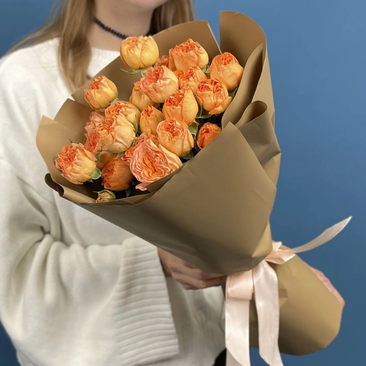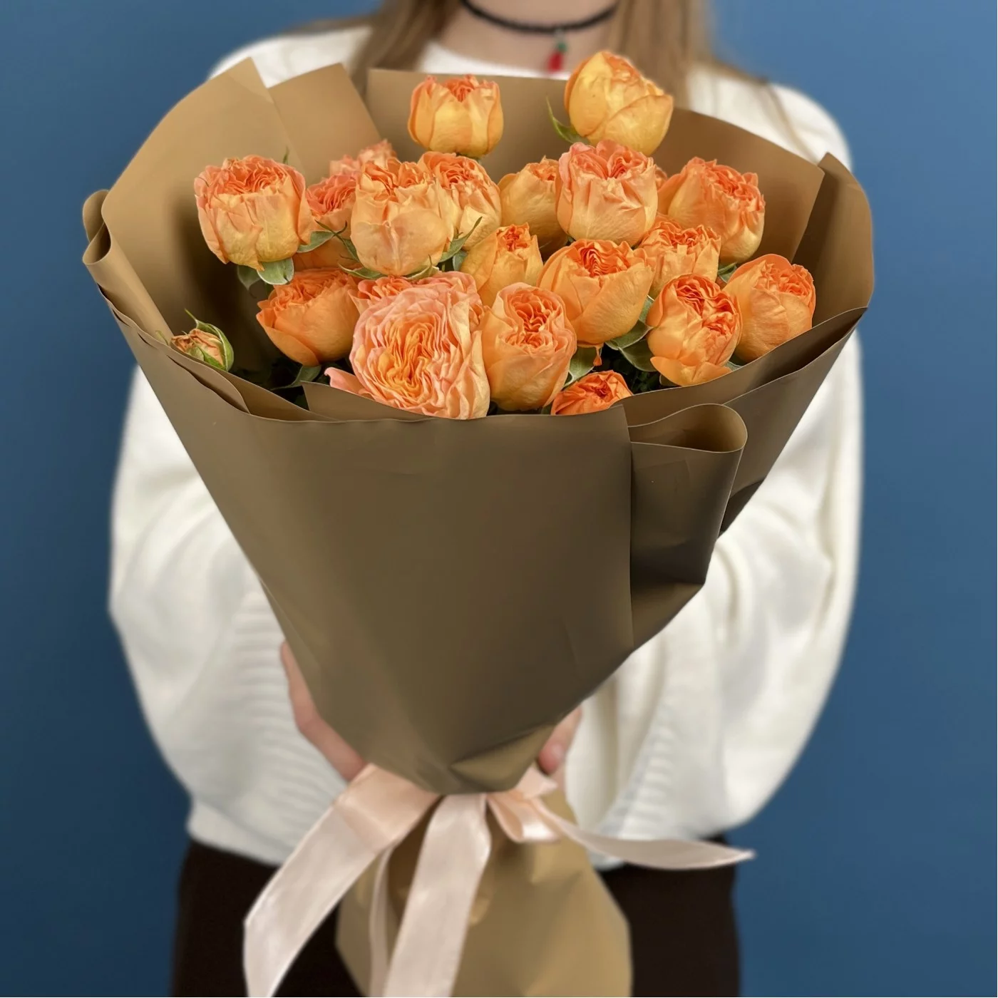 7 кустовых пионовидных роз Оранж Трендсеттер 40 см