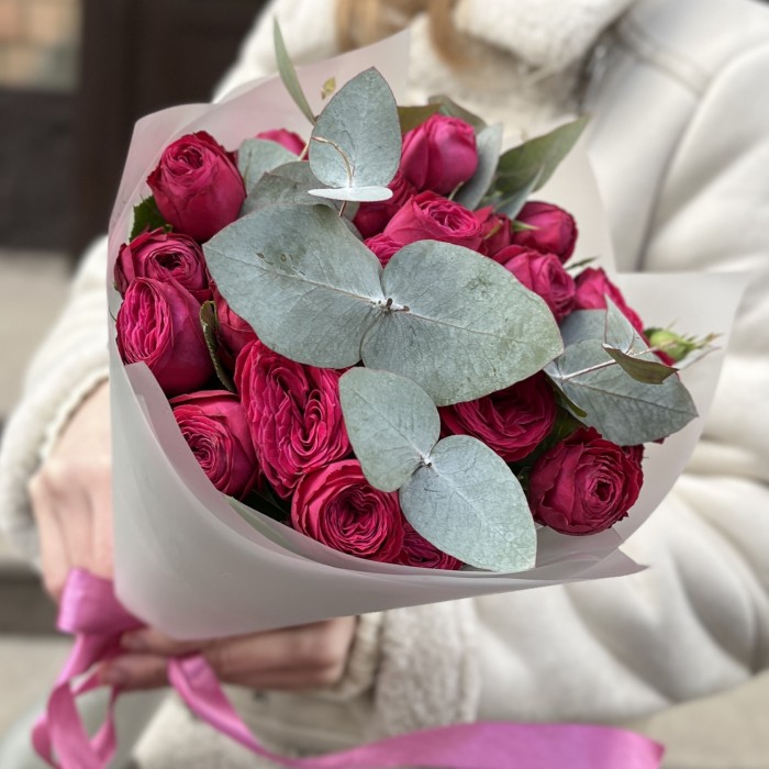 Букет из 7 кустовых пионовидных роз Пати Тренсеттер с эвкалиптом — это сочетание красоты, аромата эвкалипта и элегантности. Такой букет подчеркнет ваше особое отношение к получателю и станет ярким акцентом в любой ситуации.