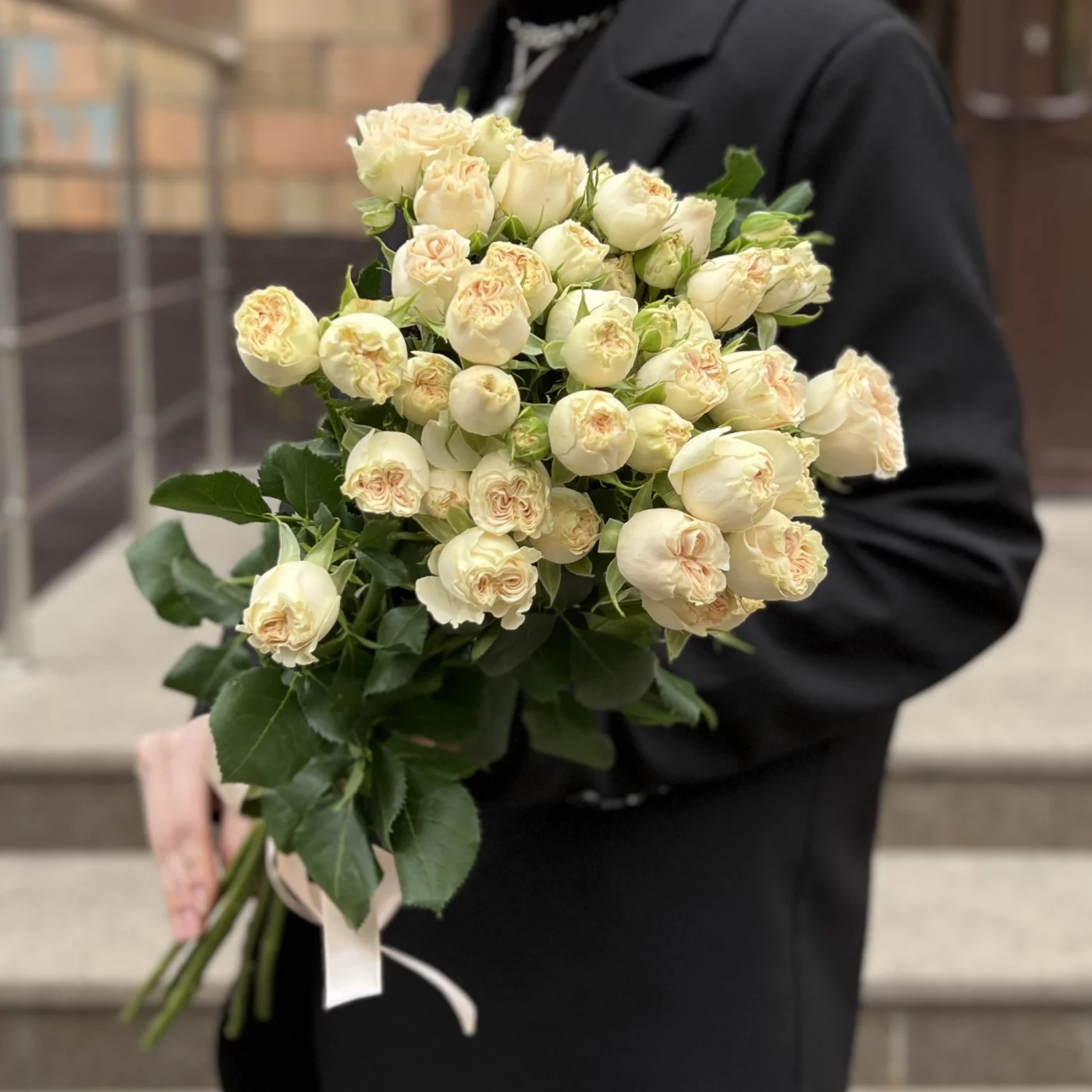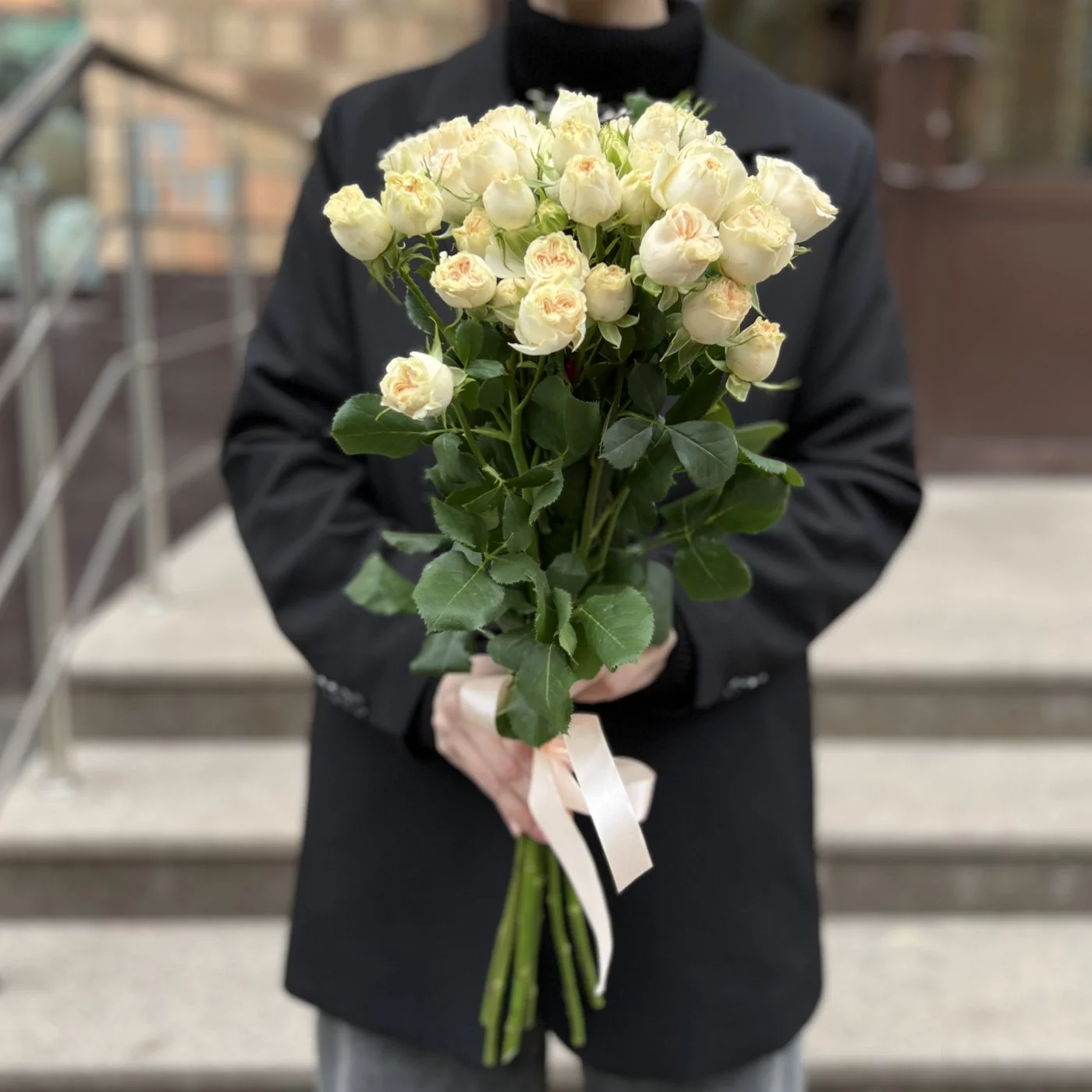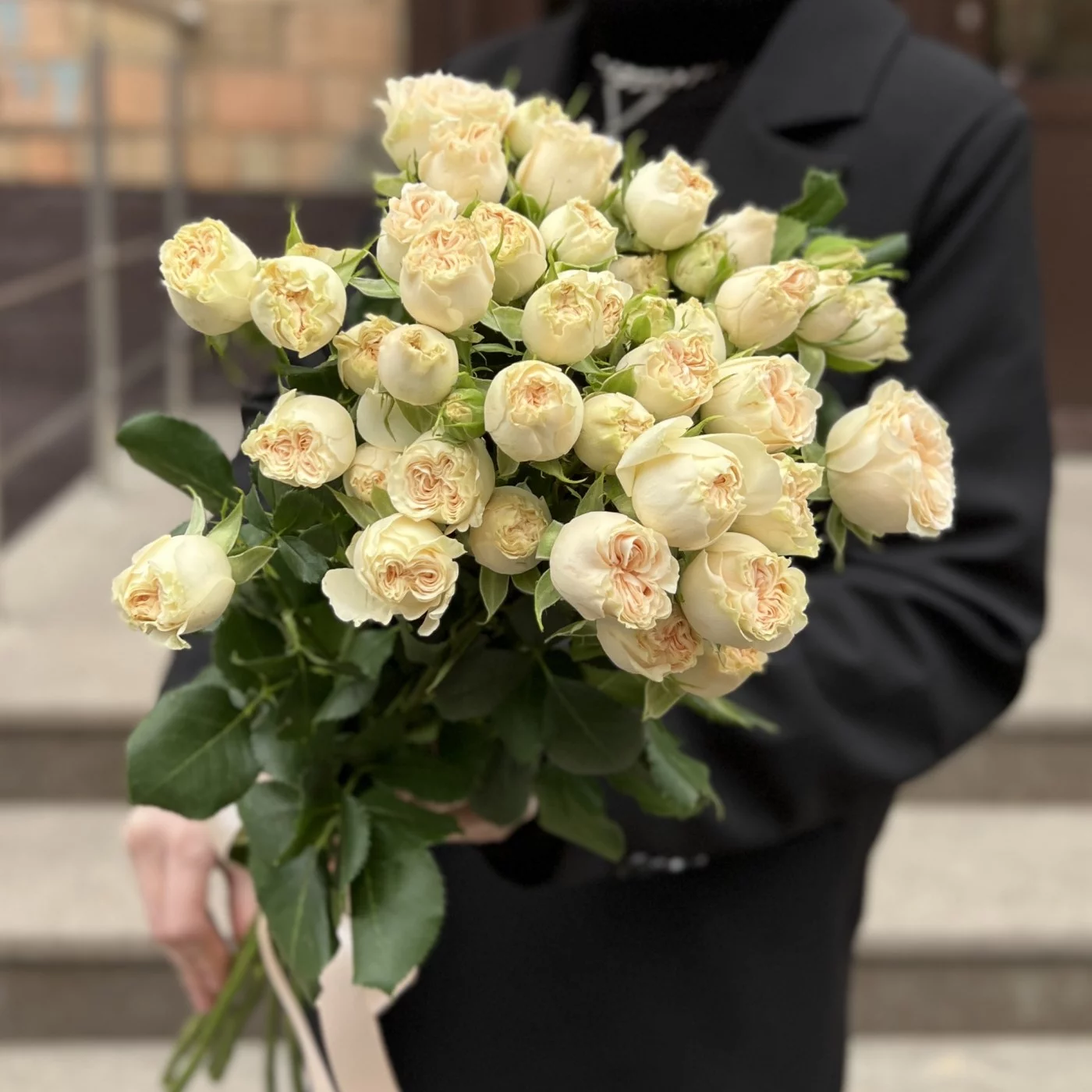 7 кустовых пионовидных роз Саммер-роз 50 см, выглядит очень стильно и подходит для различных мероприятий — от романтических свиданий до свадеб или юбилеев.