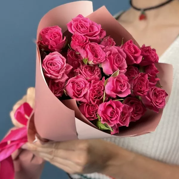 Небольшой, изящный букет из 7 кустовых роз Глория высотой около 40 см — это сочетание нежности и элегантности. Эти аккуратные розы с пышными лепестками в классических оттенках создают атмосферу романтики и утонченности. Такой букет отлично подойдет для подарка, украшения интерьера или особого случая, подчеркнет ваш вкус и заботу.