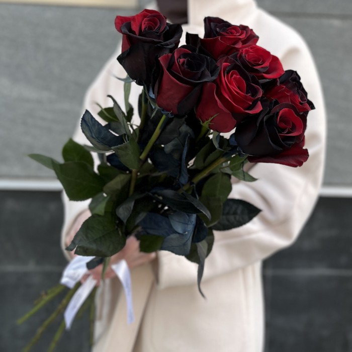 7 радужных красно-черных роз 70 см