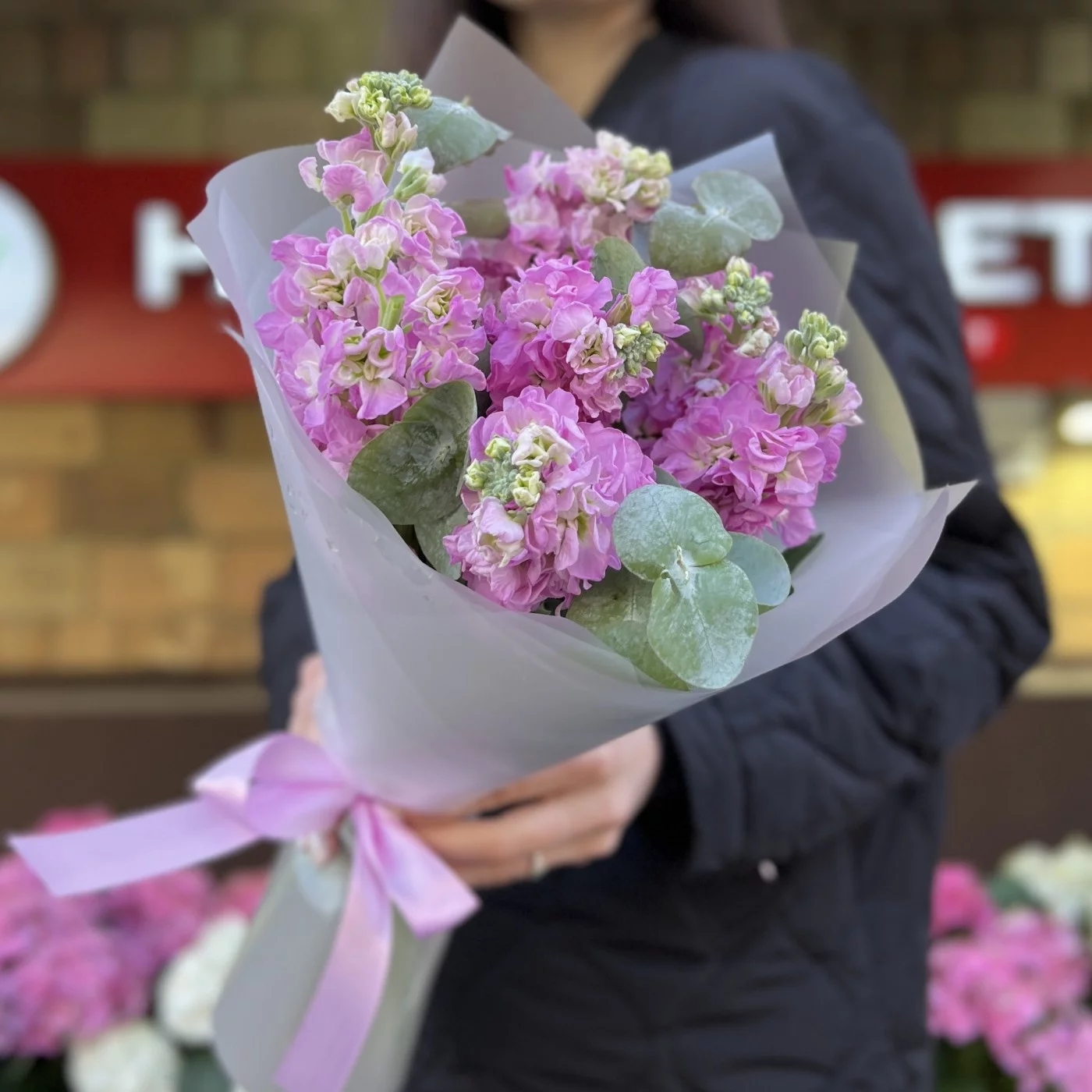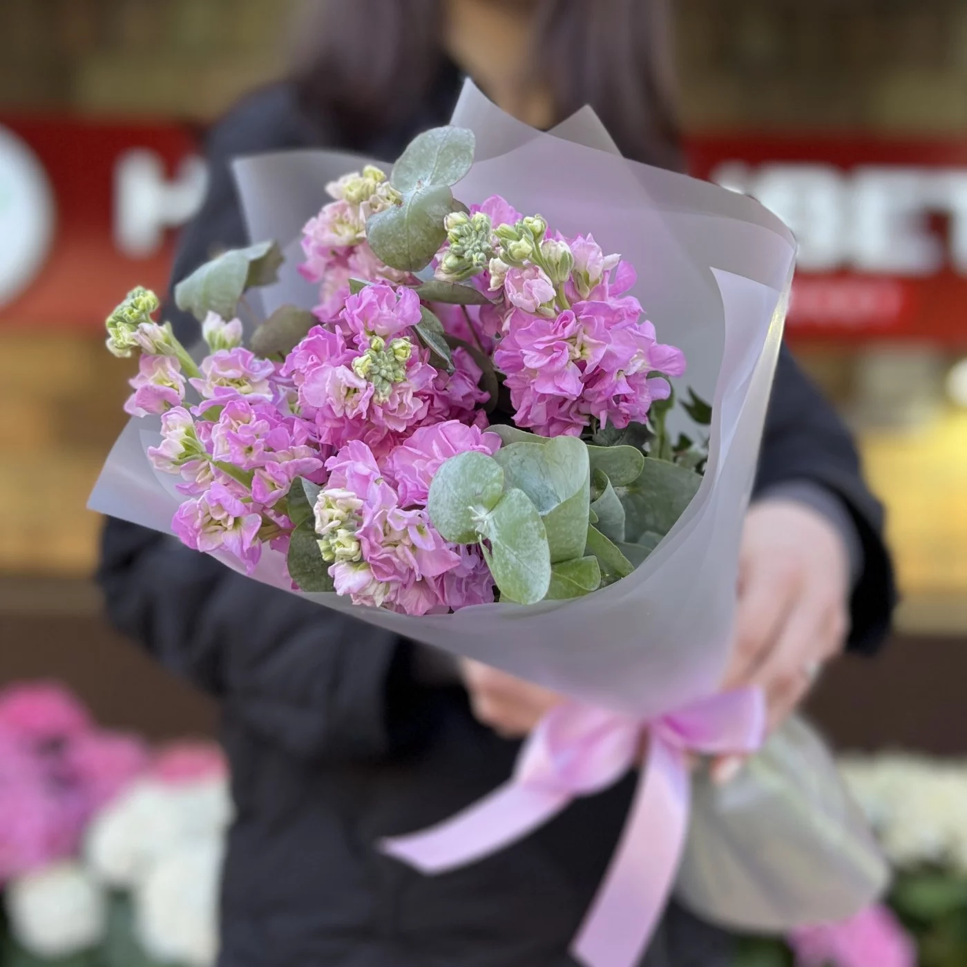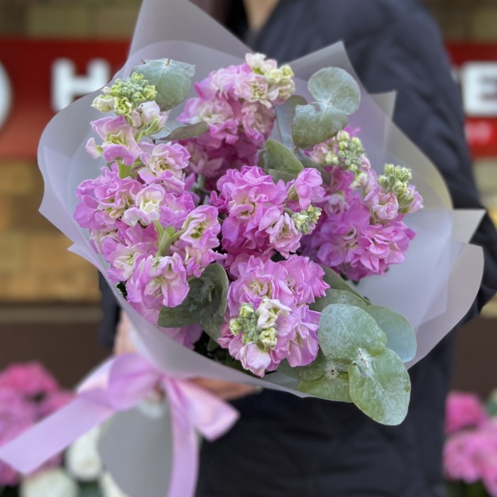 Этот изысканный букет состоит из 7 ароматных розовых маттиол, дополненных нежными веточками эвкалипта. Розовый цвет символизирует нежность, любовь и романтику, а насыщенный аромат маттиол наполняет пространство свежестью и легкостью. Веточки эвкалипта придают композиции природную элегантность, освежающий аромат и завершенность. Такой букет идеально подойдет для подарка, украшения интерьера или создания уютной, бодрящей атмосферы в доме. Его утонченность и аромат обязательно порадуют вас и ваших близких.