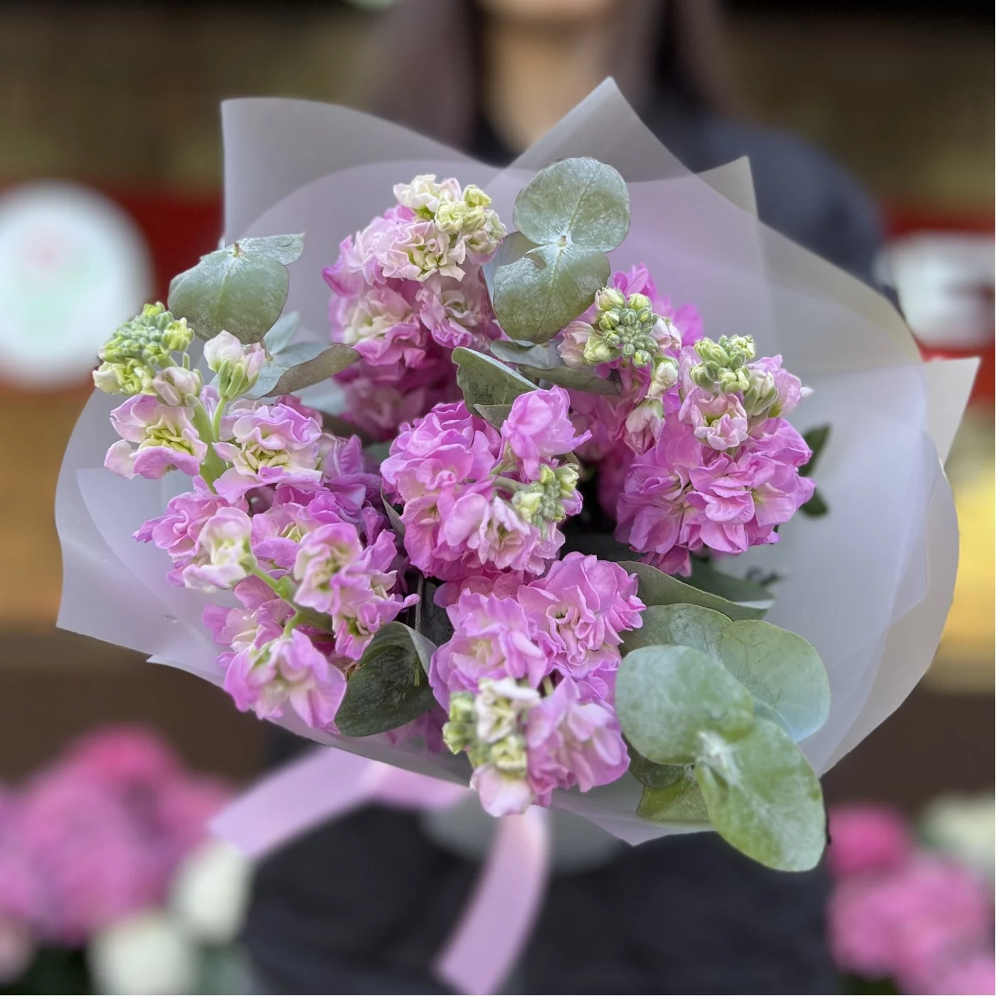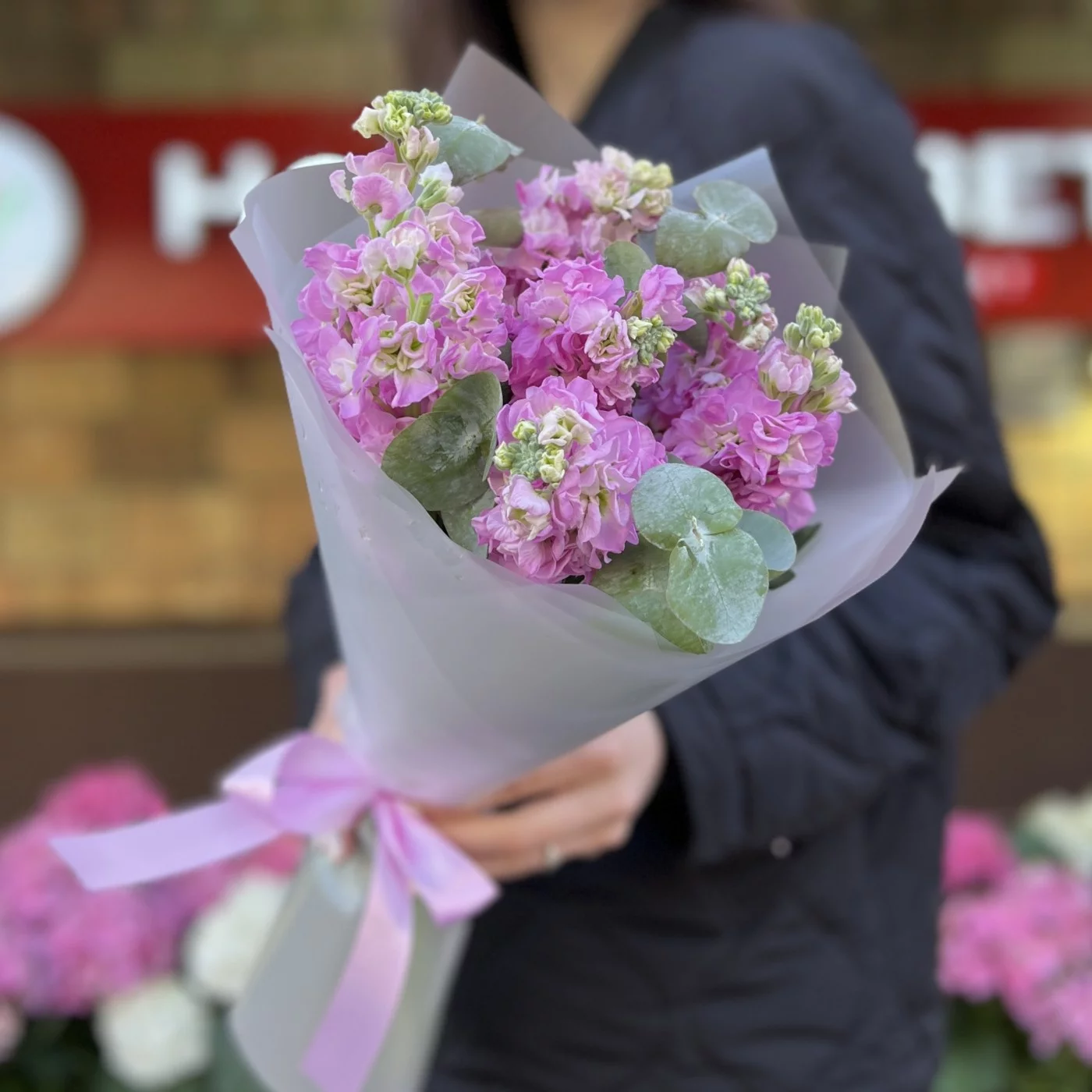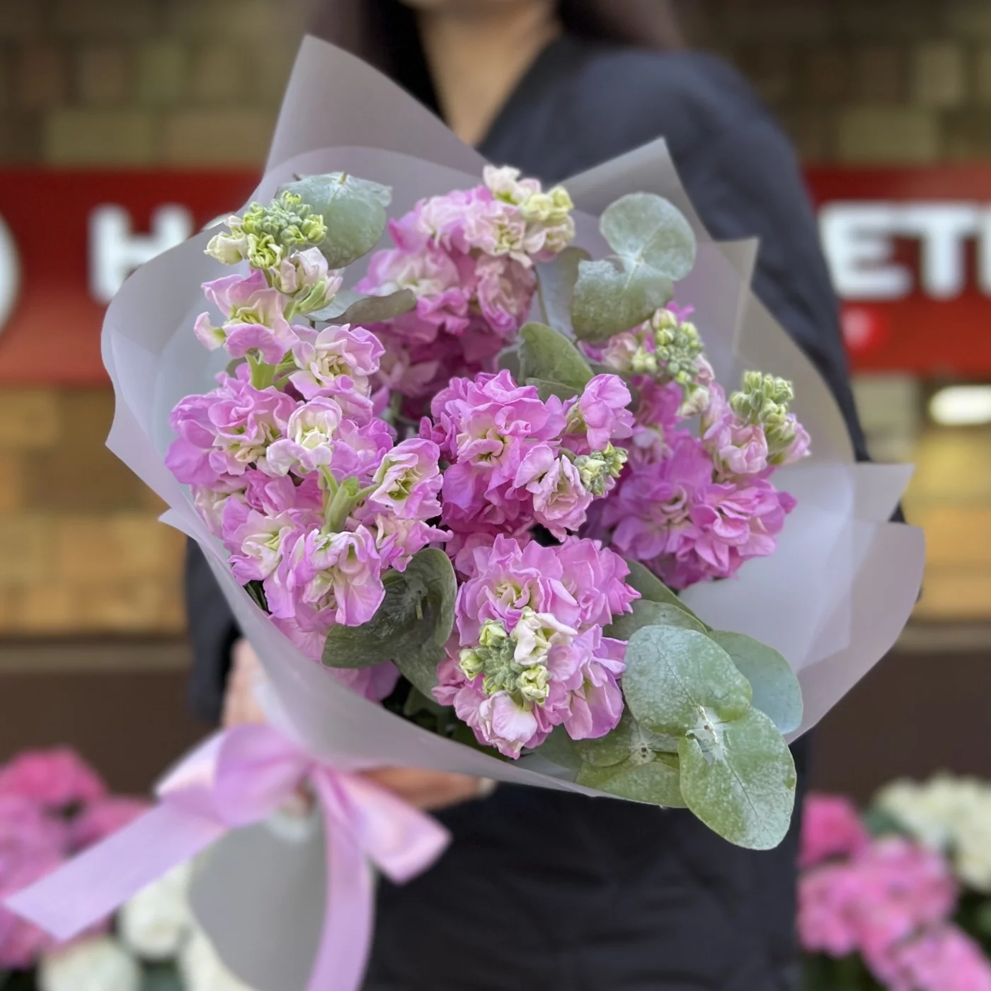 Этот изысканный букет состоит из 7 ароматных розовых маттиол, дополненных нежными веточками эвкалипта. Розовый цвет символизирует нежность, любовь и романтику, а насыщенный аромат маттиол наполняет пространство свежестью и легкостью. Веточки эвкалипта придают композиции природную элегантность, освежающий аромат и завершенность. Такой букет идеально подойдет для подарка, украшения интерьера или создания уютной, бодрящей атмосферы в доме. Его утонченность и аромат обязательно порадуют вас и ваших близких.