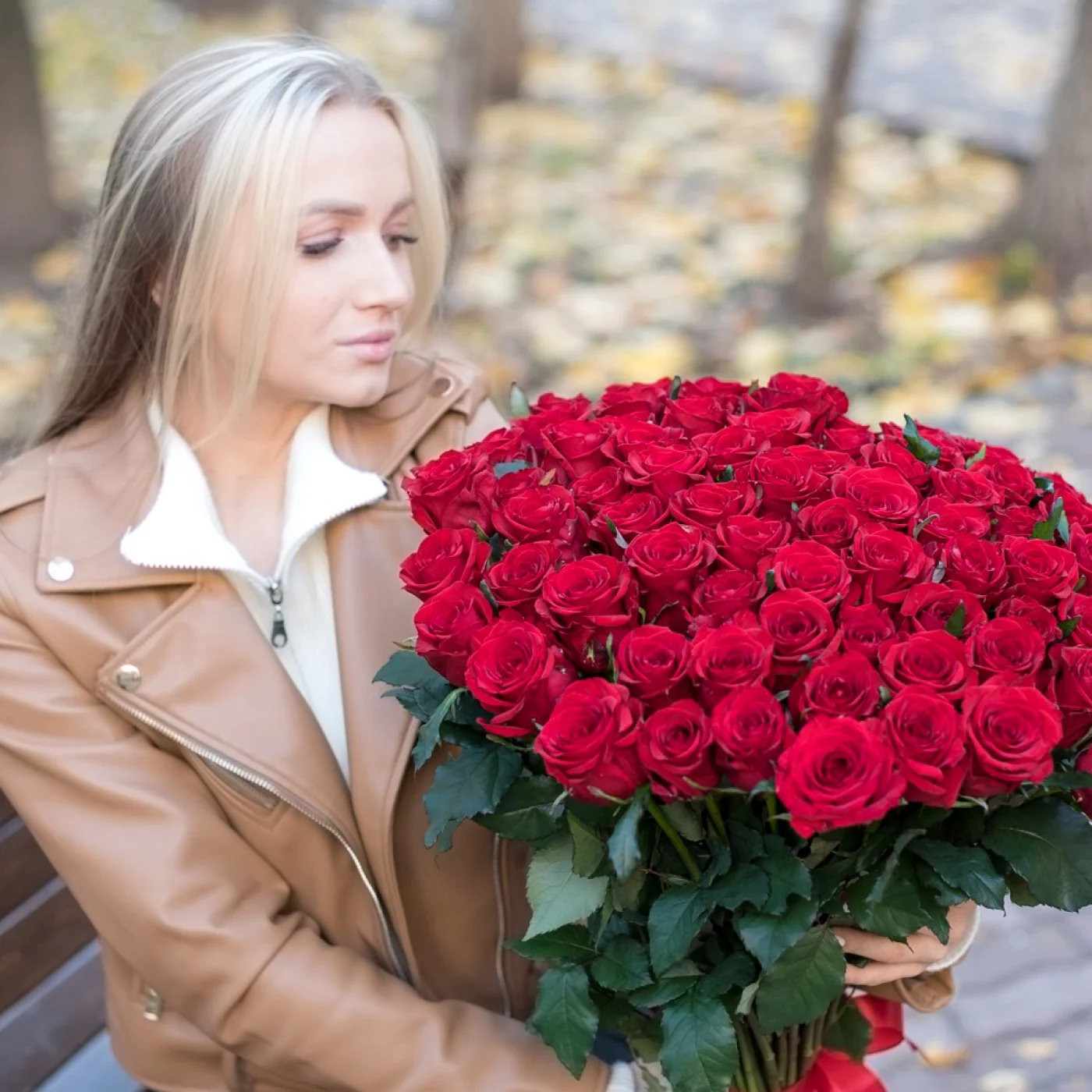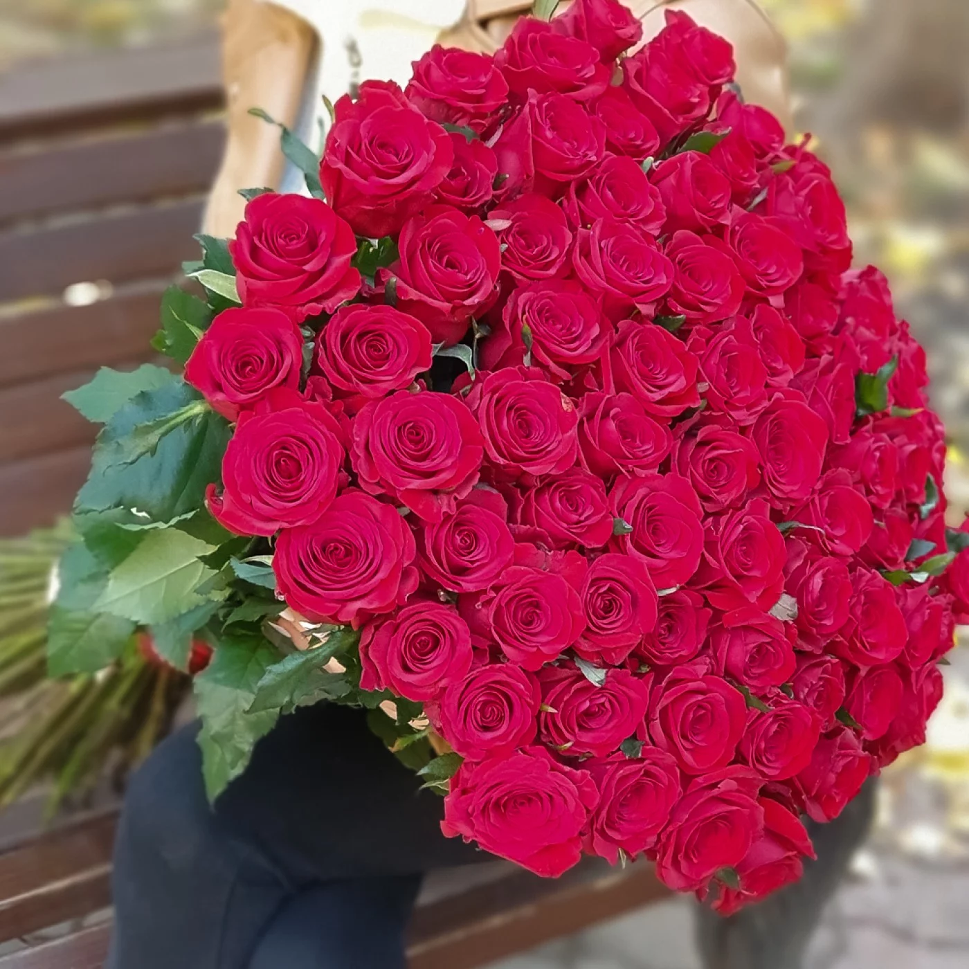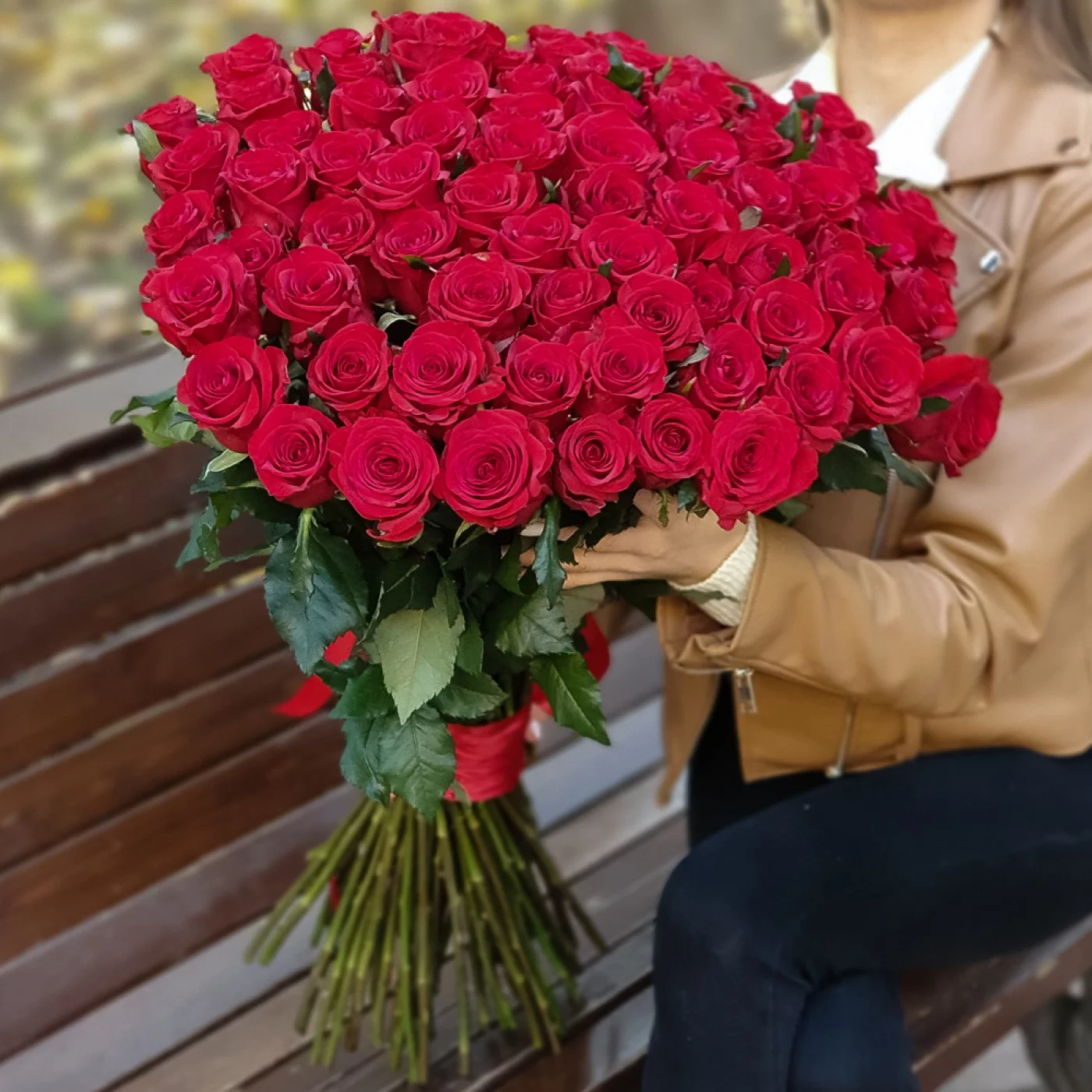Для самых красивых, любимых, дорогих и неповторимых создан этот букет! Когда невозможно выразить всю любовь и восхищение словами, когда переполняют эмоции – дарите цветы. Модные красные розы уже покорили немало сердец. Большой букет роз – это идеальный способ порадовать свою вторую половинку. Мы можем выполнить для Вас букет из любого количества цветов.
