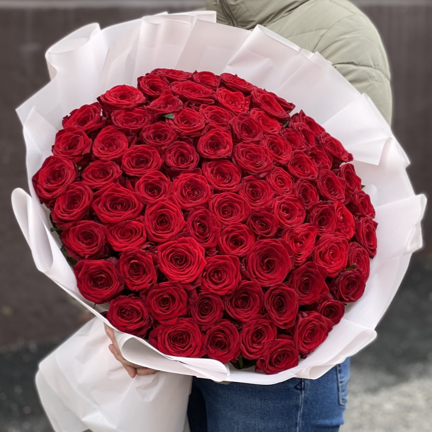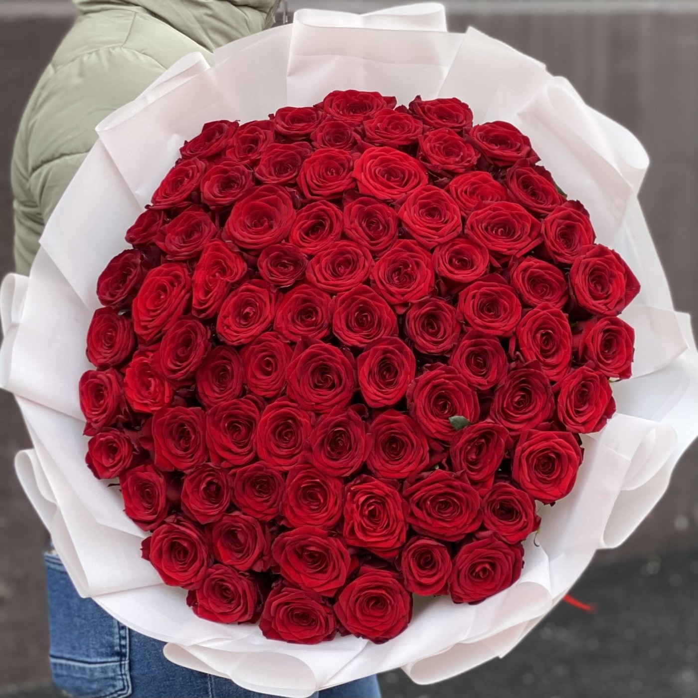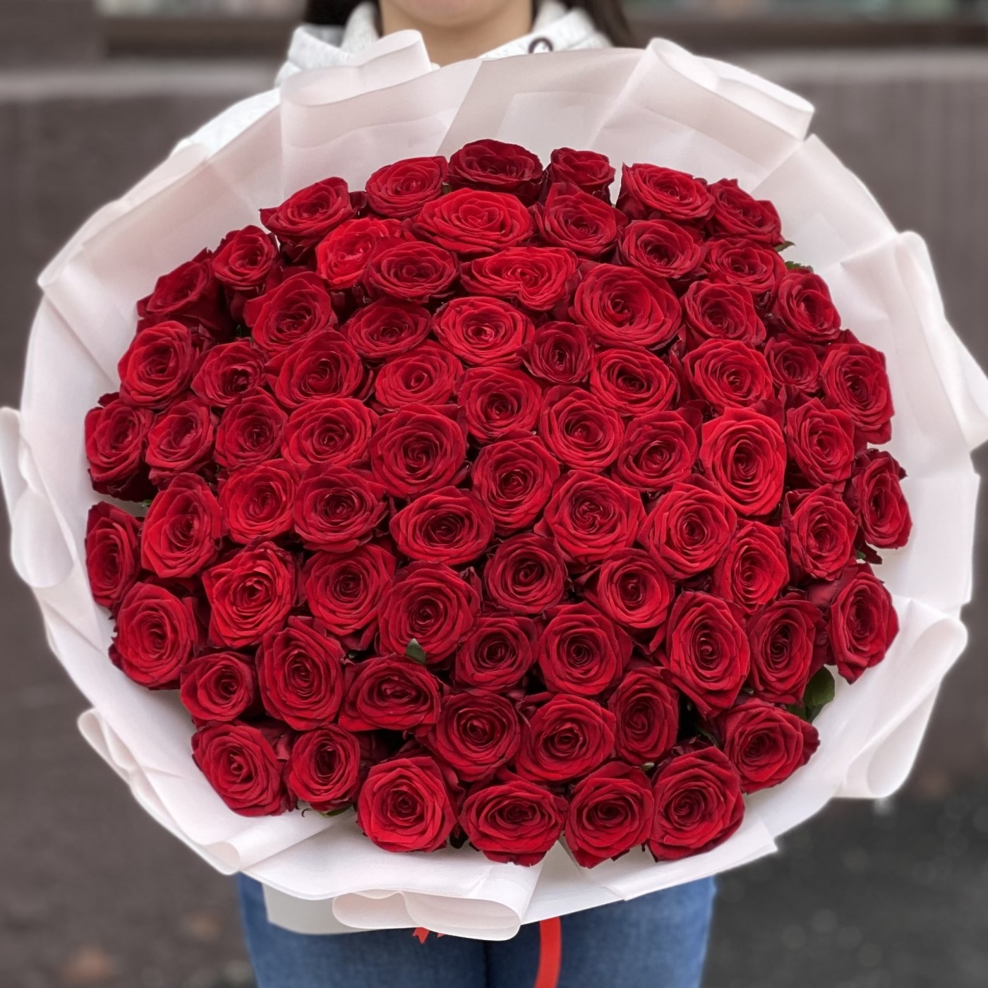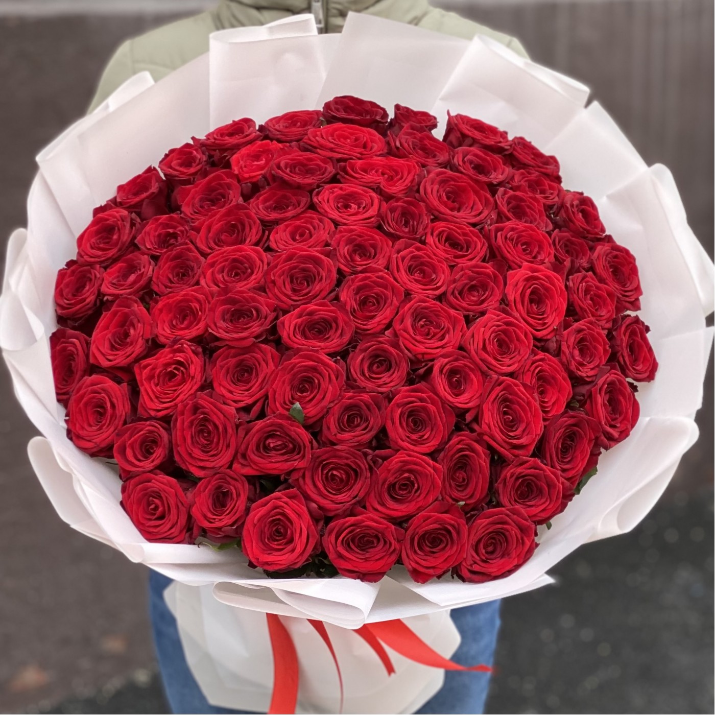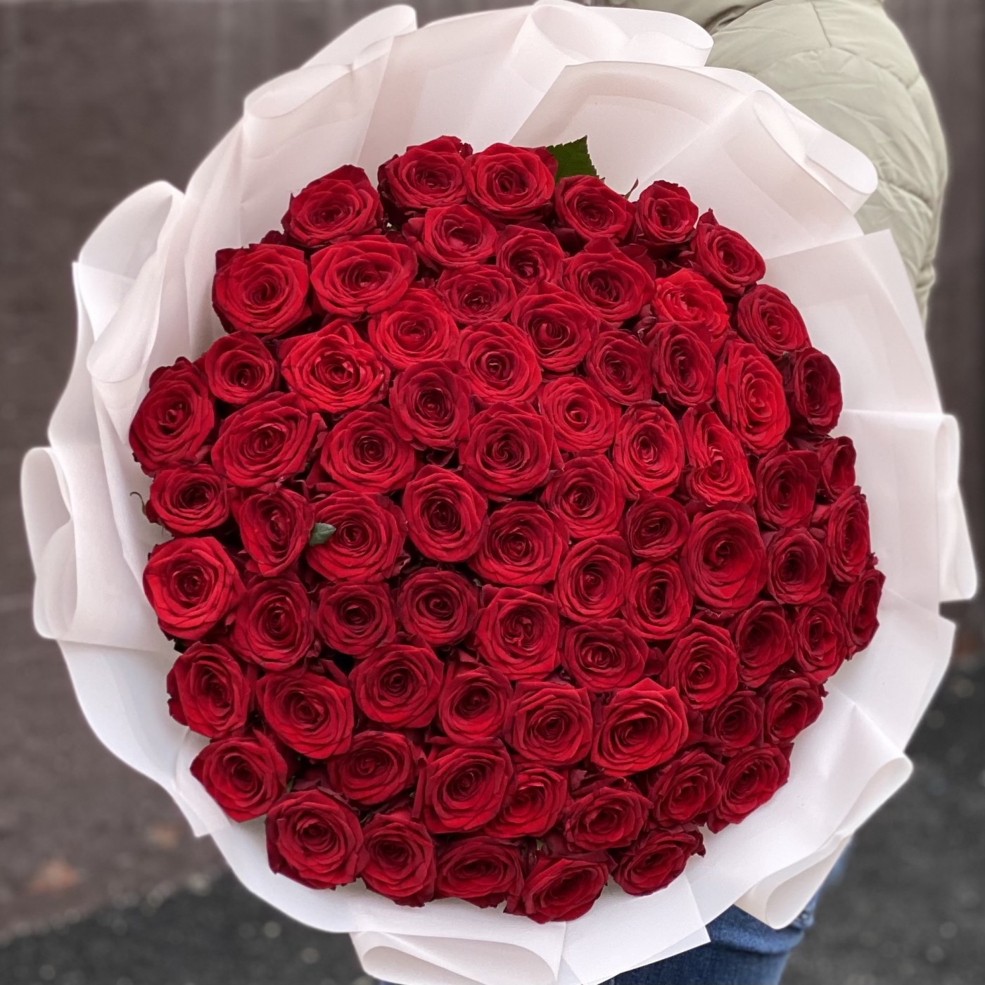 Роскошные красные розы - это классика на все времена, символ глубоких чувств и серьезных намерений. Букет из красных роз выбирают в подарок любимым и дорогим сердцу женщинам. Хотите сказать своей избраннице о ее неповторимой красоте, исключительности и огромной значимости в Вашей жизни? Преподнесите ей букет из красных роз, который подарит массу эмоций и надолго останется в памяти. Роскошная композиция из 75 красных роз станет отличным подарком в торжественный день для Ваших близких, а также идеально подойдет в качестве подарка "без повода". Уместно так же преподнести букет красных роз мужчине, руководителю или бизнес-партнеру.