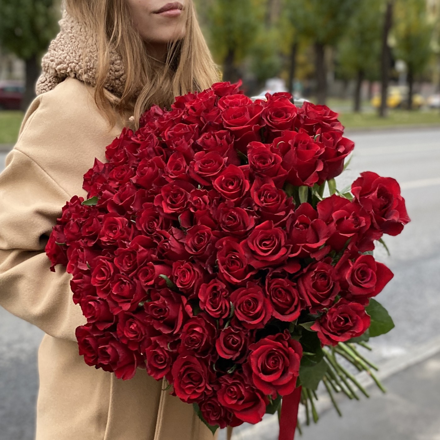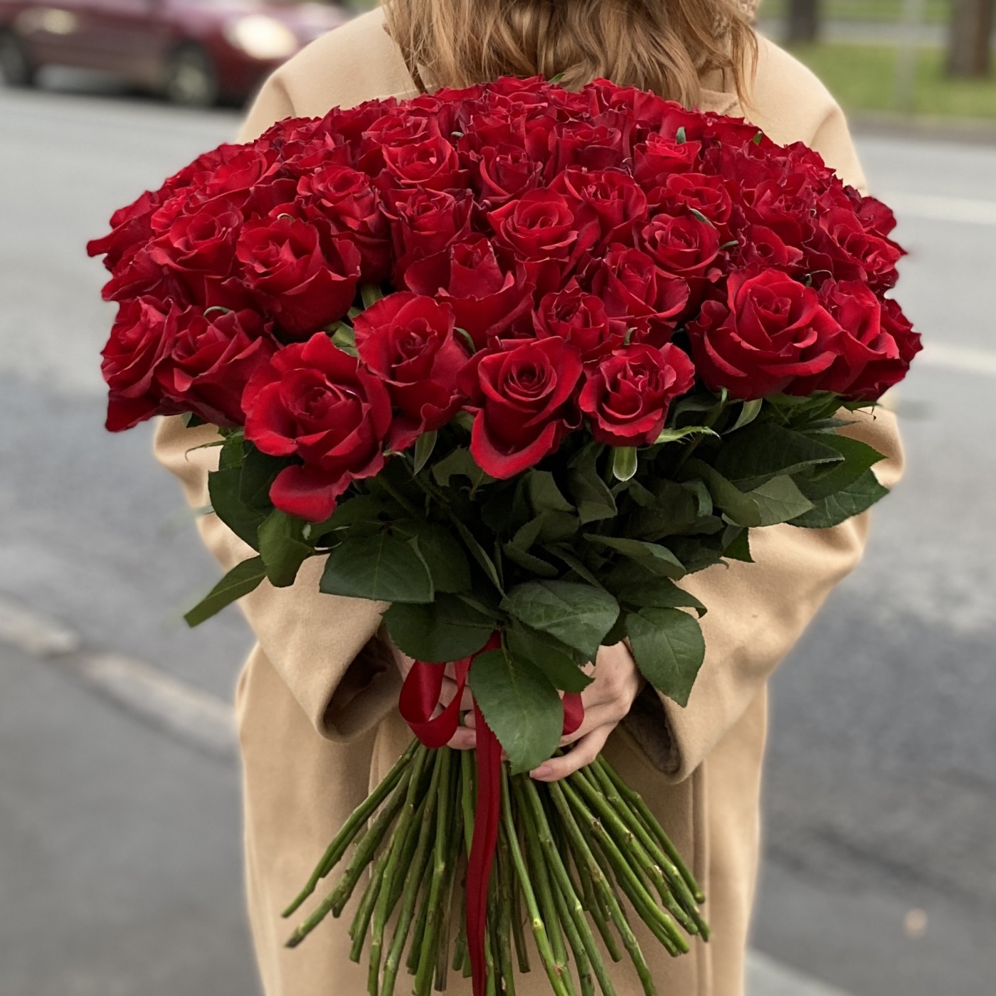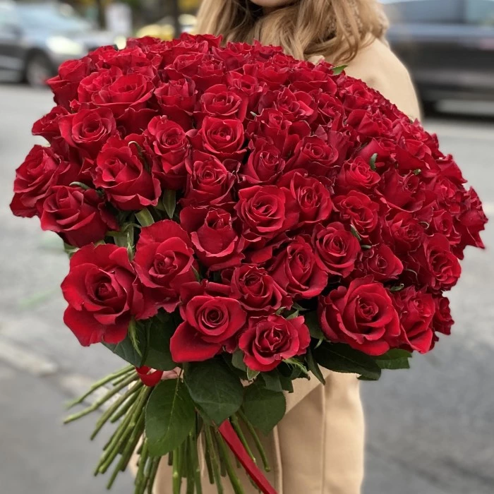 Букет состоит из 75 красных роз Эвер Ред — символа любви и страсти.