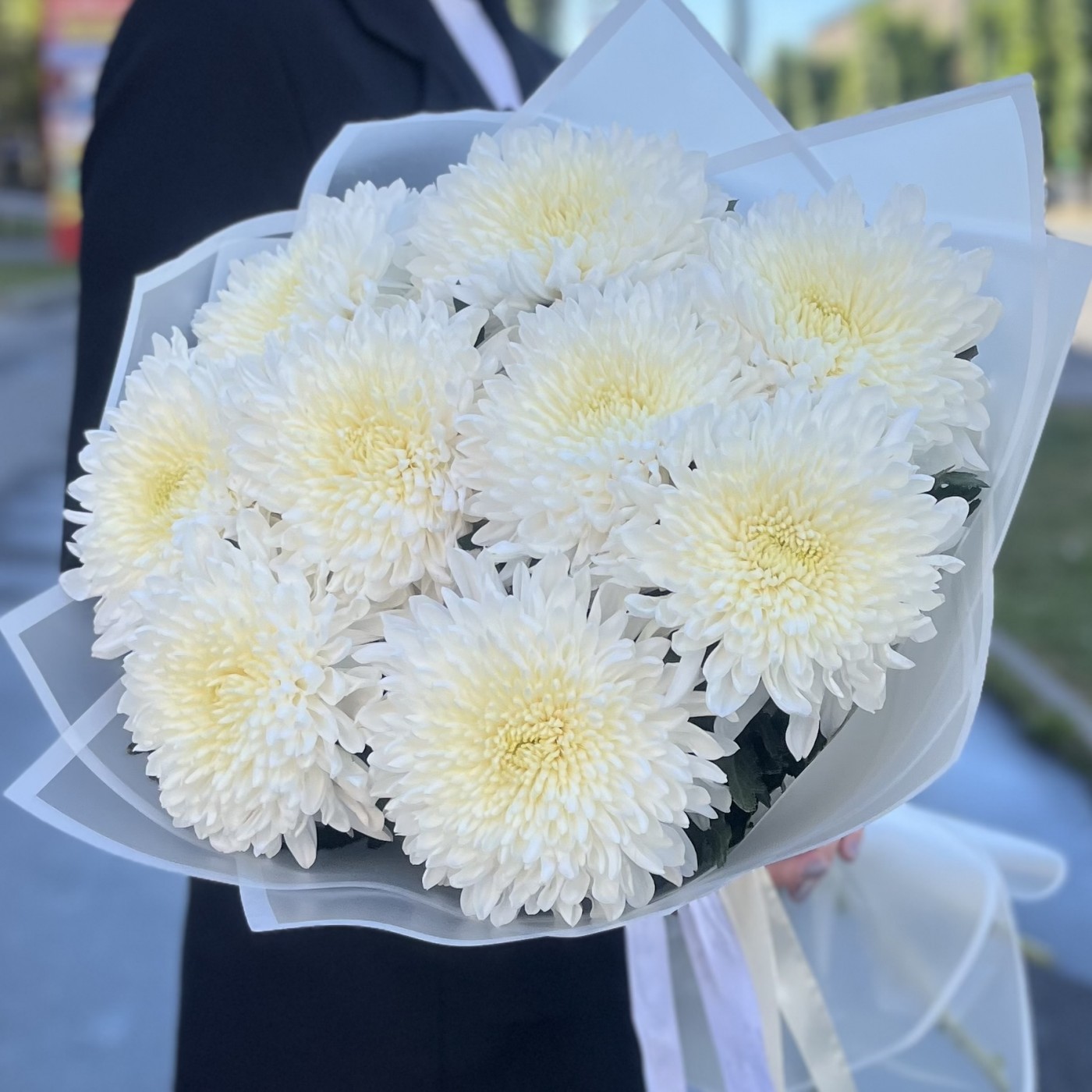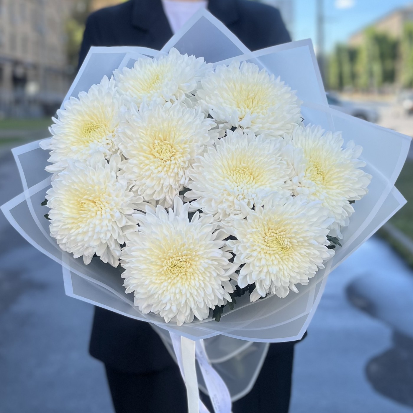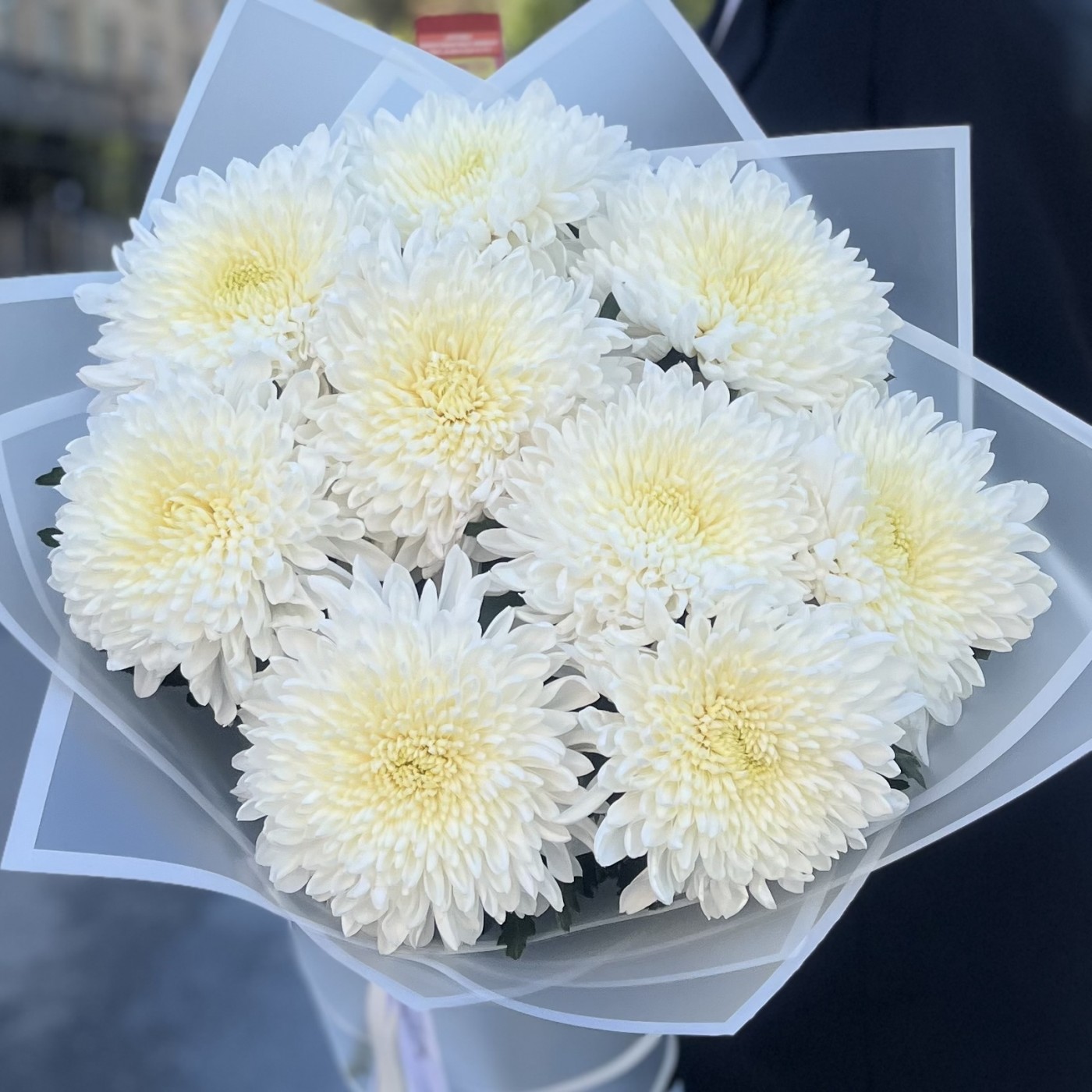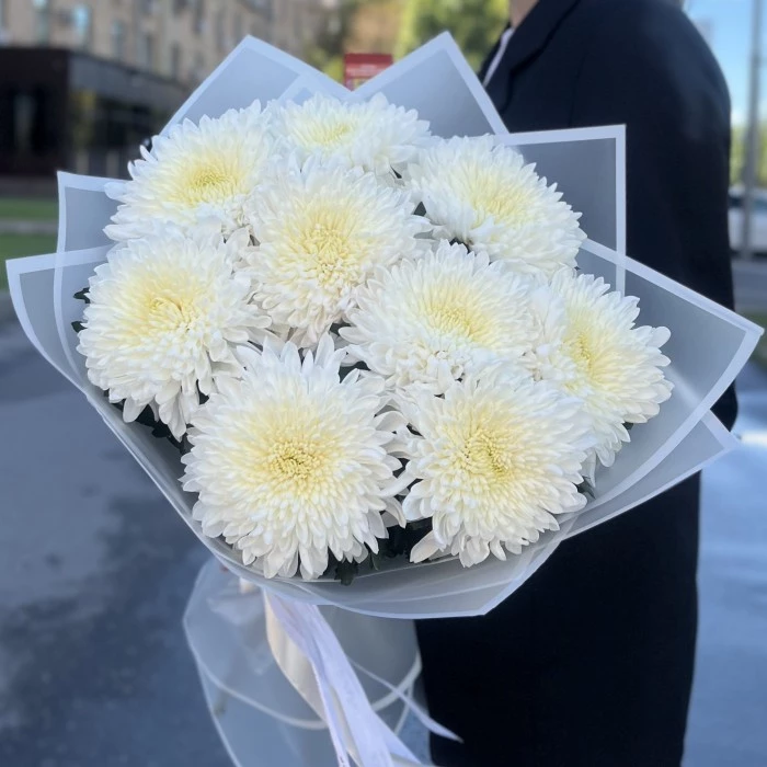 Это элегантный и воздушный, романтичный и воодушевляющий букет из белых хризантем сорта Магнум. Это идеальный подарок для каждой женщины, которая ценит необъятную красоту и гармонию природы. Такой букет непременно будет замечен на любом празднике, подчеркнёт важность и уникальность момента, принесёт с собой нежность и оставит трогательные воспоминания.