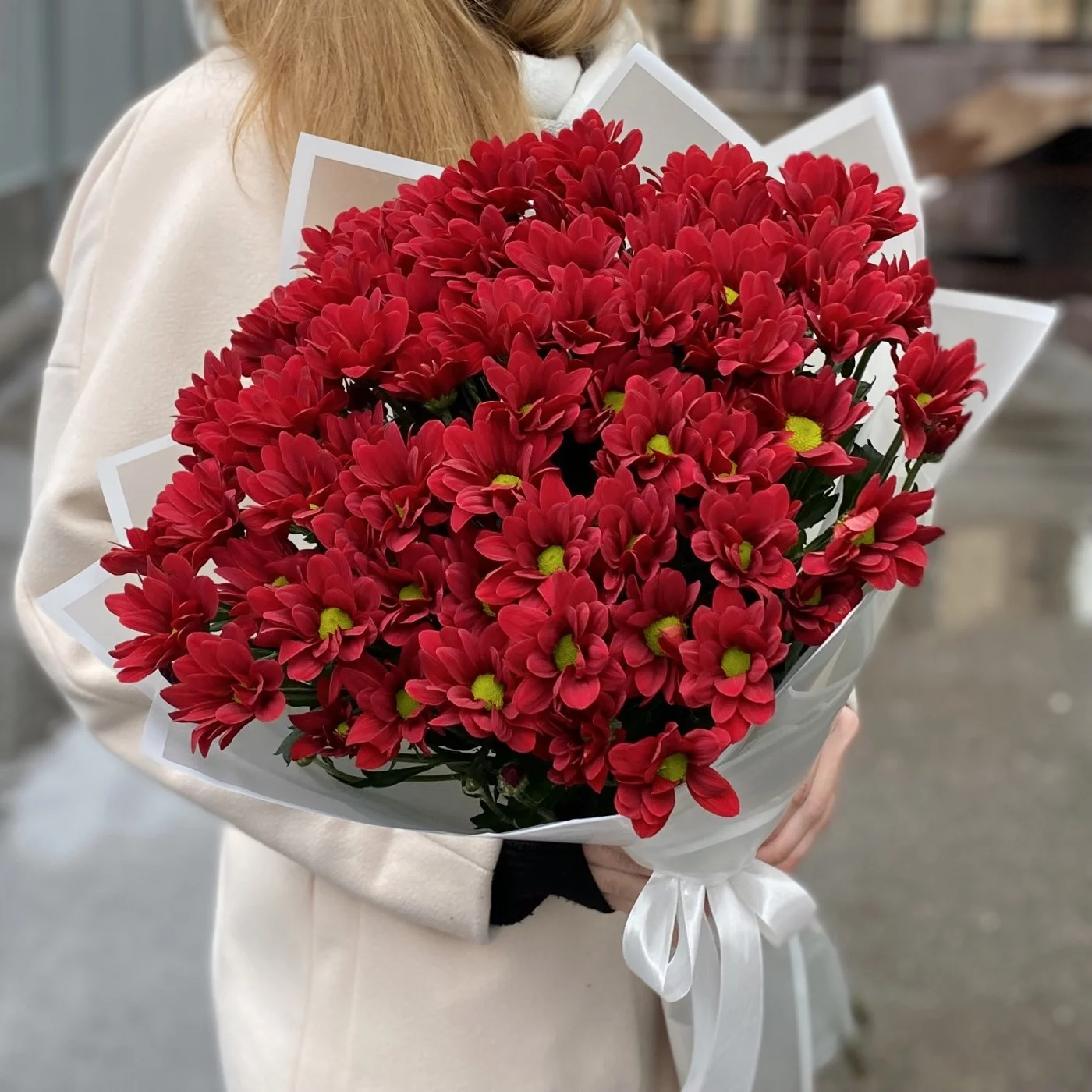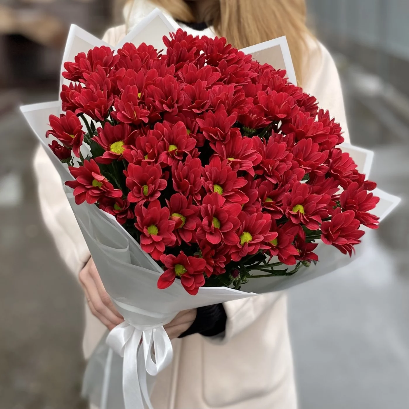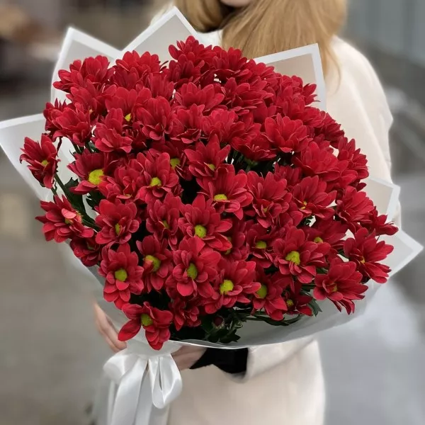 Букет из 9 бордовых кустовых хризантем сорта Бакарди — это яркая и жизнеутверждающая композиция, которая будет привлекать внимание своей красотой и насыщенным цветом.