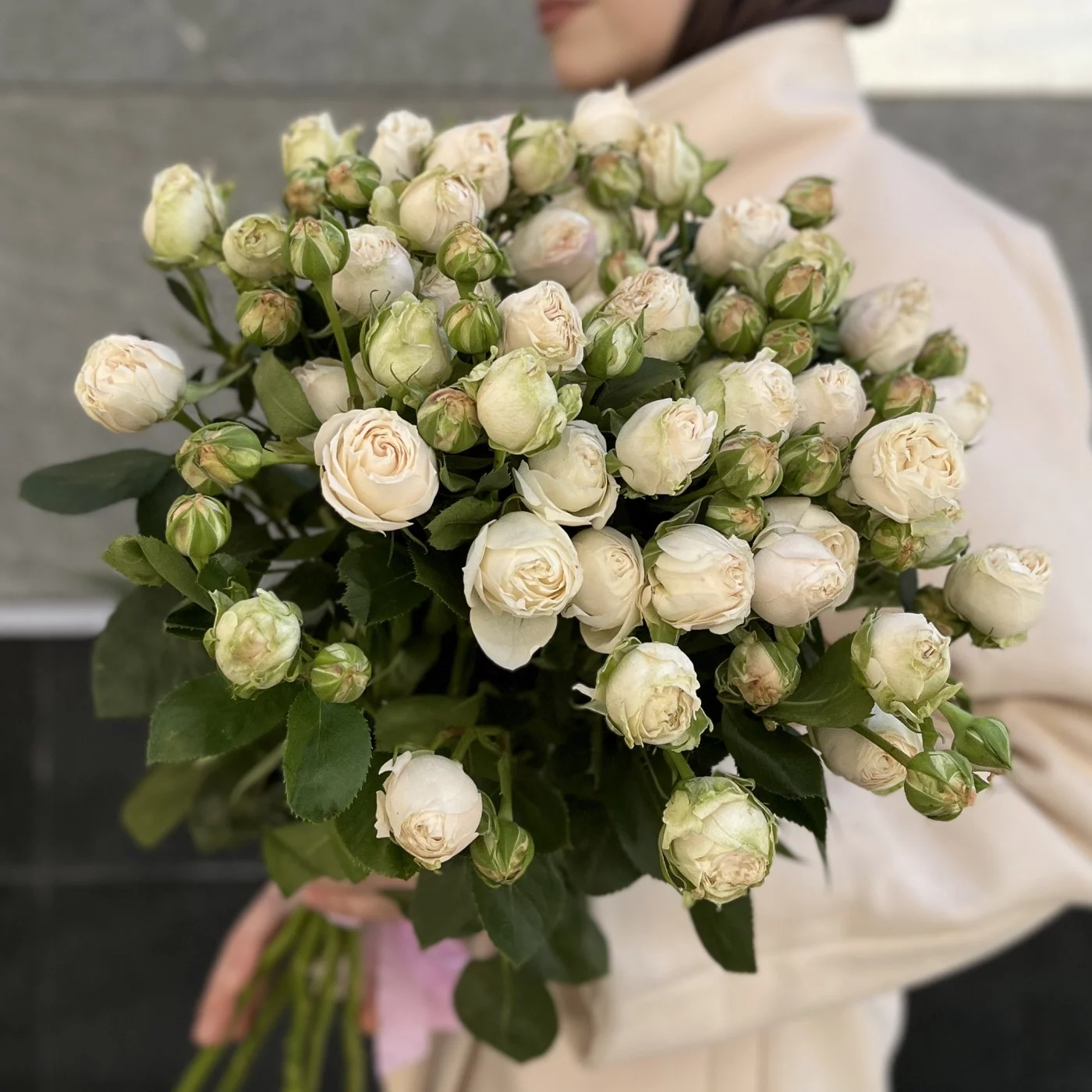 9 кустовых белых роз Принцесс Бомбастик 60 см