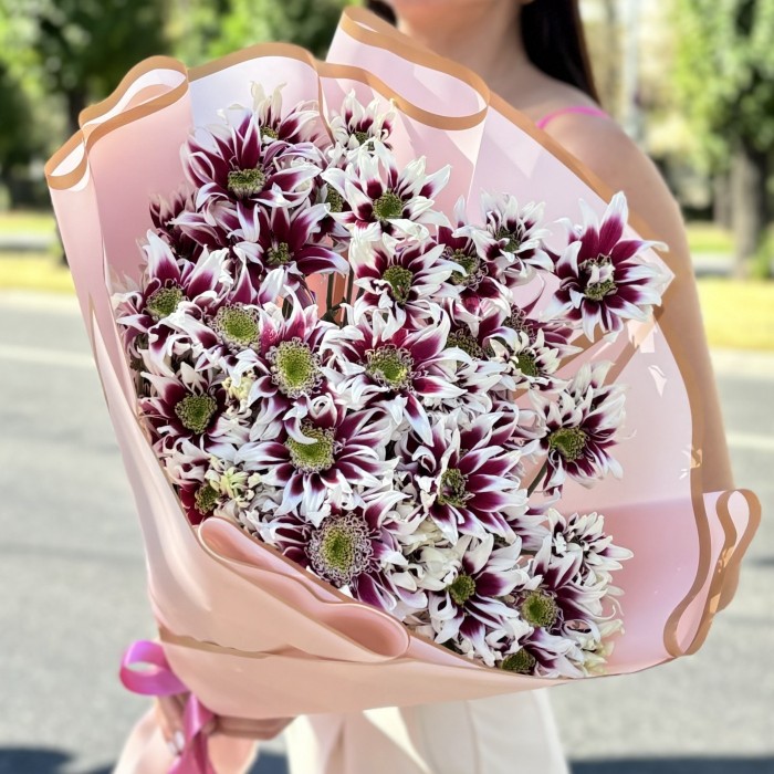 Букет из 9 хризантем будет выглядеть компактно, но очень эффектно. Он отлично подойдет для украшения стола или как подарок на день рождения, юбилей или другой праздник.