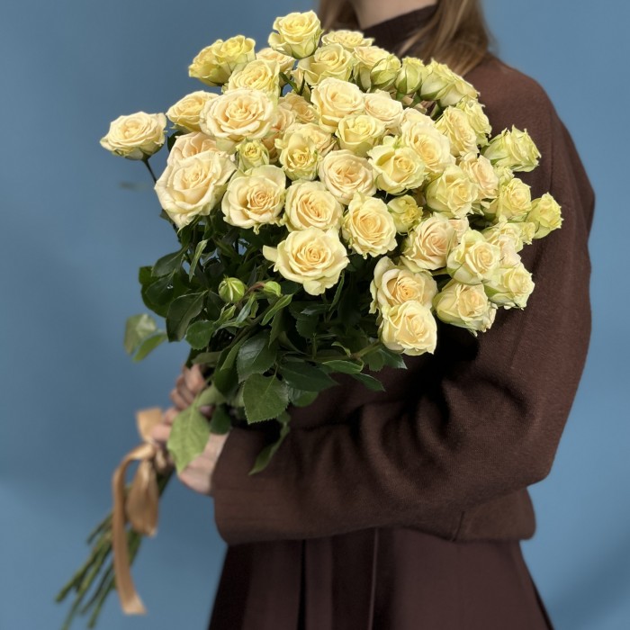 Стильный букет из 9 кустовых роз Тринити. Символ нежности и гармонии, который порадует близкого человека. Подходит для поздравлений, романтических событий или как знак внимания.