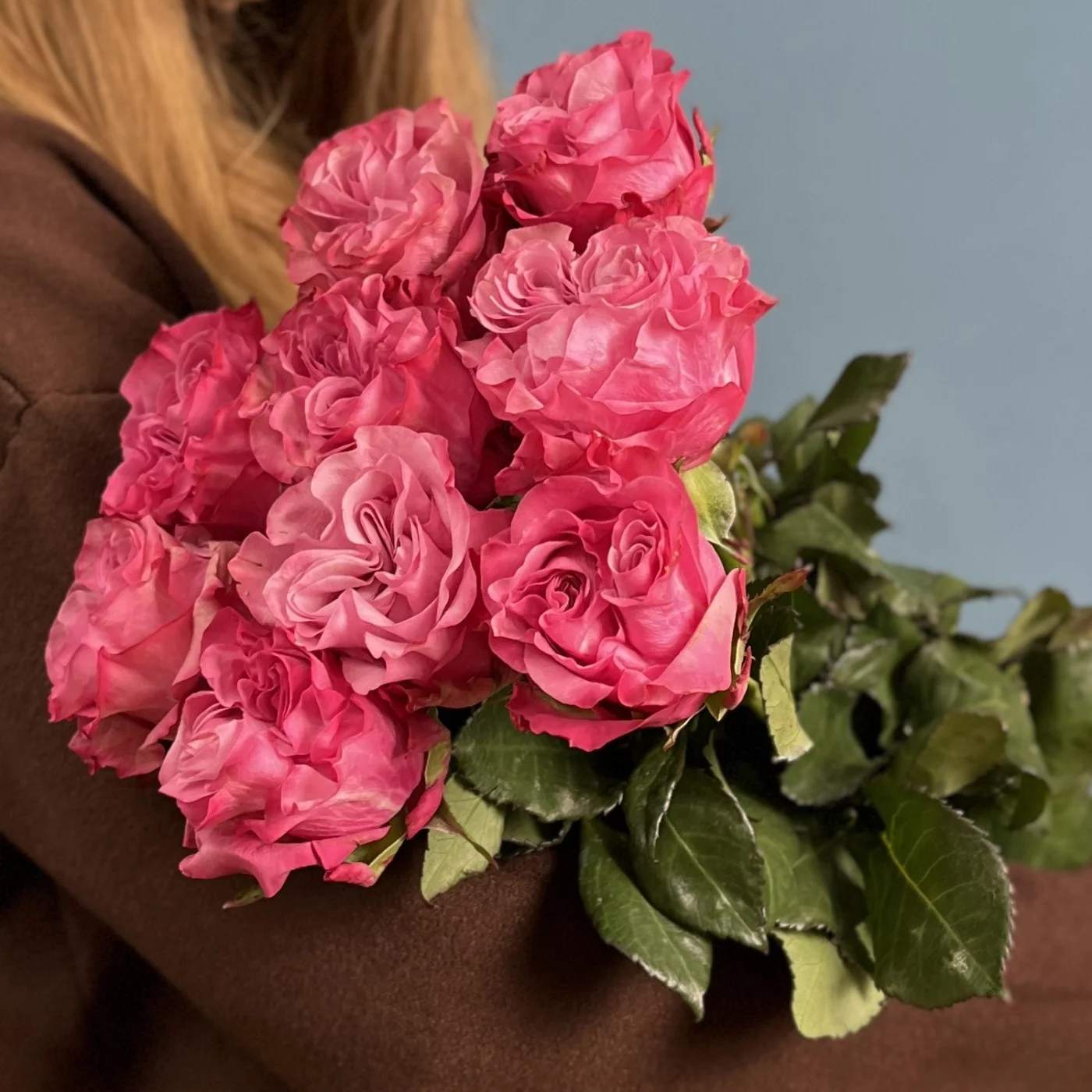 9 пионовидных роз Кантри блюз 60 см