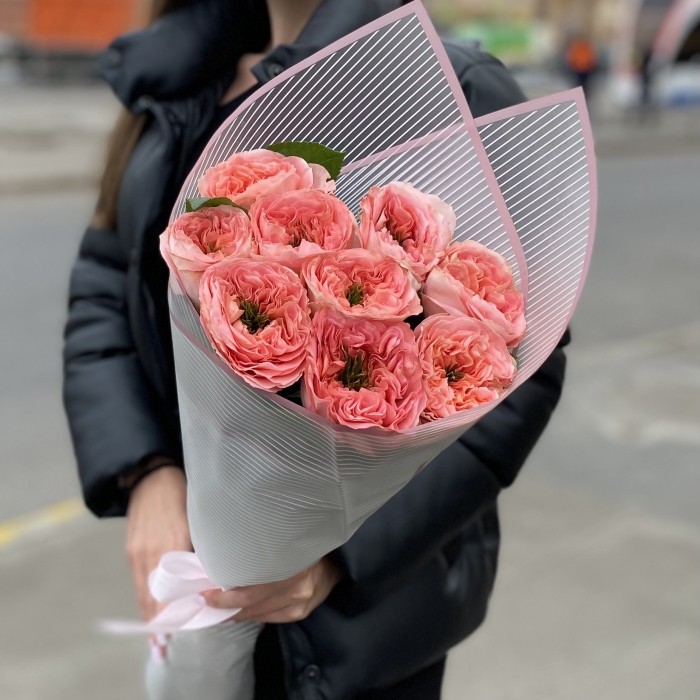 9 пионовидных роз Мандарин экспрешен (Mandarin X-pression)