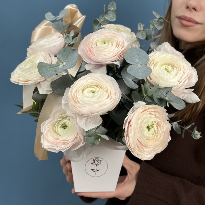 Композиция из 9 пышных ранункулюсов Ханой в квадратной коробке — это произведение искусства, способное передать ваши чувства и создать настроение праздника! Такой подарок обязательно вызовет радость и восхищение у тех, кто его получит.
