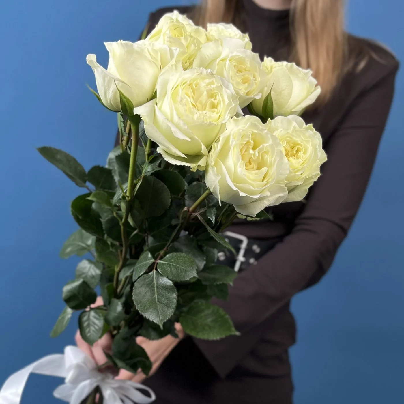 Букет из 9 роз Майра Вайт – это изысканный подарок, который скажет больше тысячи слов. Каждая роза в этом букете – это произведение искусства природы, излучающее спокойствие и элегантность.